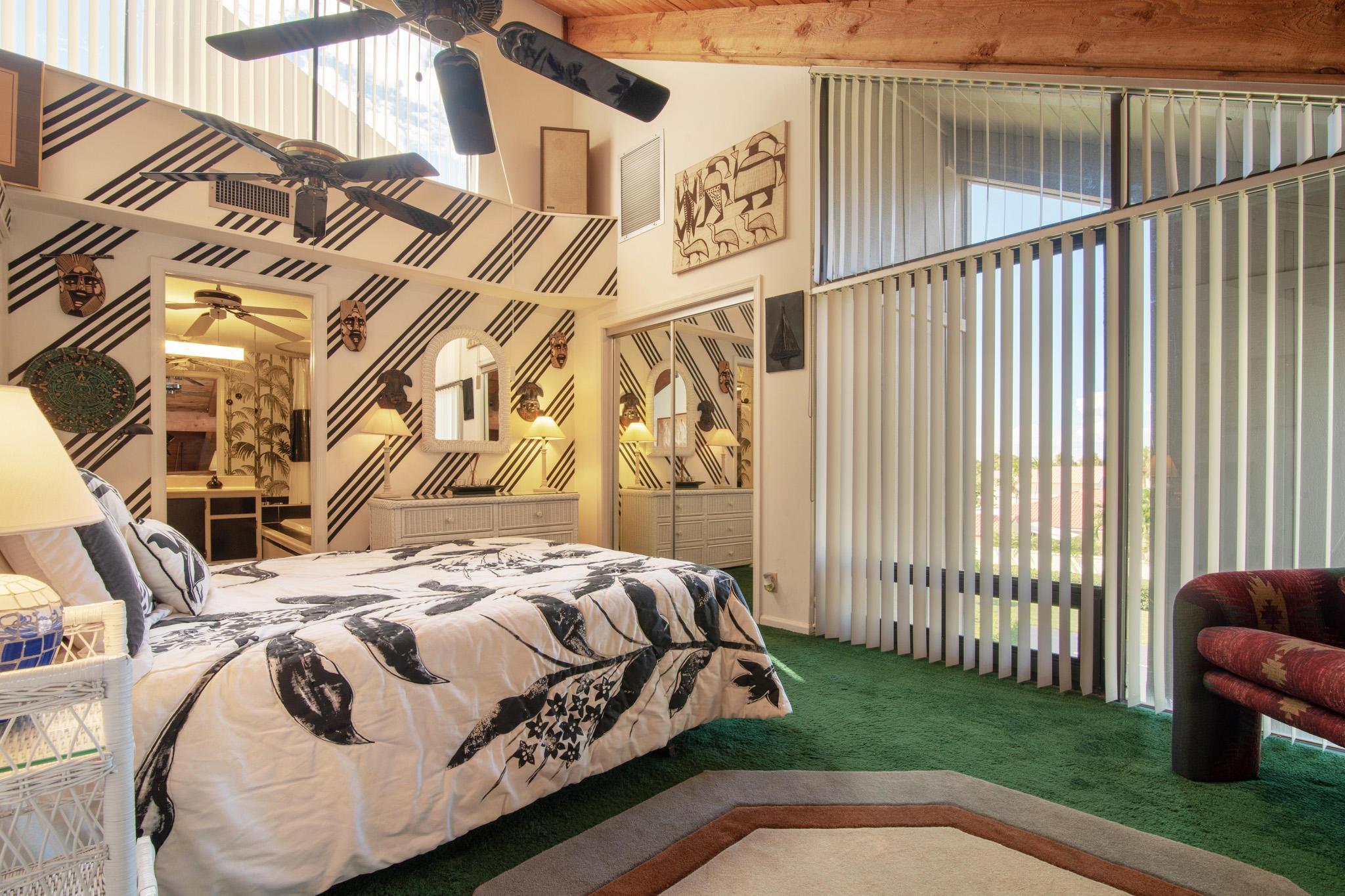 One of a kind ''tropical retreat''. This enchanting and serene villa is a must see! The master bedroom is the loft area with many closets and a private bath. The guest room area is located on the main living floor and has been tastefully designed as a private alcove area or additional sitting area and combined with a mini-office. The multi-level living provides for a second story balcony and also a tranquil Zen garden patio on the first level. It is a short walk to the beach and close to shopping and dining. This one is rented until Spring 2026.