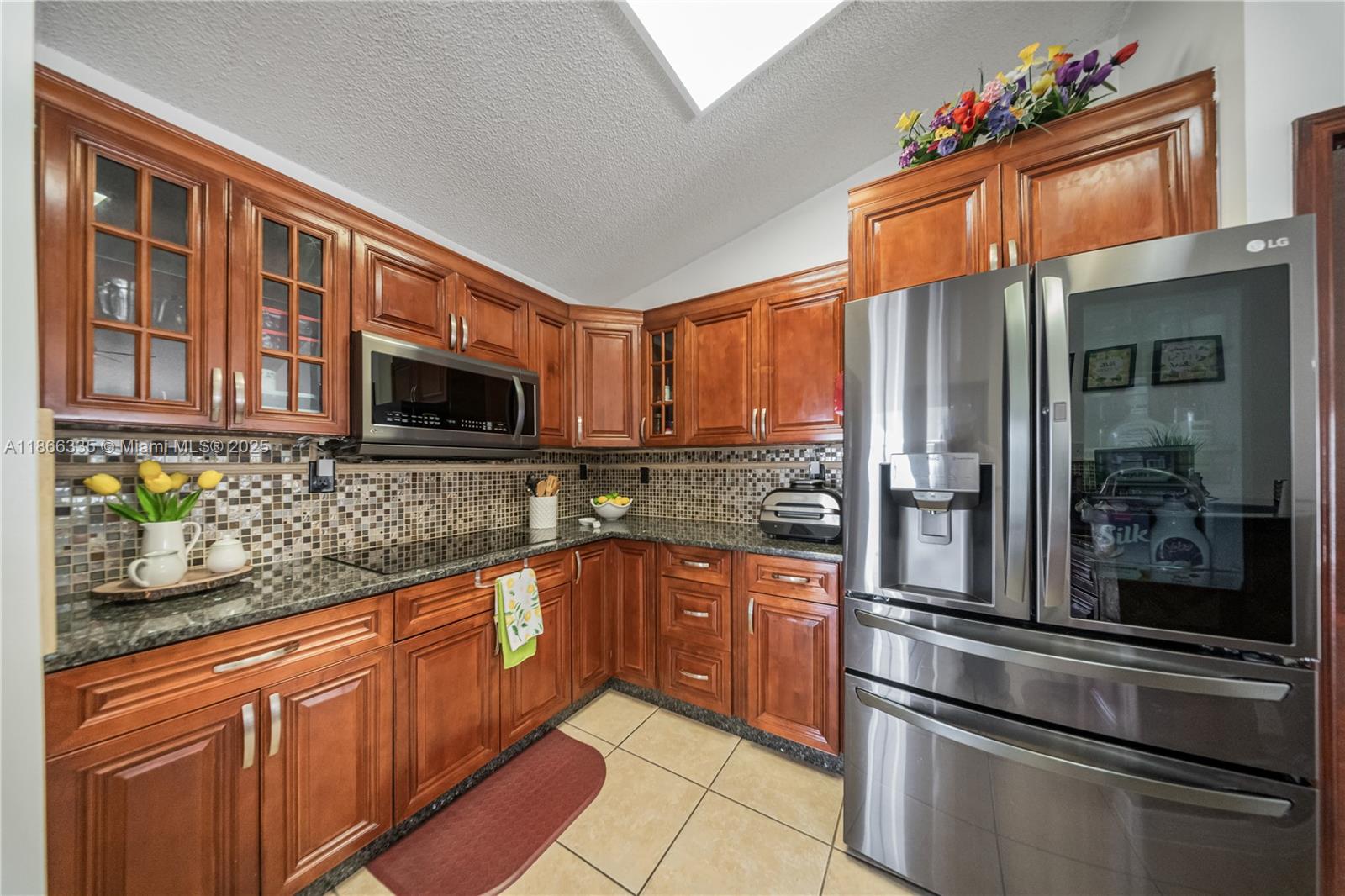 Beautifully maintained single-family home in Miami featuring 4 bedrooms and 2 bathrooms. Open layout with vaulted ceilings, spacious living and dining areas, and a remodeled kitchen with granite counters, wood cabinets, and stainless-steel appliances. Primary suite includes walk-in closet and updated bath. Fully tiled patio with covered outdoor kitchen, perfect for entertaining, plus gated side yard with room for small boat or trailer. Ample storage, indoor laundry, and move-in ready condition. Conveniently located near top schools, shopping, dining, and major highways. A perfect blend of comfort and functionality—ready for its next owner!