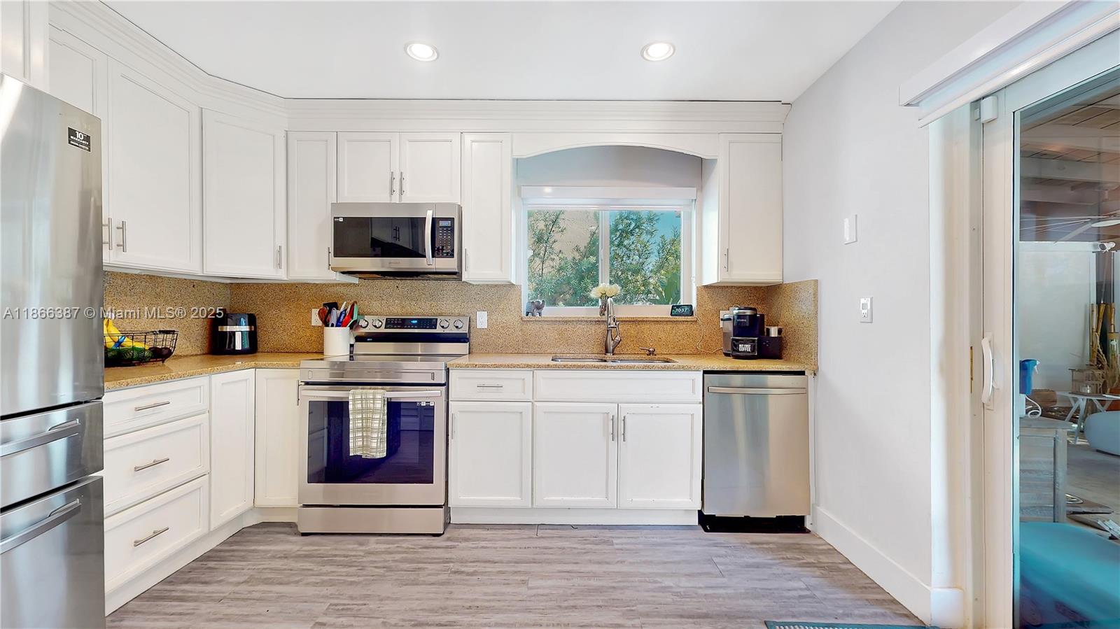 Welcome to this beautifully updated home in Country Walk, perfectly situated directly across from a park for easy access to green space & recreation. The property boasts a full concrete driveway, providing ample parking and durability, and is situated in a non-flood zone, so flood insurance is not required. Inside, you'll find new, modern Luxury Vinyl Plank flooring throughout, along with the peace of mind that comes with impact windows and updated blinds. The home features a new tankless water heater, a new electrical panel, new plumbing & a roof that is just one year old. The bathrooms were tastefully renovated two years ago, & a sparkling pool was installed in 2022, along with a pool pump. Enjoy clubhouse, pool, tennis/basketball courts, playground, & walking path around beautiful lake.