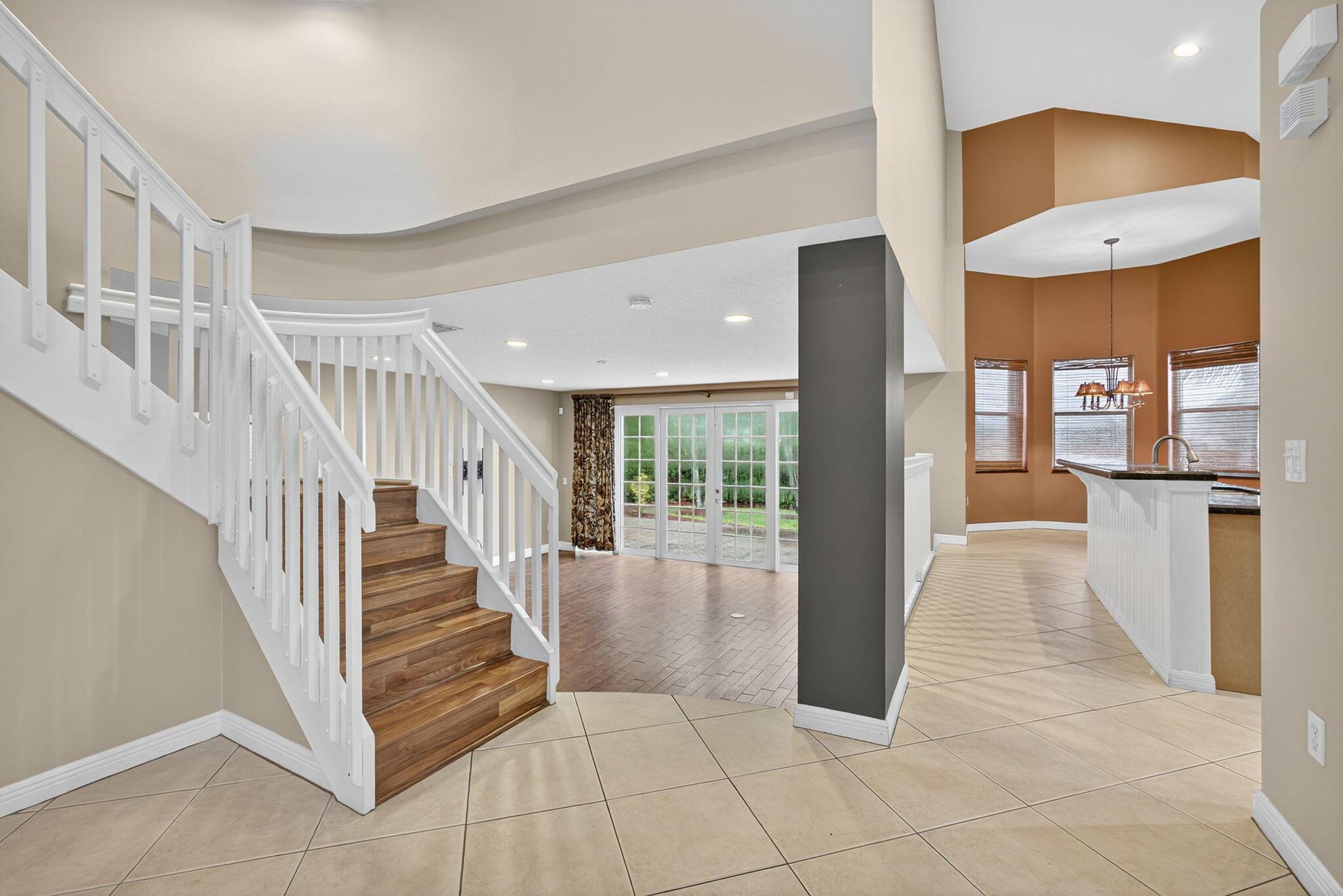 Welcome home to the highly sought-after Olympia subdivision of Easton. This spacious and beautifully maintained 4 bedroom, 3 bathroom Cambria model offers the perfect blend of comfort, style, and convenience. Nestled on a quiet corner of Easton surrounded by green space, this home features an open-concept layout with abundant natural light and high ceilings. The primary suite offers a large bonus area with a spa-like ensuite bath and generous walk-in closet. Step outside to a beautifully landscaped yard with a spacious patio perfect for relaxing or outdoor dining. Impact windows and upper accordion shutters make storm prep easy. Located in an A-rated school district close to shopping, dining and convenient access to major highways.