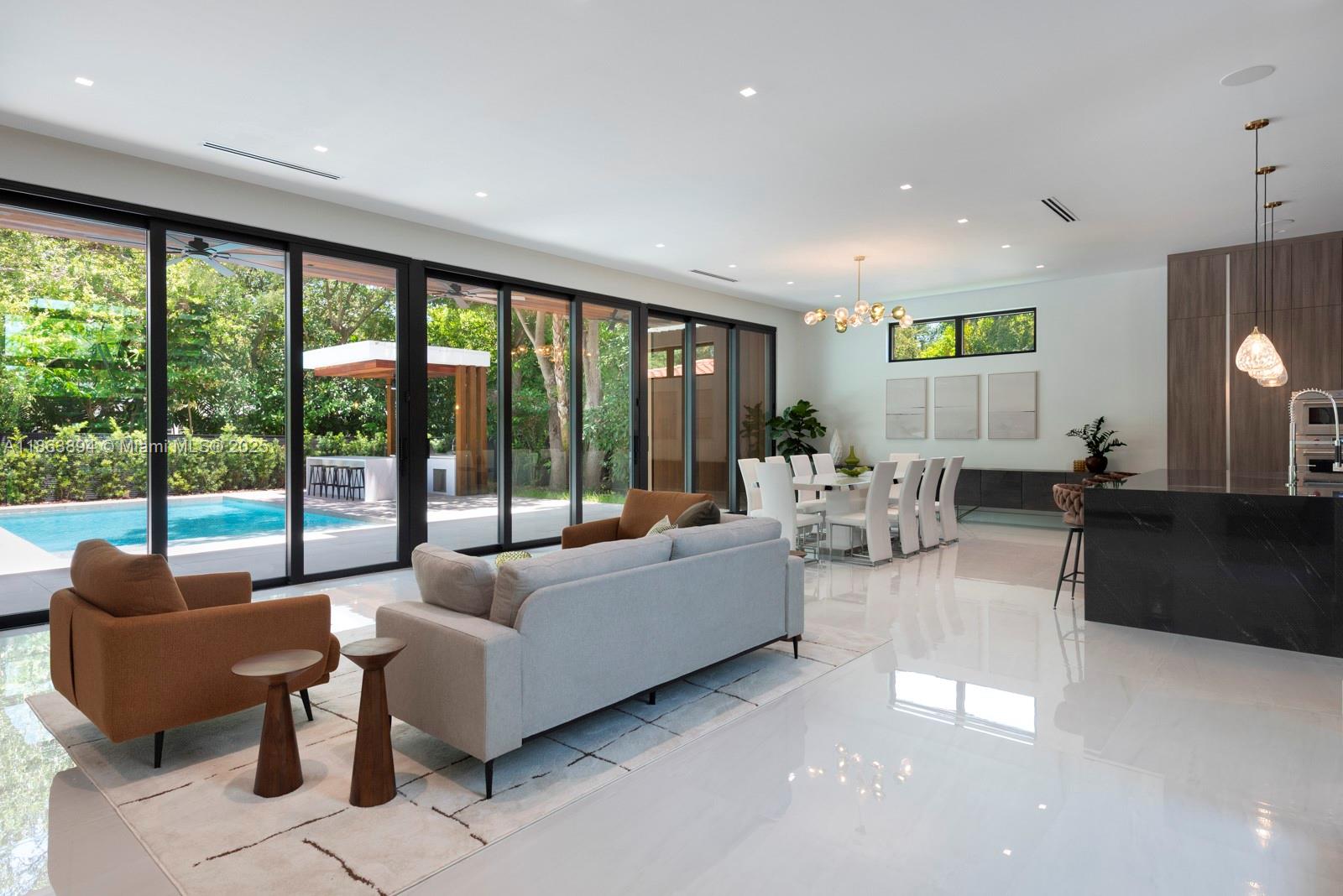 Brand New impeccably designed 5/5.5 home w/ grand indoor-outdoor living. Step through the front door to find yourself in your own private retreat nestled in deep green foliage. Every room is its own suite w/ spa like bathrooms, walk-in closets & bright open design. Enjoy flawless attention to detail w/ top of the line designer finishes incl a gourmet Eat-In Kitchen made for entertaining, Wine Storage, giant walk-in Pantry, Media Room & Open Dining overlooking lushly landscaped outside entertainment area. Nothing beats the resort feel of this saltwater pool, summer kitchen & cabana bath, all secluded in your own private Tropical Oasis. Lutron, Sonos, Smart Blinds/Doors, Security, Air conditioned 2-car garage. All in desirable Miami Shores, near MiMO shops, restaurants, A+ schools, parks
