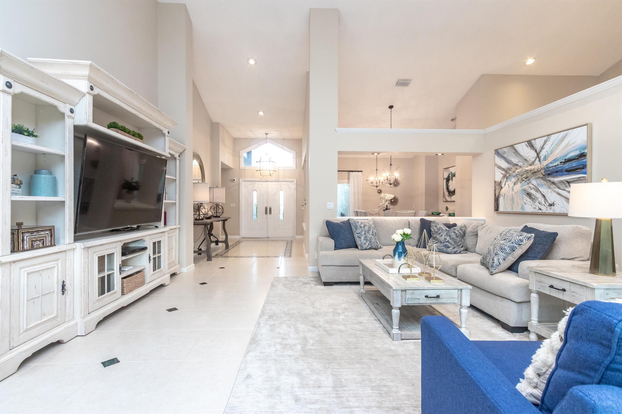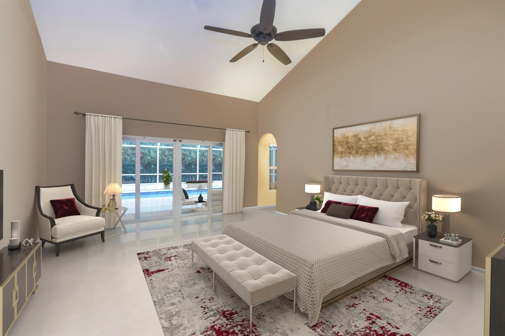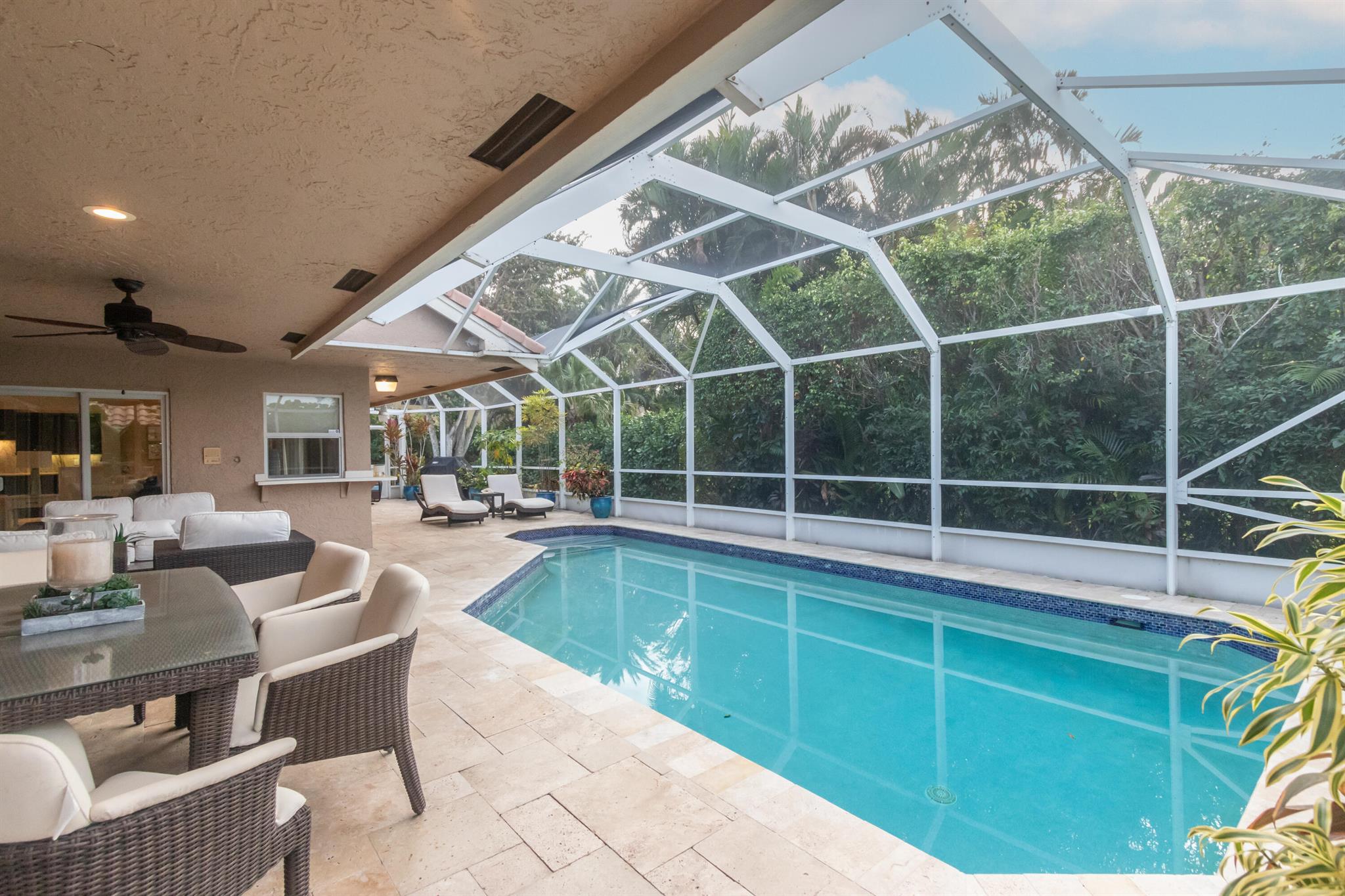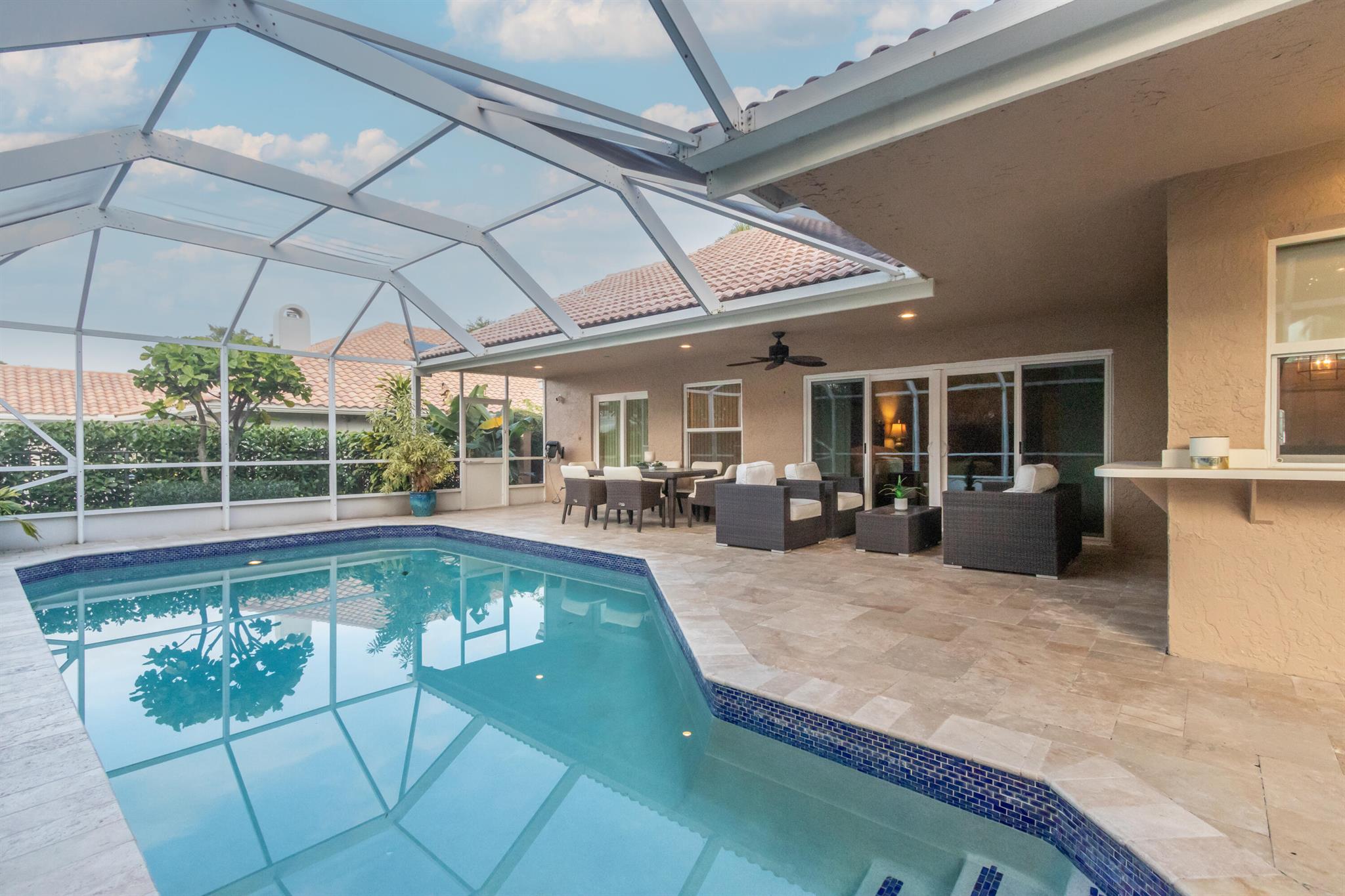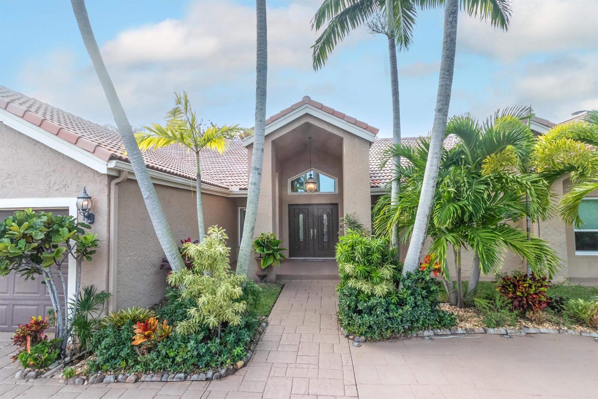 Stunning and serene single level pool home in the exclusive New Floresta in central Boca. This property offers great flexibility with 2973 sq. ft. and an open concept design. Situated on an interior oversized lot, the property affords privacy with lush tropical landscaping and has an extended circular drive. Perfect for entertaining this light & bright property boasts volume ceilings, a split bedroom floor plan, fireplace, wet bar, impact glass throughout, and two new A/C units. Large chef's kitchen has tons of storage and expansive counter space for serving and meal prep. The primary bedroom suite features sitting area, soaking tub, standalone shower, dual sink vanity & custom walk in closet. Relax and recharge by the resurfaced pool and spacious travertine patio. Bonus room. A must see!