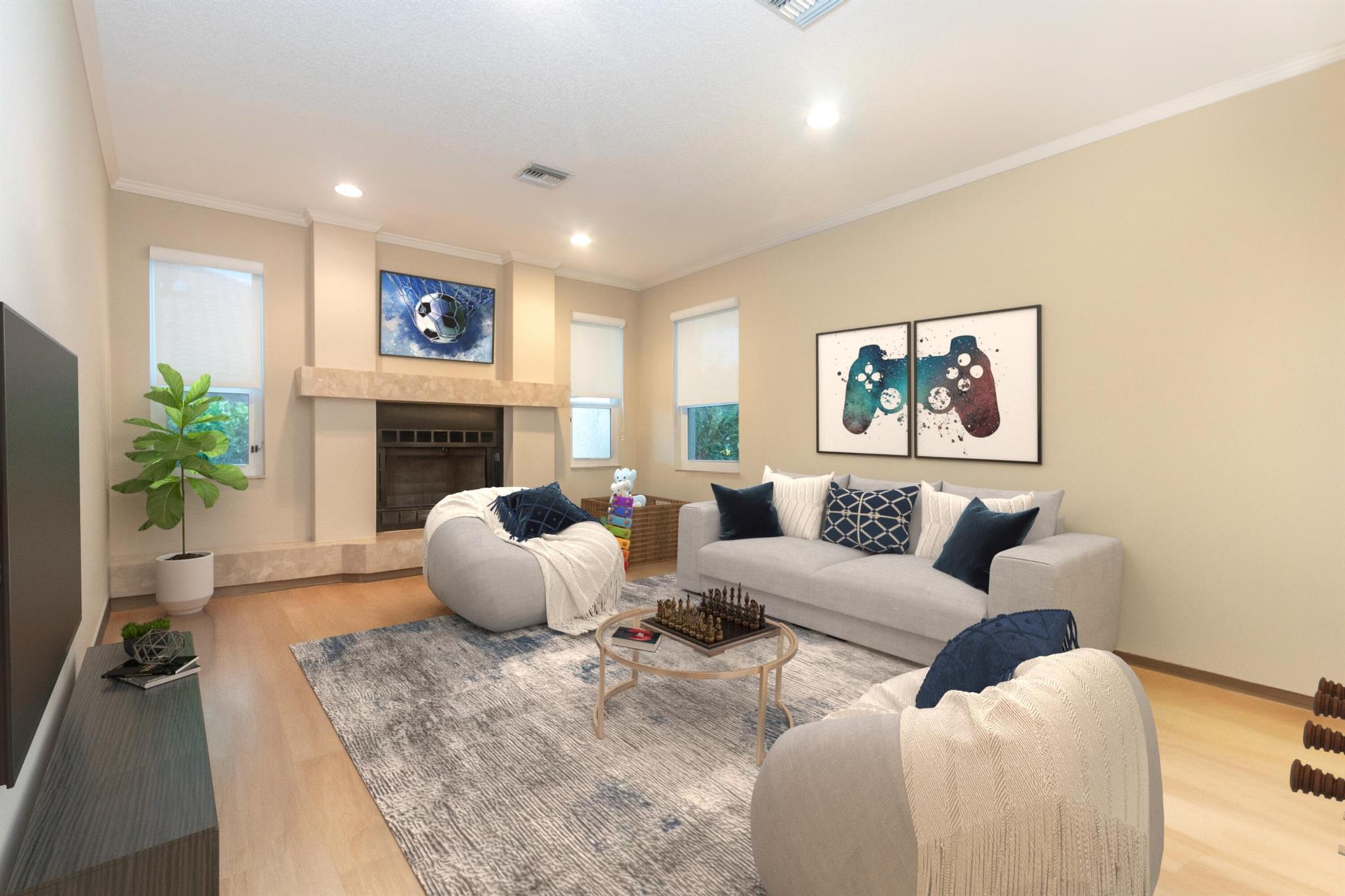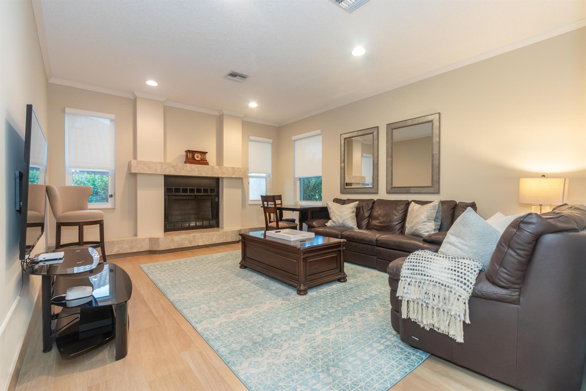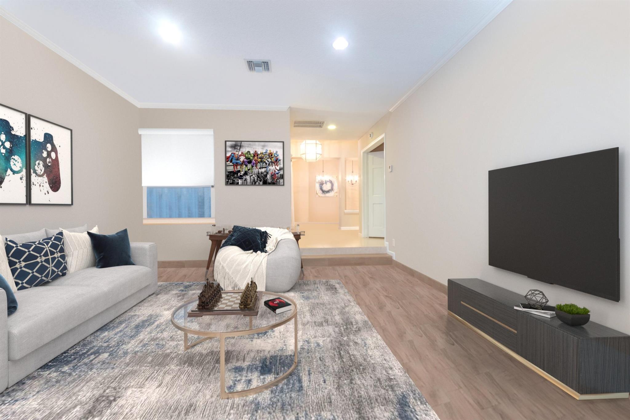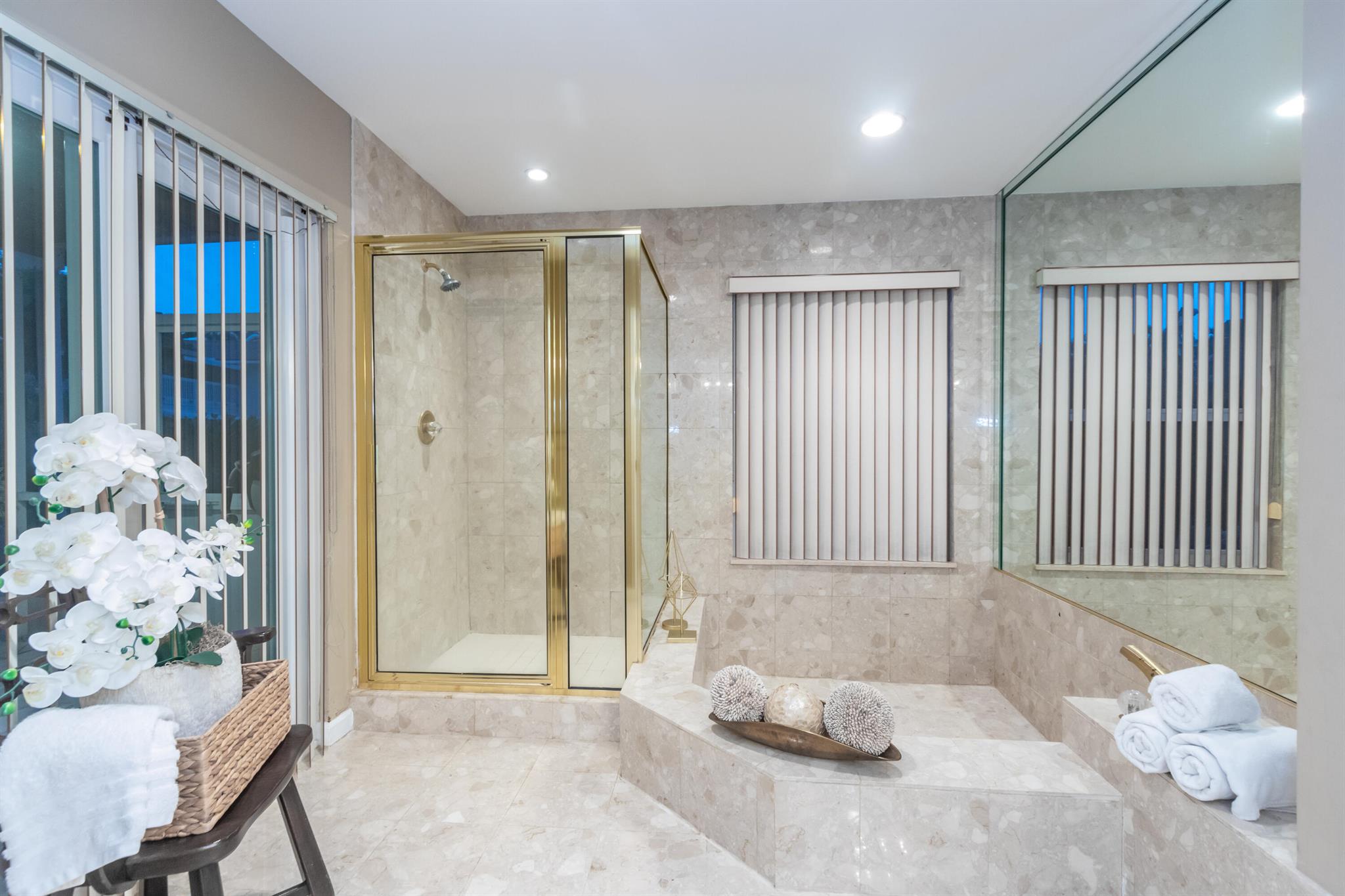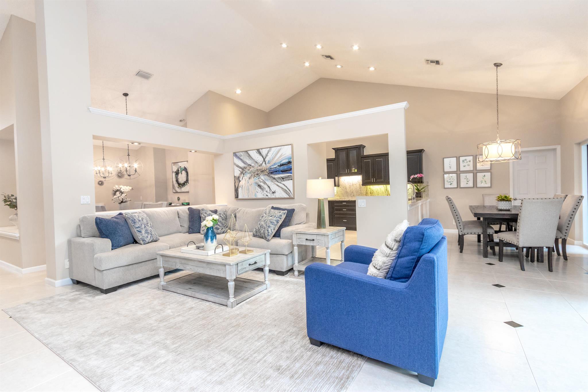 Stunning and serene single level pool home in the exclusive New Floresta in central Boca. This property offers great flexibility with 2973 sq. ft. and an open concept design. Situated on an interior oversized lot, the property affords privacy with lush tropical landscaping and has an extended circular drive. Perfect for entertaining this light & bright property boasts volume ceilings, a split bedroom floor plan, fireplace, wet bar, impact glass throughout, and two new A/C units. Large chef's kitchen has tons of storage and expansive counter space for serving and meal prep. The primary bedroom suite features sitting area, soaking tub, standalone shower, dual sink vanity & custom walk in closet. Relax and recharge by the resurfaced pool and spacious travertine patio. Bonus room. A must see!