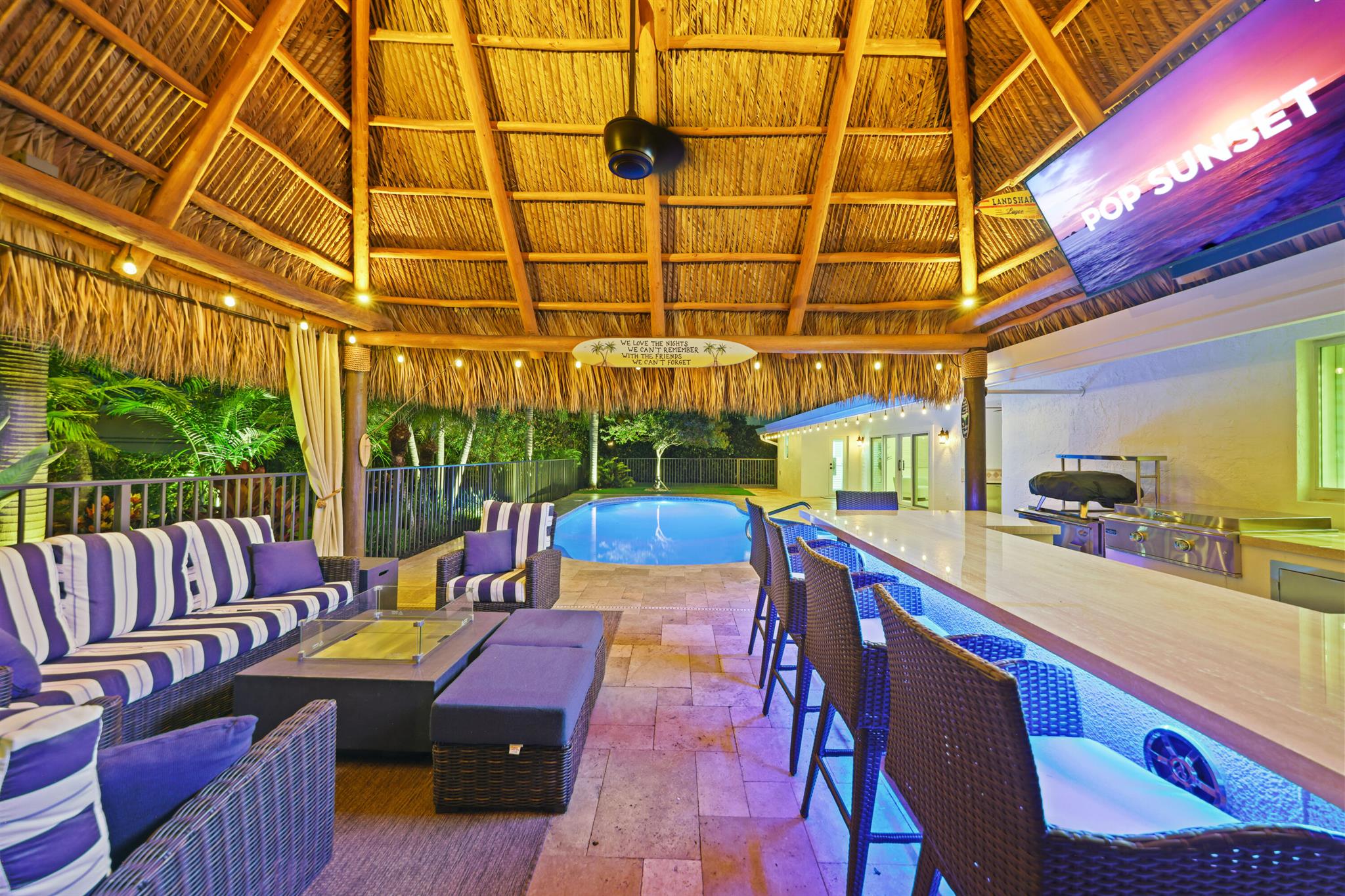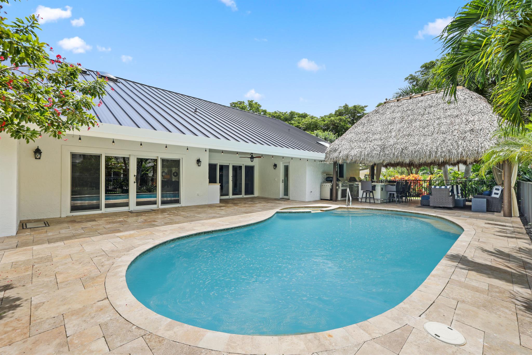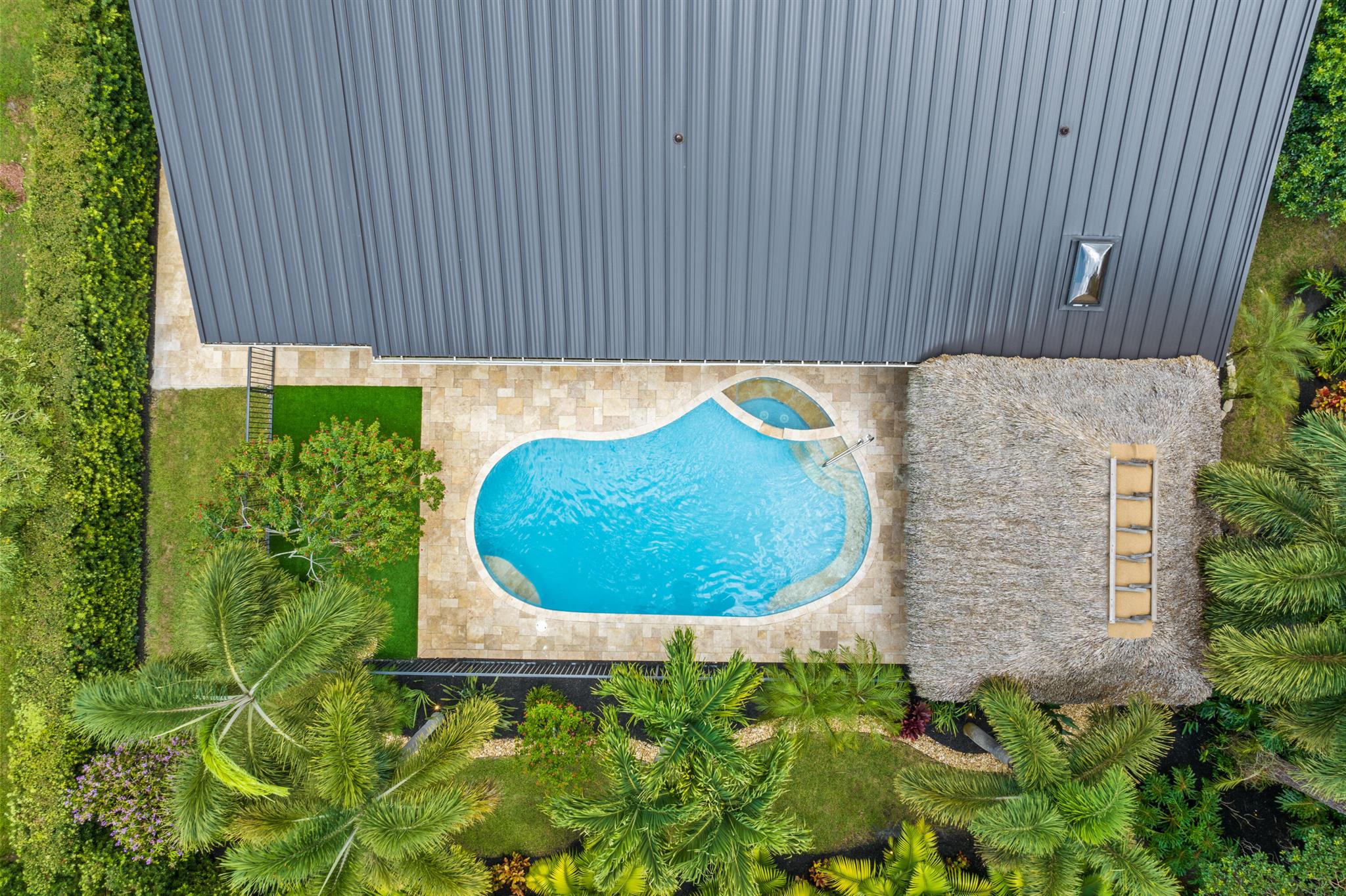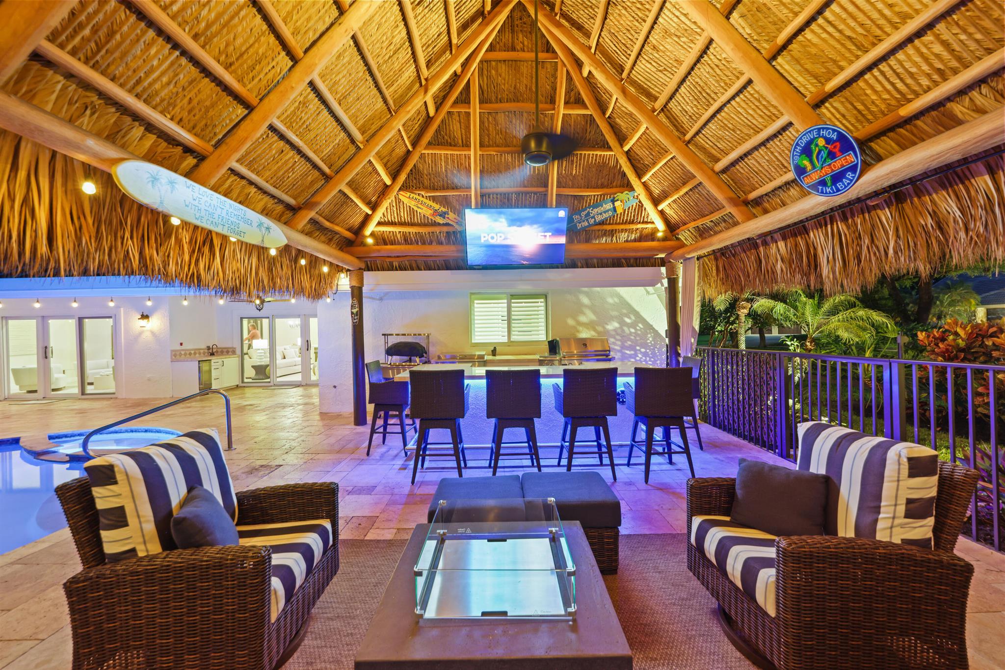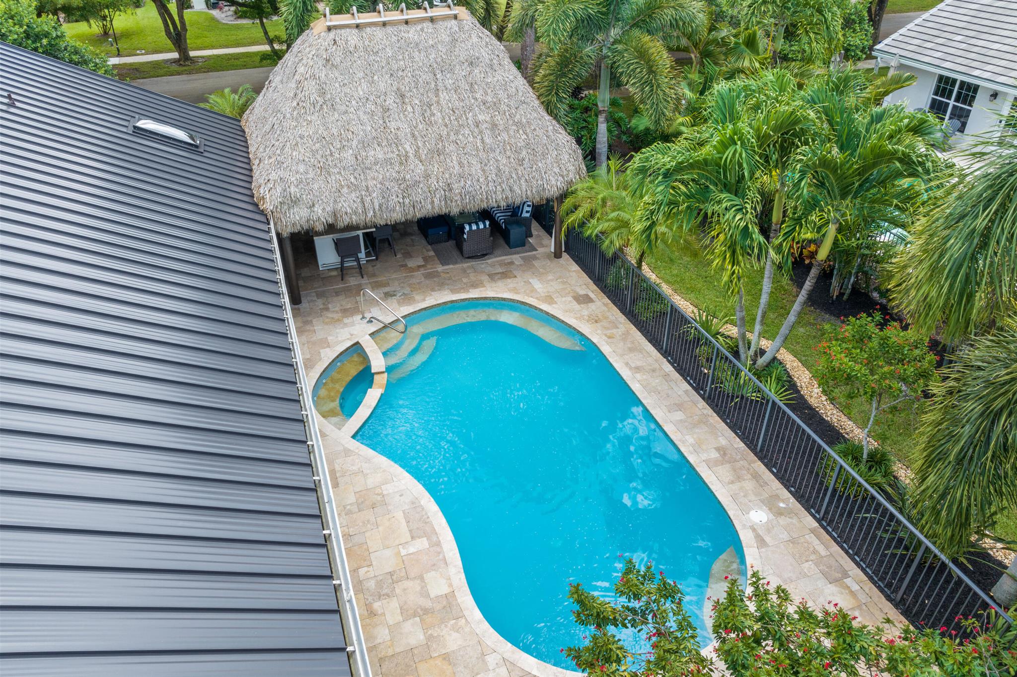 One of a kind! Nestled on a private cul-de-sac in the desirable Millpond community, this home truly checks all the boxes. Set on an oversized lot, it offers resort-style living and the ultimate Florida lifestyle. Featuring 4 bedrooms, 3.5 bathrooms, and a 2-car oversized garage, the home boasts a brand-new 2025 metal roof, impact windows and doors, and freshly painted interior and exterior.No expense has been spared, from lush landscaping with custom lighting to an upgraded circular travertine driveway and an outdoor living area designed for entertaining. The tiki hut includes a full Paradise grill bar, pizza oven, outdoor TV, Sonos system, and furniture, all conveying with the sale. In addition, the heated saltwater pool shines with 2023 Diamond Brite finish, new turf area,