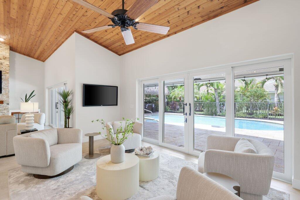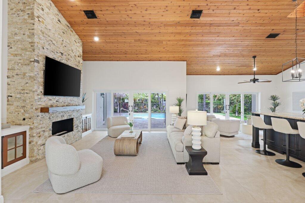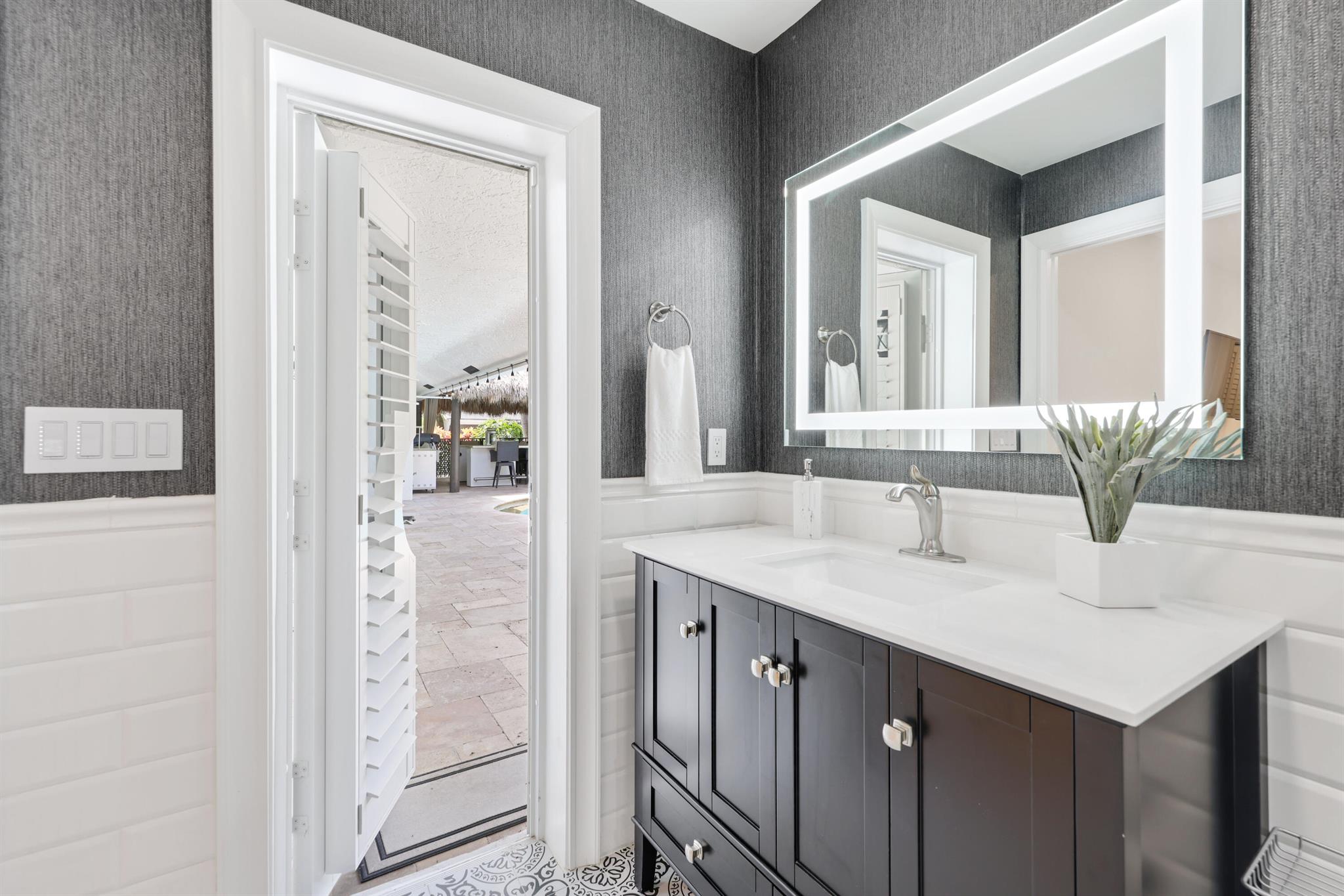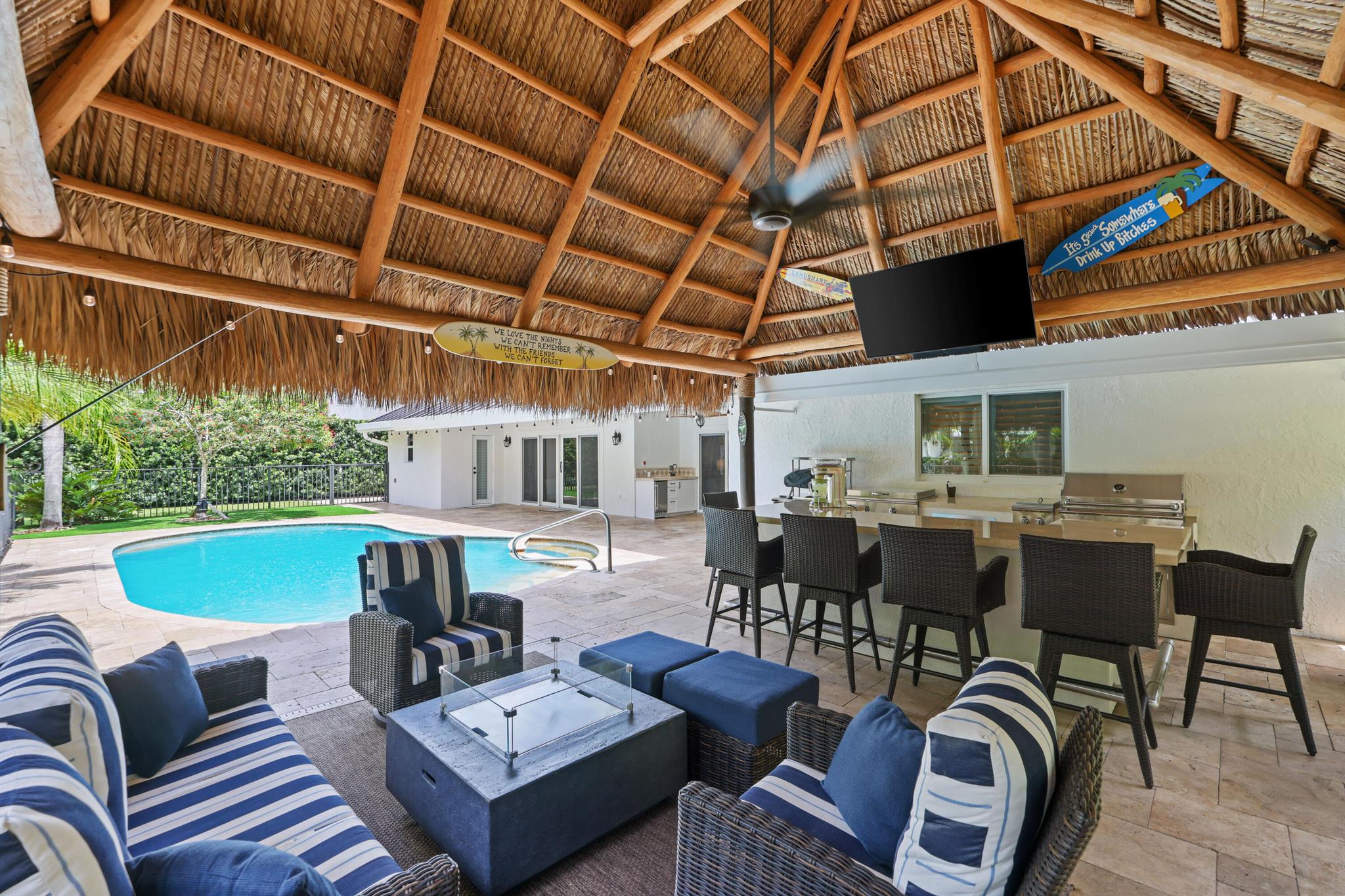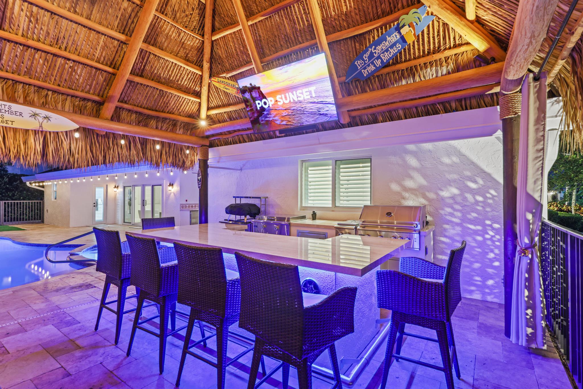 One of a kind! Nestled on a private cul-de-sac in the desirable Millpond community, this home truly checks all the boxes. Set on an oversized lot, it offers resort-style living and the ultimate Florida lifestyle. Featuring 4 bedrooms, 3.5 bathrooms, and a 2-car oversized garage, the home boasts a brand-new 2025 metal roof, impact windows and doors, and freshly painted interior and exterior.No expense has been spared, from lush landscaping with custom lighting to an upgraded circular travertine driveway and an outdoor living area designed for entertaining. The tiki hut includes a full Paradise grill bar, pizza oven, outdoor TV, Sonos system, and furniture, all conveying with the sale. In addition, the heated saltwater pool shines with 2023 Diamond Brite finish, new turf area,