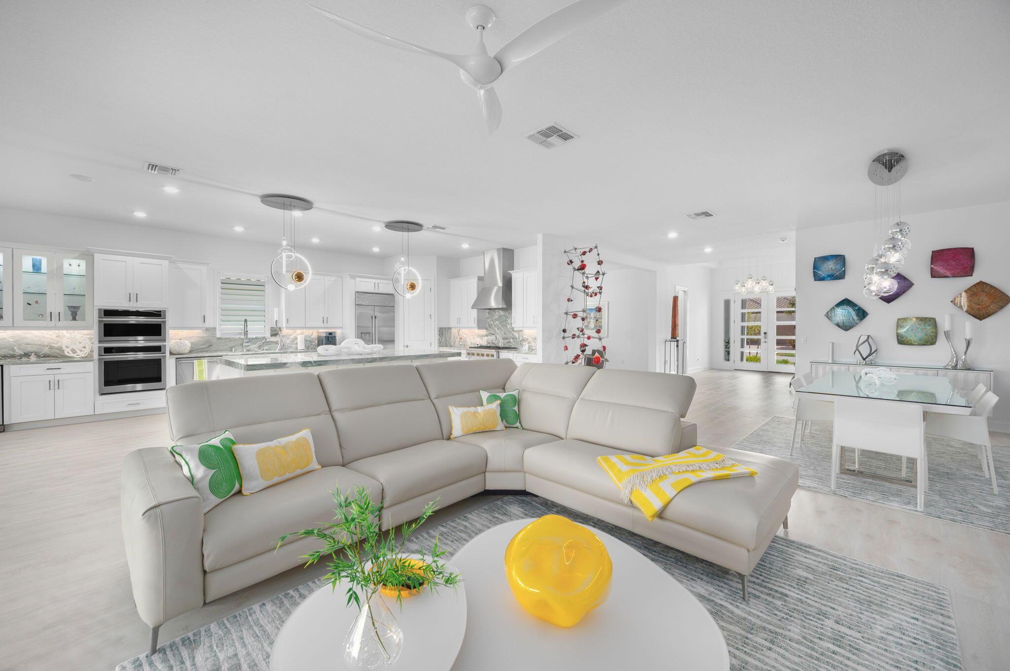 Welcome to the Esplanade 55+ gated community in Tradition. Where vacation never ends. This resort style community has something for everyone. This home is beautifully decorated with no detail left out. Grand entrance with just over 3,000sqft of living. You're immediately drawn in with the beautiful water view. Expanded lanai with motorized patio screens and outdoor kitchen. Gourmet kitchen with quartzite center island, pantry with electric, under cabinet lighting, upgraded glass showcase cabinets, built in cook top and combination microwave/wall oven (GE Monogram package) . Living room entertainment feature wall. Primary bedroom includes expansive walk in closet with built-ins, dual sinks with frameless glass shower enclosure. All lighting in the home has been upgraded including fans.