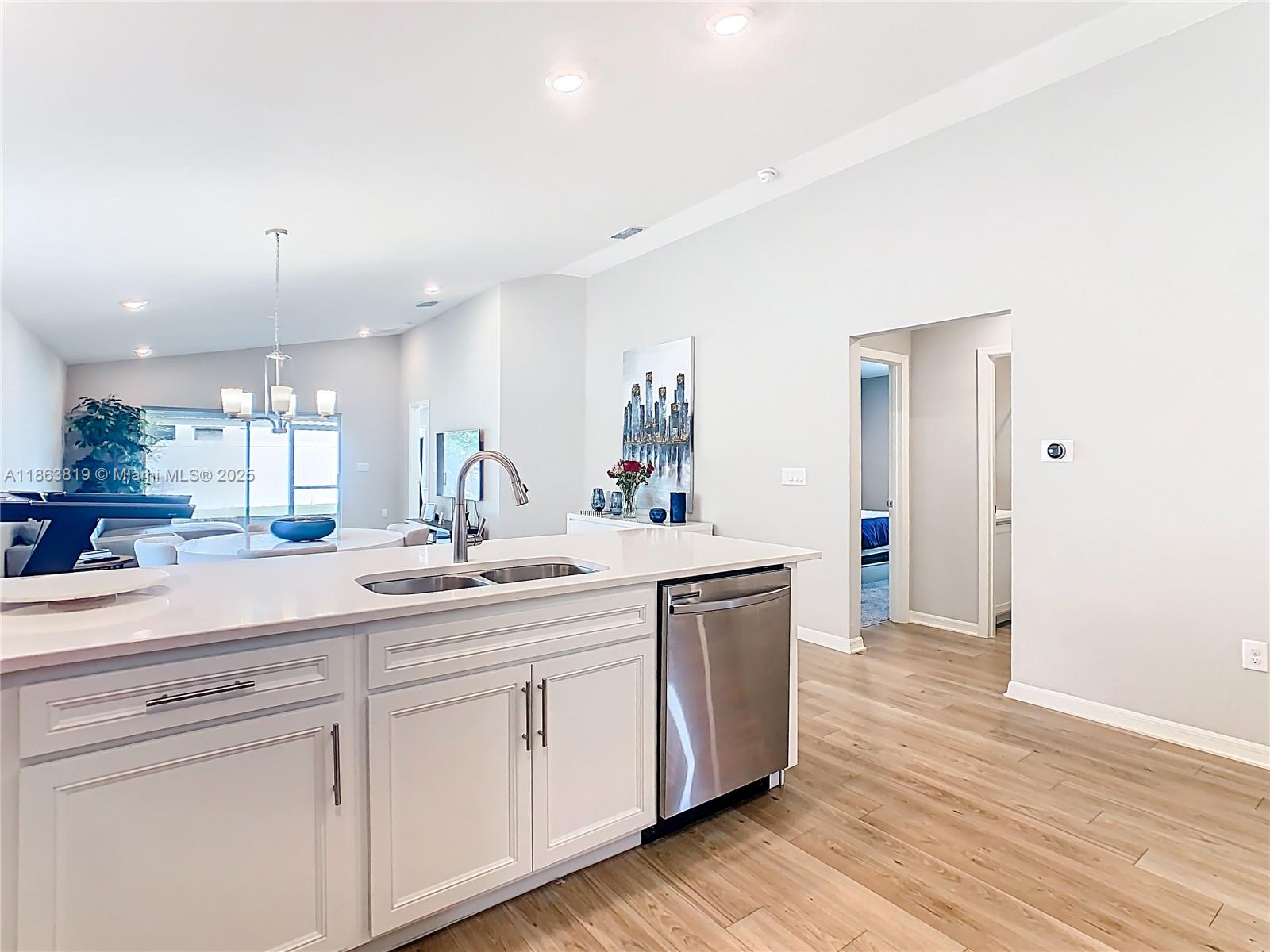 Welcome to this beautifully maintained 3BD/2BTH home w/ a 2 car garage, combining comfort, style, & modern living. The open floor plan is filled w/ natural light, creating a warm & inviting atmosphere. The spacious living & dining areas connect seamlessly to the modern kitchen, featuring granite countertops, stainless steel appliances, and a center island, perfect for everyday meals or entertaining. The private primary suite offers a true retreat with dual sinks, a walk-in closet, & a glass-enclosed shower. Additional highlights include a dedicated laundry room, & window blinds throughout, Ideally located in Davenport, this home offers easy access to shopping, dining, schools, & major highways, making it an excellent choice for both everyday living & entertaining.