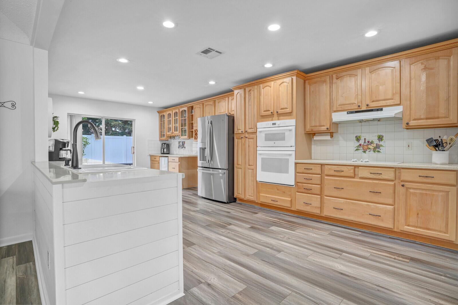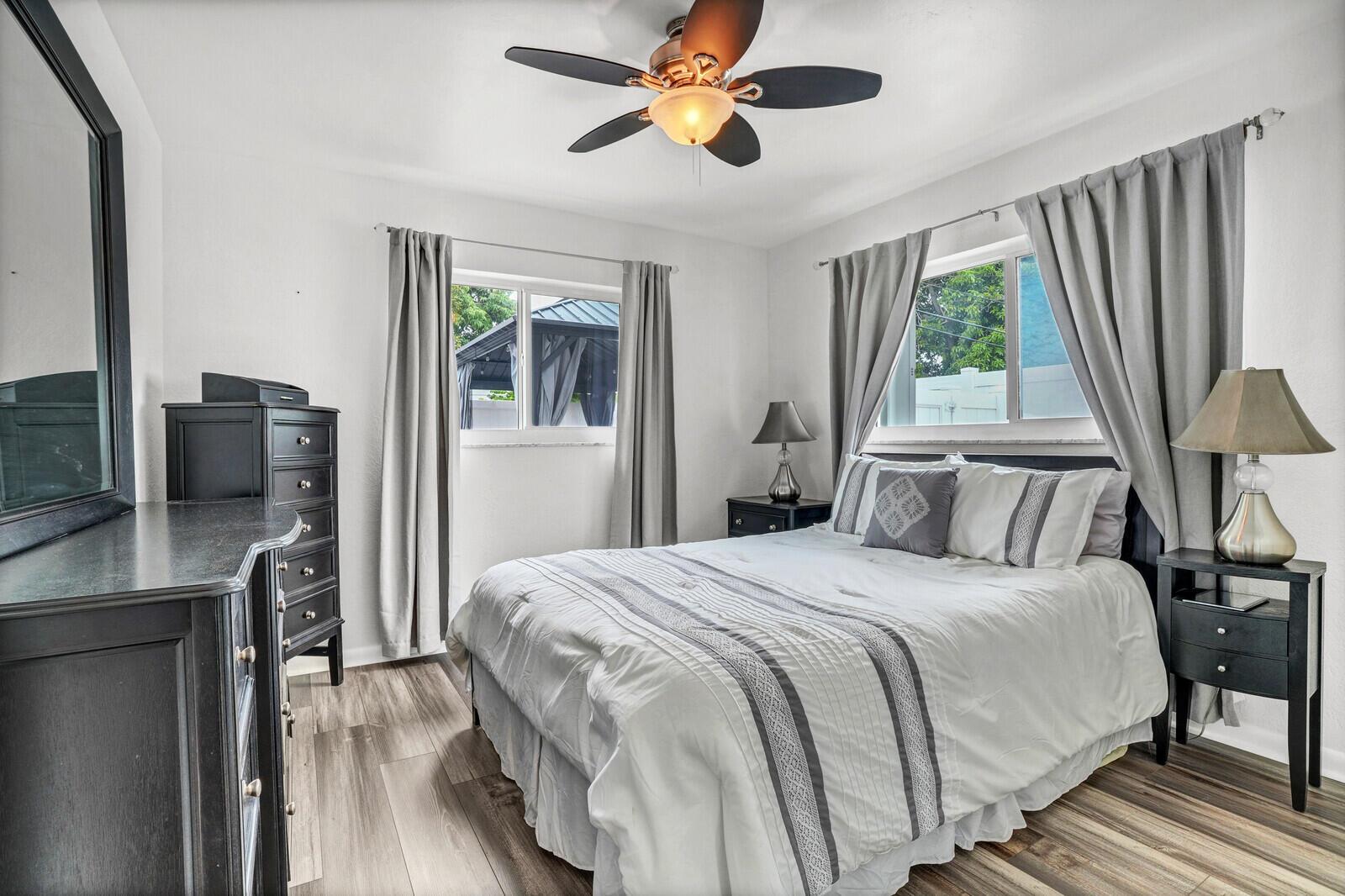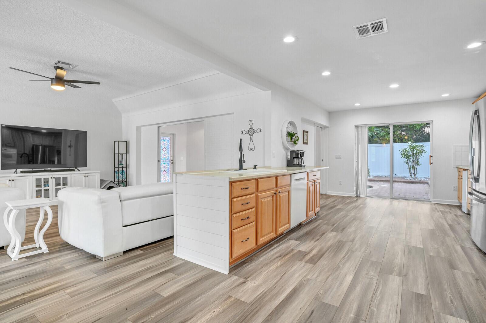 Welcome to this beautifully updated 4 bedroom home in the highly sought-after Boca Square neighborhood just 5 minutes to downtown Boca Raton and I-95, and zoned for the top-rated Addison Mizner school! This move-in ready home features a circular driveway and 2-car garage for ample parking. Inside, enjoy a functional open-concept layout with updated flooring throughout, a spacious primary suite with a rare walk-in closet, and generous closet space in the guest bedrooms. Notable upgrades include a newer roof (2013), AC (2021), water heater (2023), updated electrical panels, new vinyl fencing (2024), and accordion hurricane shutters for added security. The updated kitchen showcases real wood cabinetry, Corian countertops, newer appliances, and a cozy eat-in nook. Step outside to your