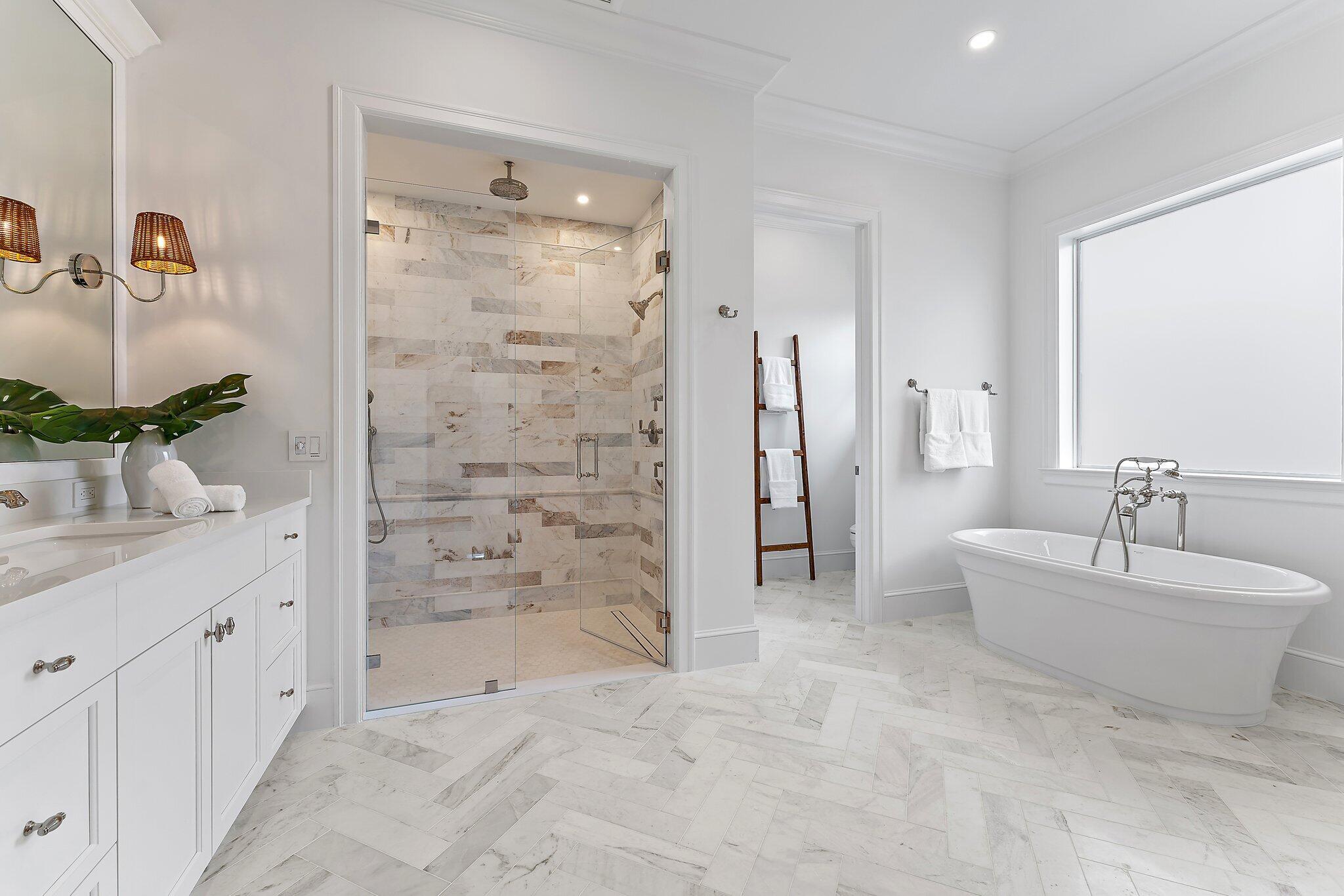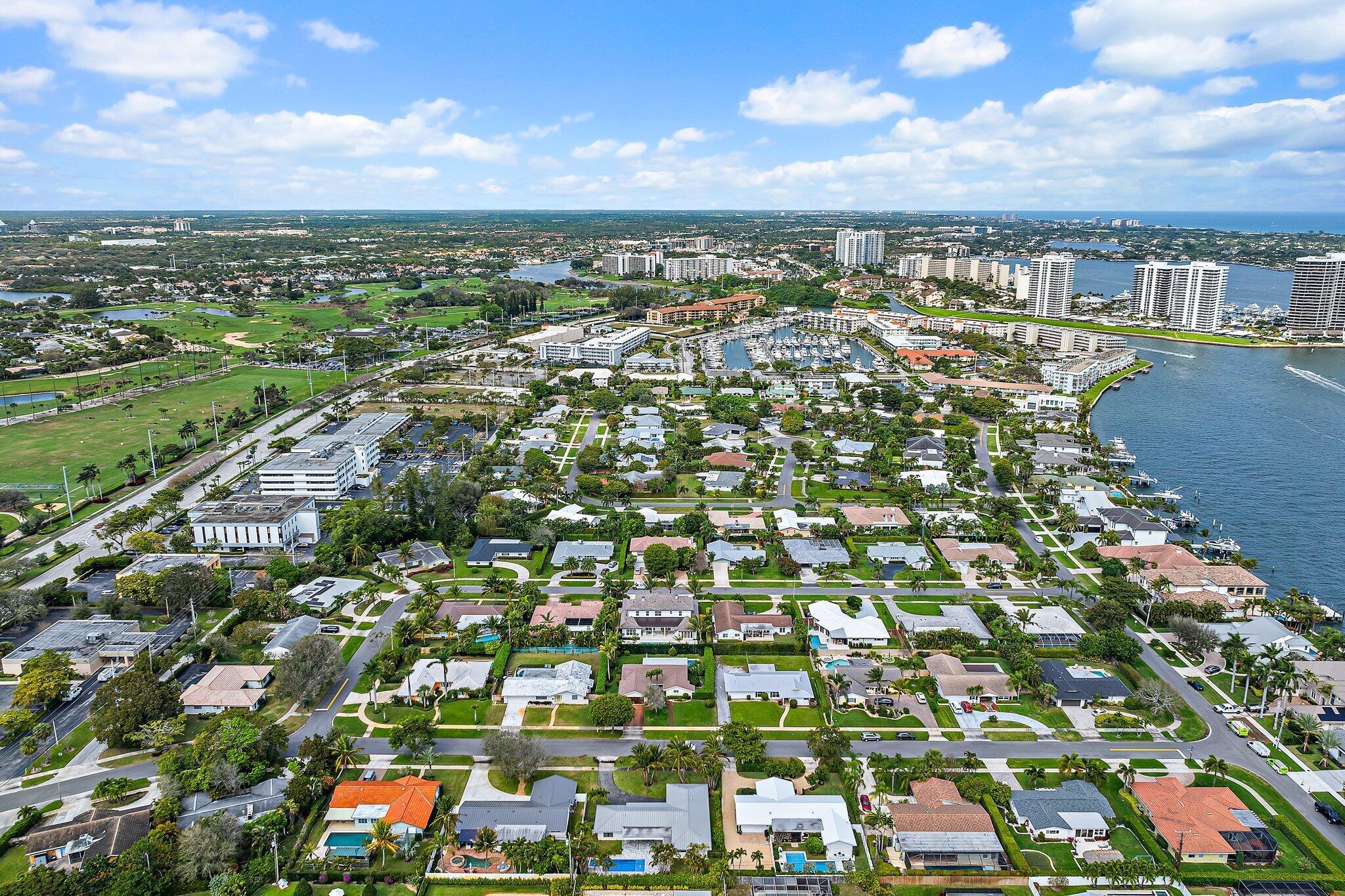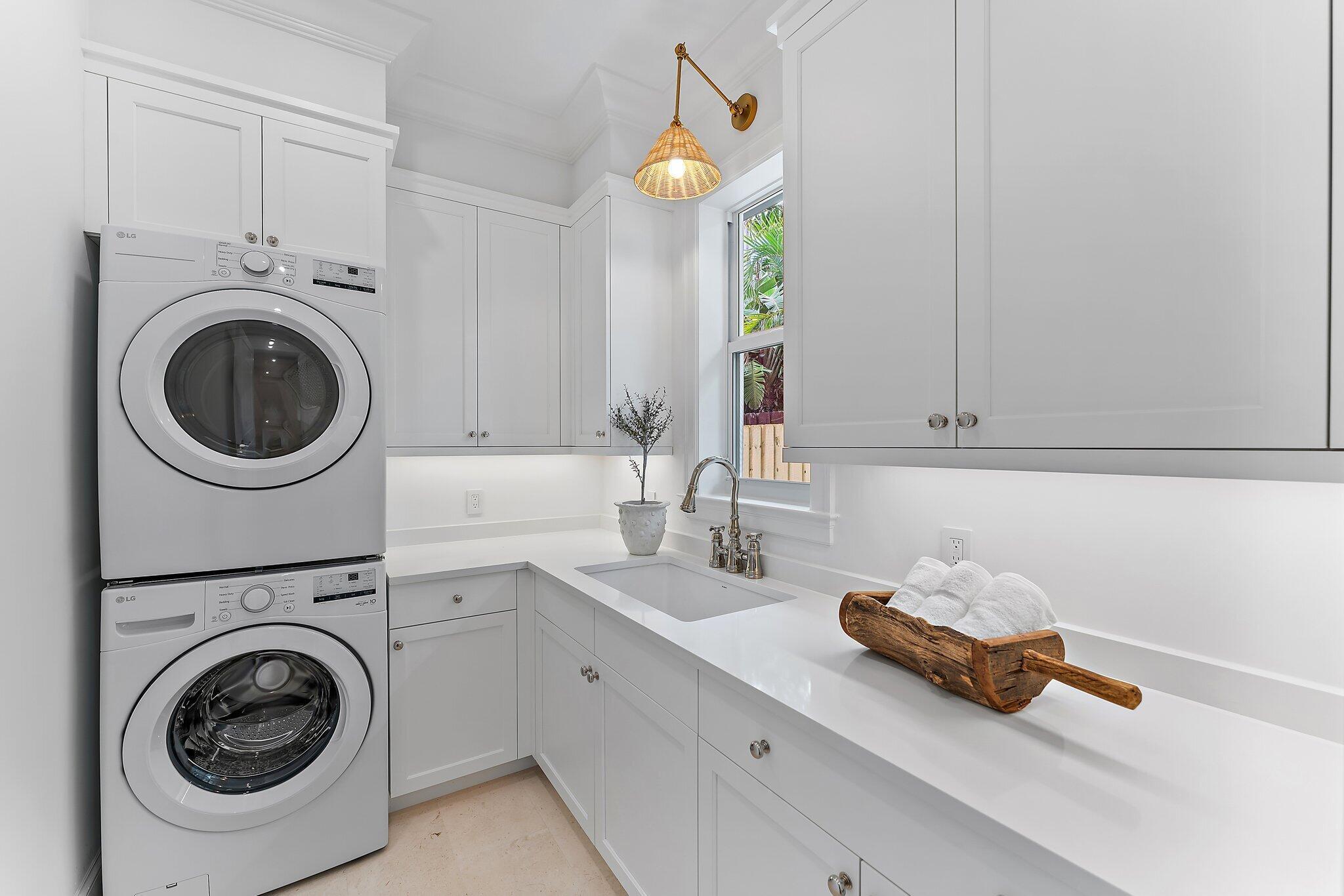 Easterly breezes await off of Lakeside Drive in this brand new construction estate, ''The Palm House'', curated by RJS Builders. Architecturally stunning and nestled amongst beautiful garden views with approximately 5,574 square feet of indoor/outdoor space, 4,046 square feet under air, for a total of 4 full bedrooms, plus den, loft, and 4.5 bathrooms. Beyond the coral stone foyer and private office, an expansive living room with fireplace and dining area seamlessly transition under voluminous ceilings, with wood beams above white oak floors, each with uniquely orchestrated garden and pool views. Stately Chef's kitchen, prep pantry with second refrigerator, dry bar with wine cooler and ice maker, and counter seating for gatherings, is anchored by white cabinetry and select