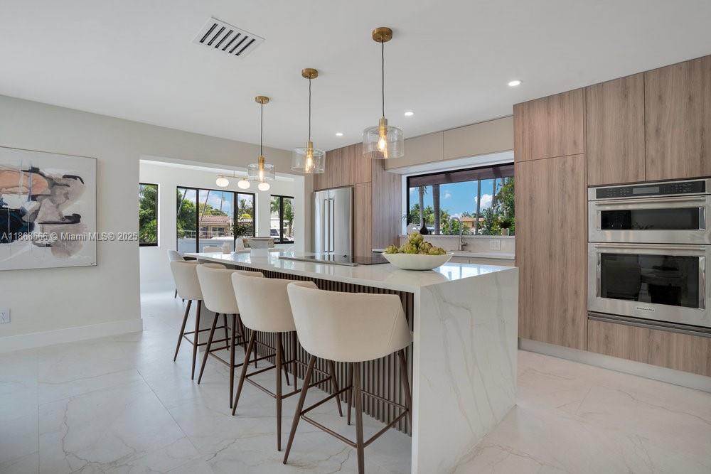 Welcome to 1004 Guava Isle, a fully reimagined waterfront home with 75 ft of frontage, private dock, brand-new infinity design pool + deck, and Direct Ocean Access, NO FIXED BRIDGES. The only area in Broward County with this feature. DEEPEST CANAL in the area. This Home was completely gutted and Major construction in 2025 includes all-new metal roof (up to 50 yrs), plumbing, electrical, flooring, all drywall & insulation, designer kitchen +spa like baths, and custom closets. Impact Windows and doors and Luxury Finishes throughout. The sunlit open concept integrates kitchen, dining, and living areas with seamless views of the canal, pool, and your boat. Extra room doubles as family room, office, or 4th bedroom. This is the one! — move-in ready for modern waterfront living.