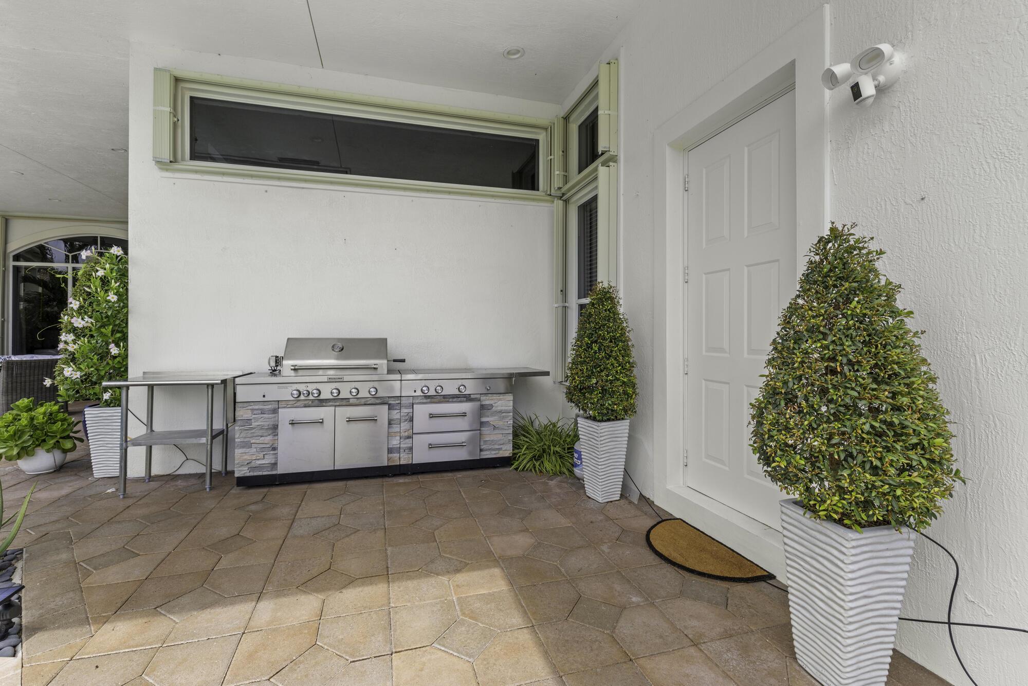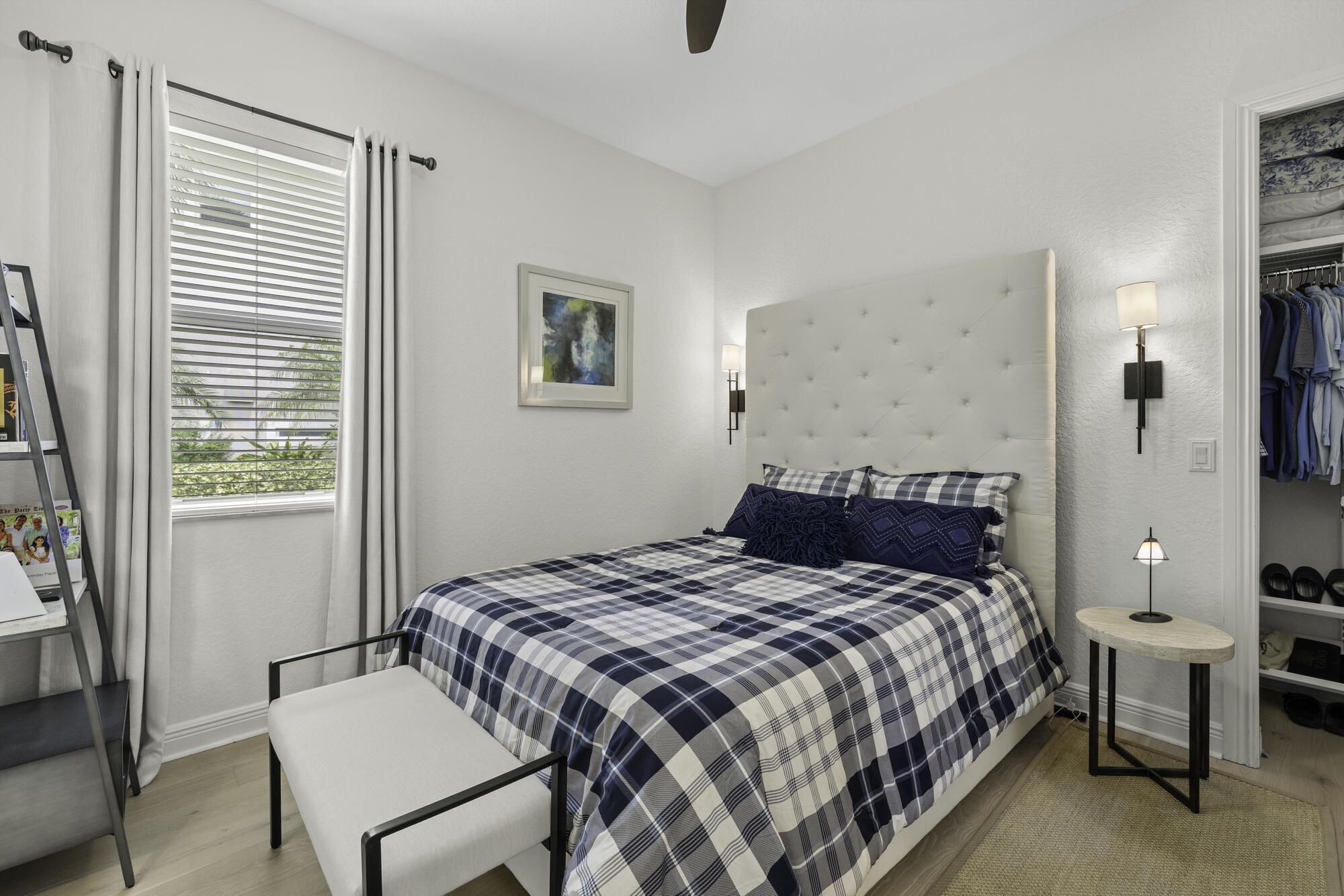 Thoughtfully designed by an upscale interior designer, every detail of this home shines, offering 4 bedrooms and 3.5 bathrooms. It features a triple split floor plan with high ceilings and elegant finishes. The renovated gourmet Kitchen showcases quartz counters, white cabinetry, new appliances, beverage fridge, double wall oven, center island with prep sink, reverse osmosis filter & hot water dispenser . Designed for comfort and privacy, two guest bedrooms are en suites, with a fourth bedroom and nearby half bathroom. The primary suite is a luxurious retreat with a spa like upscale hotel feel. All bathrooms have been fully renovated, with a neutral, timeless palette with upscale finishes. Each bedroom features beautiful light oak wood flooring , adding warmth and elegance throughout.