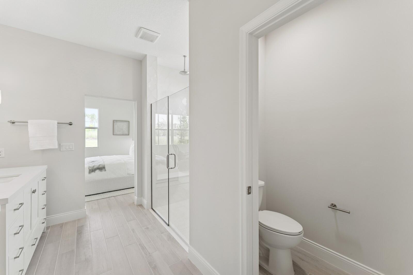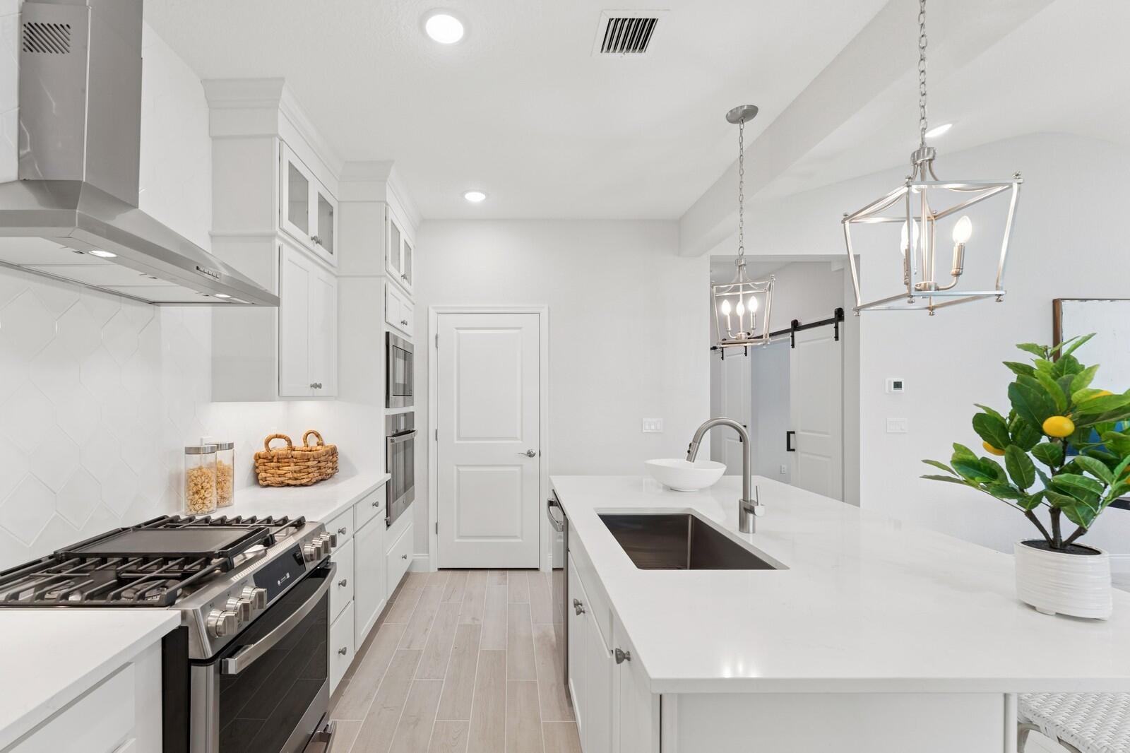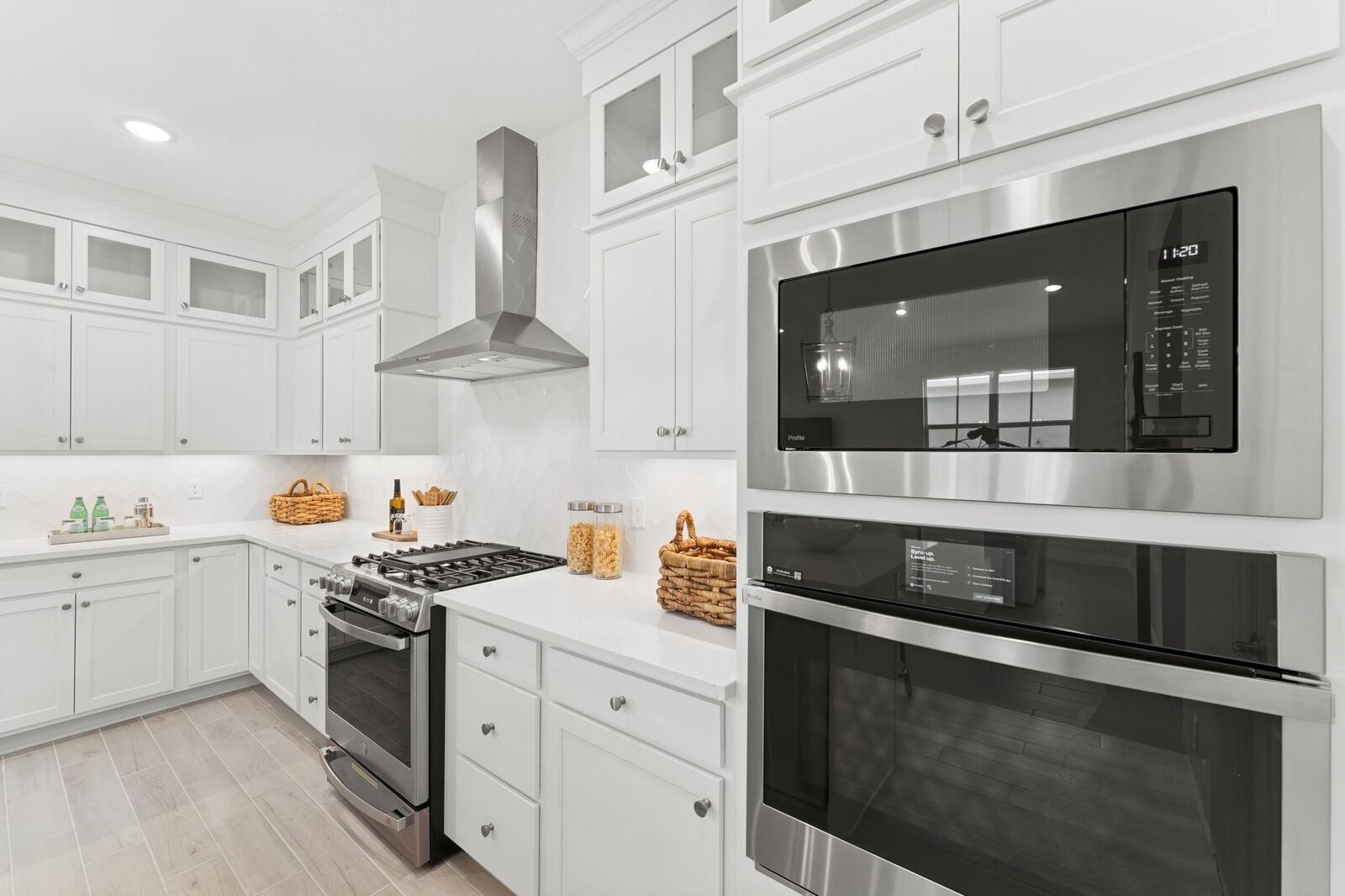 Available January 2026, the Bogart model offers the perfect blend of charm, functionality, and modern design on a stunning lakefront homesite within a vibrant 55+ active adult community. Situated on an impressive 7,098 sq ft lot with northwest exposure, this home is ideally positioned to capture Florida's breathtaking sunsets. Your private waterfront setting provides endless opportunities for relaxation--from quiet morning reflection by the water to hosting sunset gatherings on your outdoor living spaces.The kitchen is a true centerpiece, featuring Brellin Admiral blue soft-close cabinets, quartz countertops, a spacious island, and a GE stainless steel Smart Cooking Suite--an inviting space for preparing meals and entertaining friends.