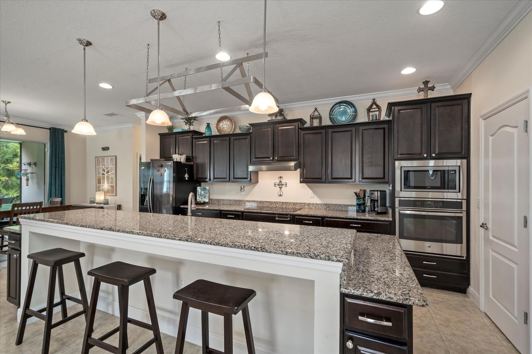 Now selling in Ashley Lakes!! Secure, gated community with super low HOA! Offers four bedrooms PLUS den/office, three baths, and expansive THREE-car garage! Designed with triple split floorplan, each bedroom enjoys enhanced privacy. Wide foyer opens to inviting living area, complemented by large laundry room and a versatile sunroom/office. Multiple dining options incl formal dining, bfast nook, extensive bar seating. Open kitchen boasts spacious pantry, stainless appliances, and generous wood cabinetry. Recessed lighting, ceiling fans, screened back patio! With low HOA fees and no association appvl req, this modern 2014-built home presents an outstanding opportunity!