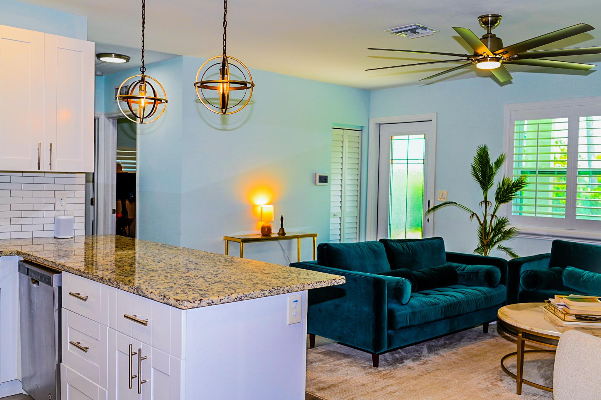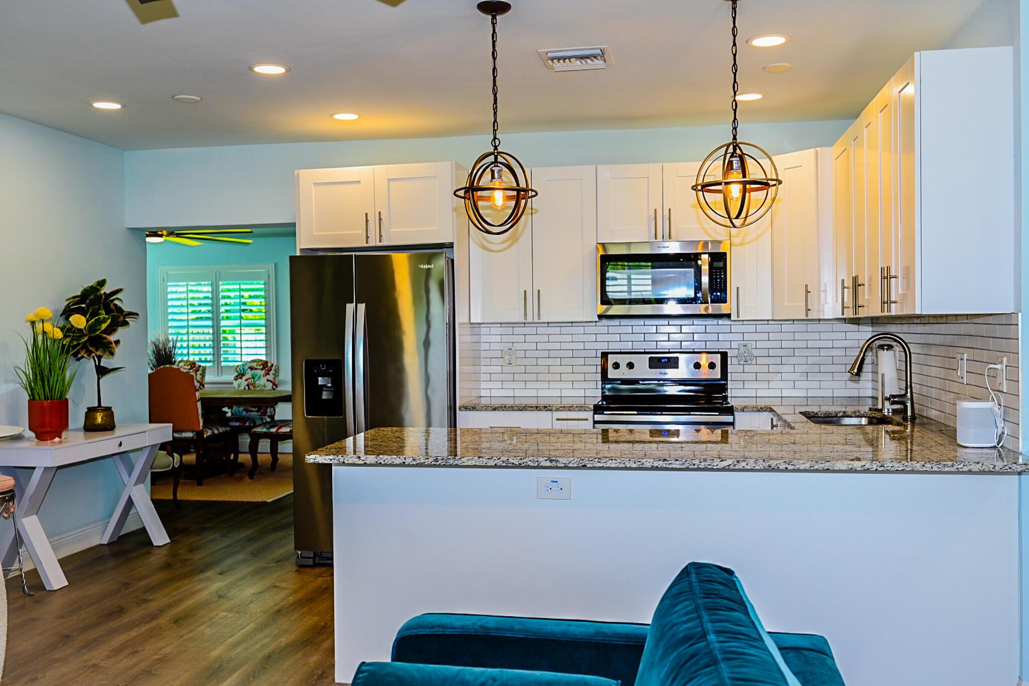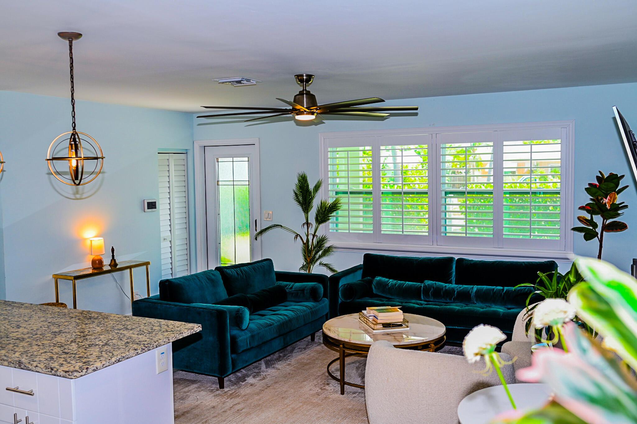 Located on one of the quietest streets in West Palm's coveted ''SoSo'' neighborhood, this totally updated split floor plan 3 bedroom/2 bath CBS bungalow has impact windows, a gracious primary suite, a 1 car garage, a brick fireplace and is loaded with charm. Large living areas boast tons of windows for great sunlight. The modern, open kitchen has granite counters, tile backsplash, soft-close white shaker cabinets, stainless appliances and a breakfast bar. The baths have frameless glass showers, new vanities, updated fixtures & flooring. The A/C and Tankless water heater were new in 2019. The home is Nest and Ring smart. The beautifully manicured lawn with lush grass, mature fruit/Palm/Poinciana trees offers tons of privacy. This charming home is just 2 blocks to Intracoastal & steps