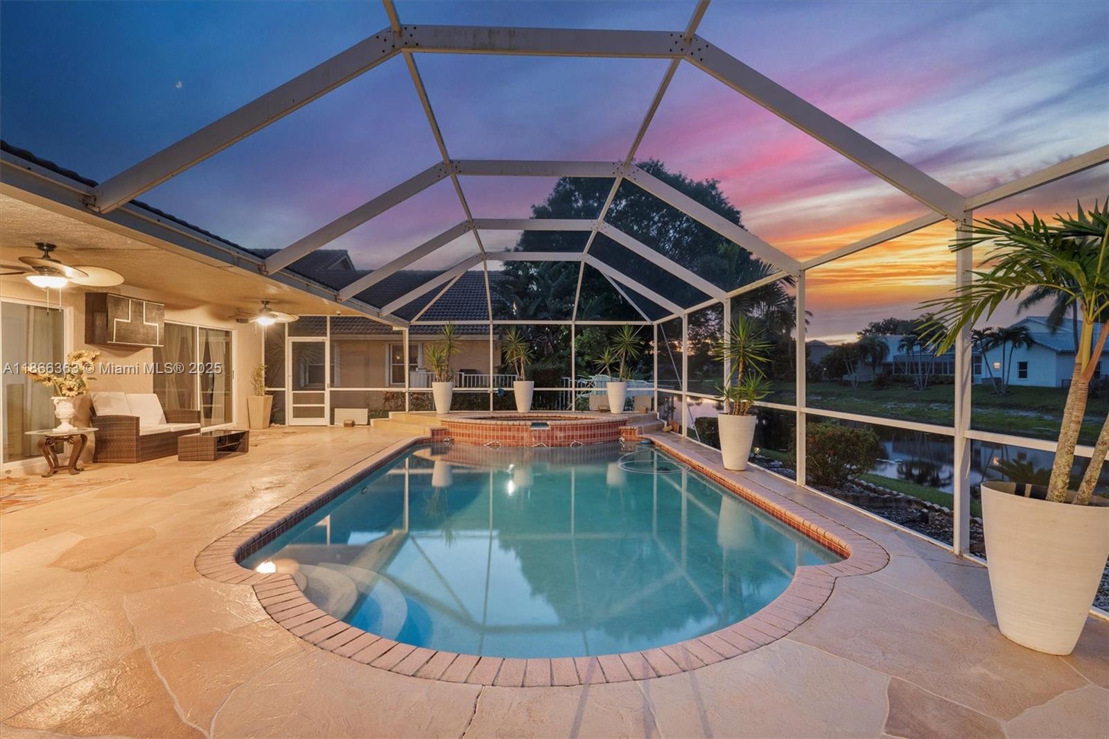 Beautiful 4-Bed, 2 Full & 2 Half Bath single-story home in gated Carriage Pointe Estate. Set on a large corner waterfront lot with lush landscaping, this residence offers an open layout with formal dining, living & family rooms. Gourmet kitchen features granite counters & stainless steel appliances. Light-filled interiors boast porcelain floors, laminate in bedrooms, custom closets, and upgraded baths. Primary suite includes a sitting area, dual sinks, Roman tub & shower. Screened, heated pool with covered patio, built-in BBQ bar & lake views. New A/C 2023, roof 5 yrs, water heater 2024. Large laundry & 2-car garage. Close to Sawgrass, schools, dining & parks. Mortgage savings may be available for buyers of this listing.
