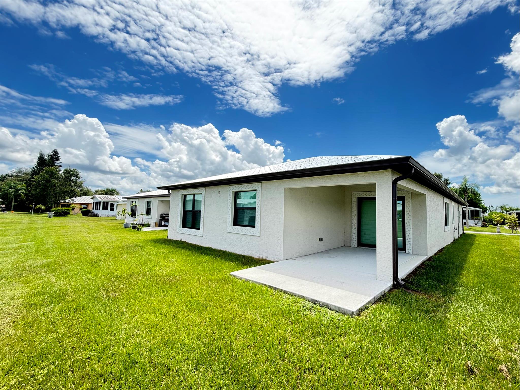 Rare to find new CBS home with many upgrades, Metal Roof, Bright Split floor plan, high ceilings, 2 Master suite bedrooms each with private bathroom, granite counter, dual sink vanities. Enormous walk-in closets Plus a large den/office/3rd bedroom.Ample Chef kitchen with white shaker cabinets & upgraded extra breakfast granite counter space.More Upgrades (not included on standard new construction) Baseboards 3/4 round wood all around the entire home, Plantation Shutters, Gutters.Very convenient impact Windows & Plantation Shutters throughout, even in the garage window for your privacy.Enjoy Lawn-cut service included & many amenities like 18 hole golf course (no fees to play), tennis, 2 pools, pickleball, shuffleboard, bocce, pool tables, library, card games, gym, bingo, happy