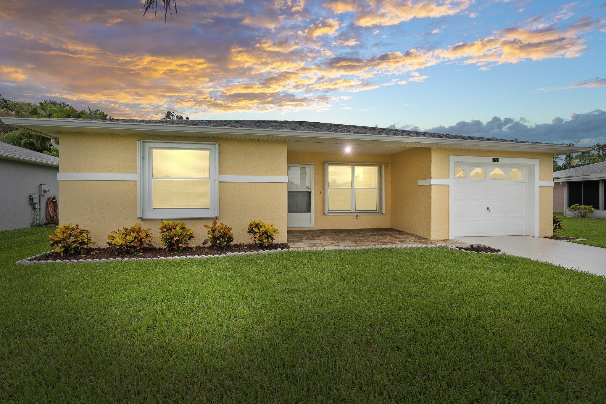 MOVE IN READY! Charming 2BR/2BA CBS home in Palm Grove, a 55+ gated community in Fort Pierce. Offering 1,135 sq. ft., this home features tile floors, open living/dining, bright kitchen, and a primary suite with private bath. Guest room and bath for visitors. Enjoy a 10x24 oversized screened porch, irrigation system, and one-car garage. Roof 2019, AC 2025. Low-maintenance yard. HOA includes water, sewer, cable, internet, lawn care, and top amenities: heated pool, pickleball, tennis, shuffleboard, clubhouse, fitness center & 24-hr security. Close to shopping, dining, beaches & medical. Seller willing to contribute $3,000 towards Buyers closing cost with a full price offer.