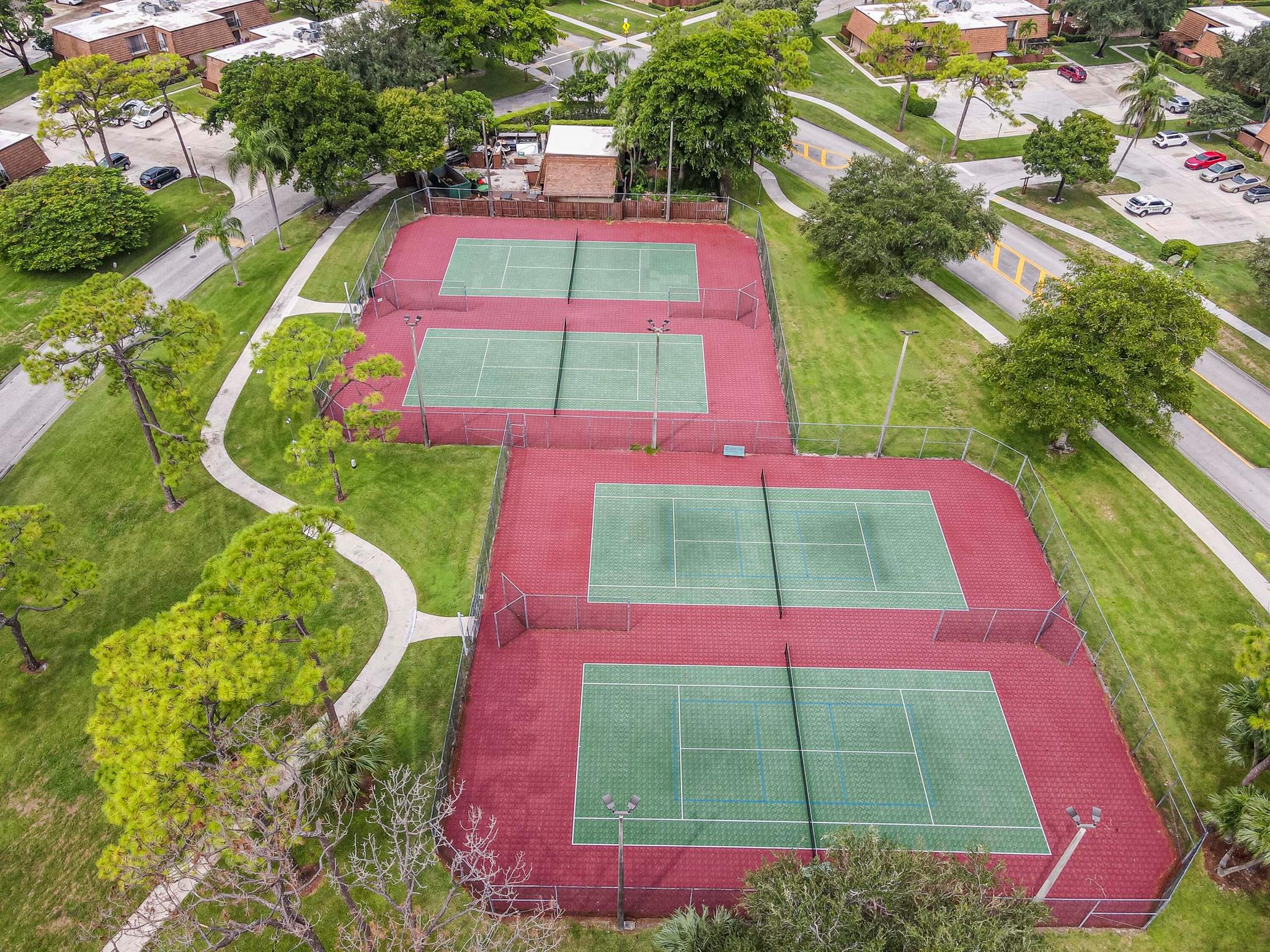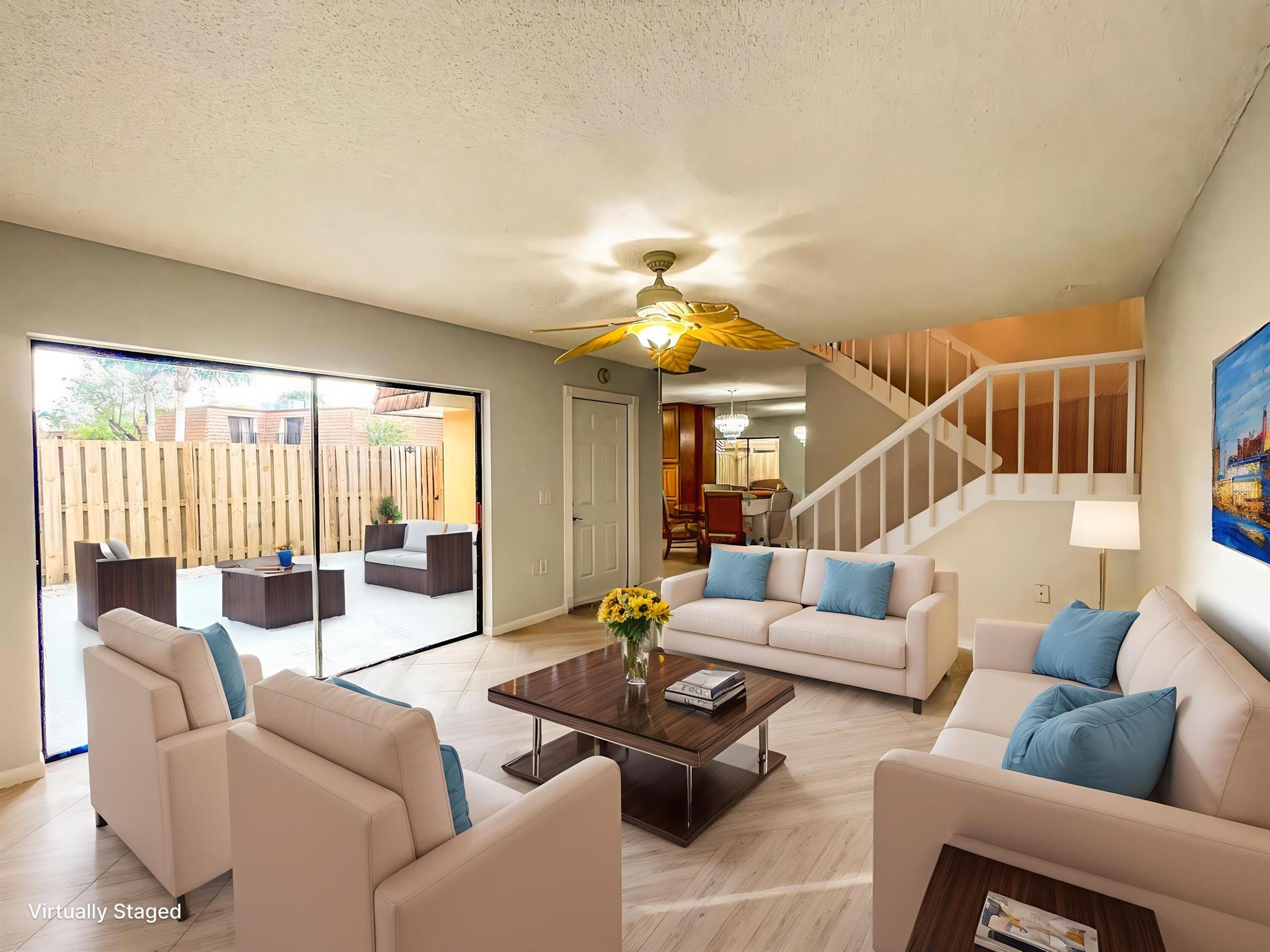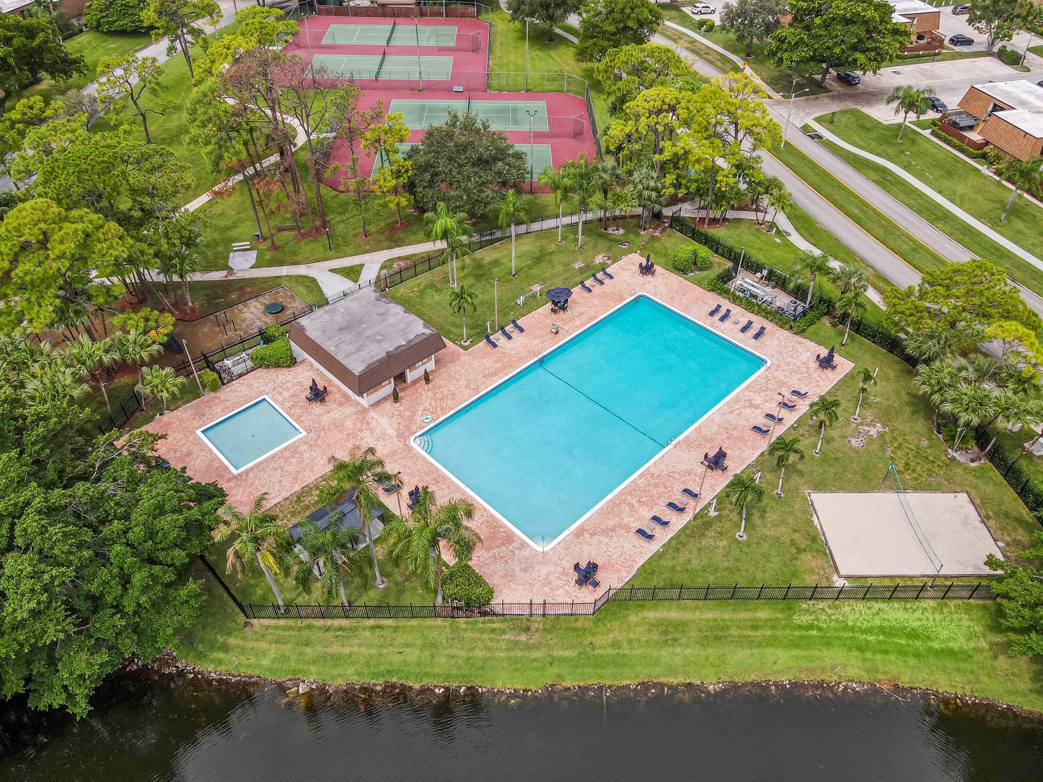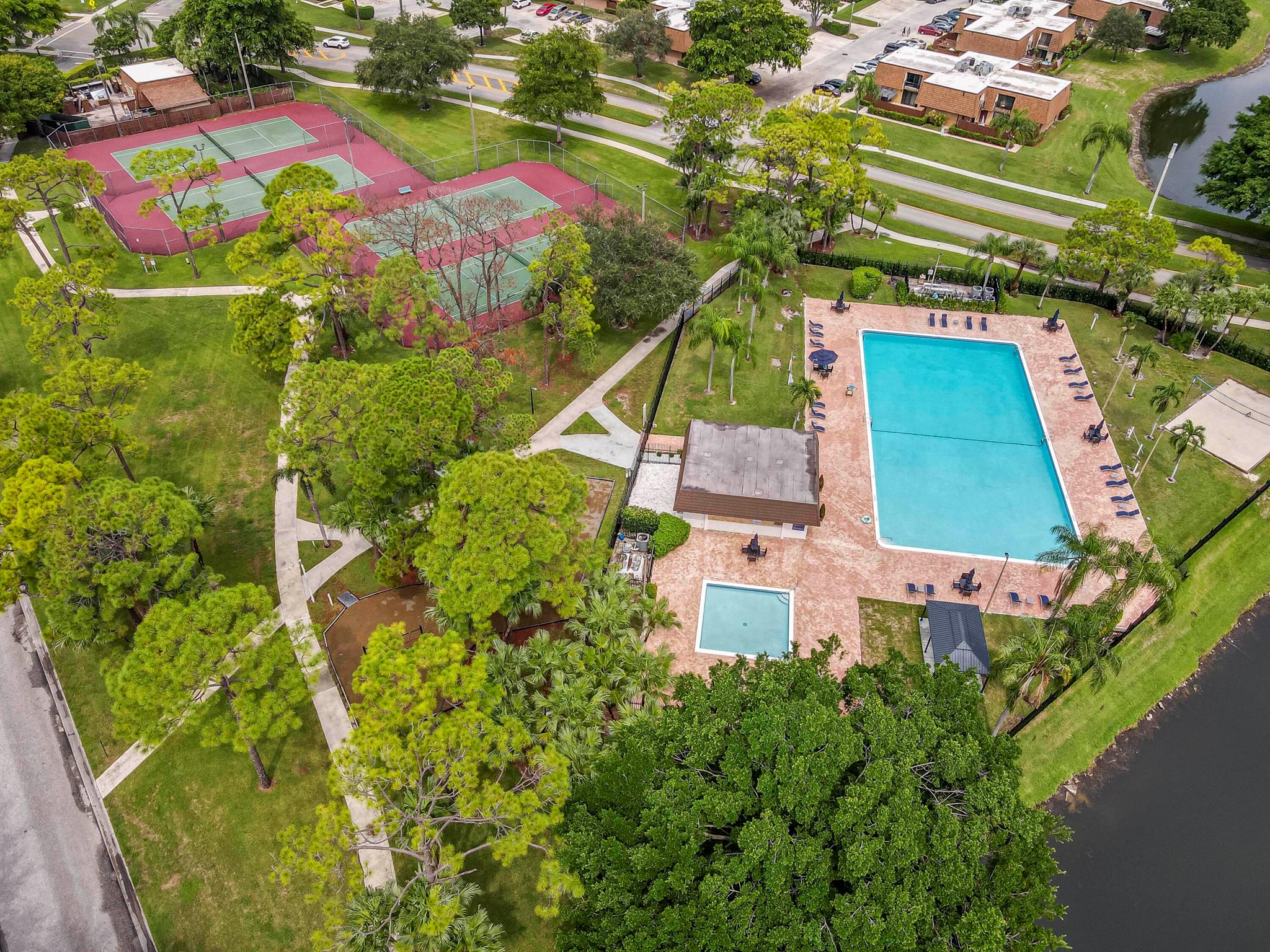 MOTIVATED SELLER! Move-in ready and designed for both comfort and outdoor living! This beautifully maintained 3 bedroom, 3 full bath quad townhouse offers a bright, open layout with tile flooring throughout, fresh interior paint, and a newly painted private fenced patio, perfect for outdoor dining and relaxing in your own private oasis. The spacious floor plan includes a versatile first-floor bedroom and full bath, ideal for guests, a home office, or a private retreat. Upstairs, the primary suite features his-and-her closets, including a large walk-in, while the convenience of an upstairs laundry makes everyday living effortless. Set within a lushly landscaped community filled with mature trees and greenery, residents enjoy amenities such as a renovated Olympic-size pool,