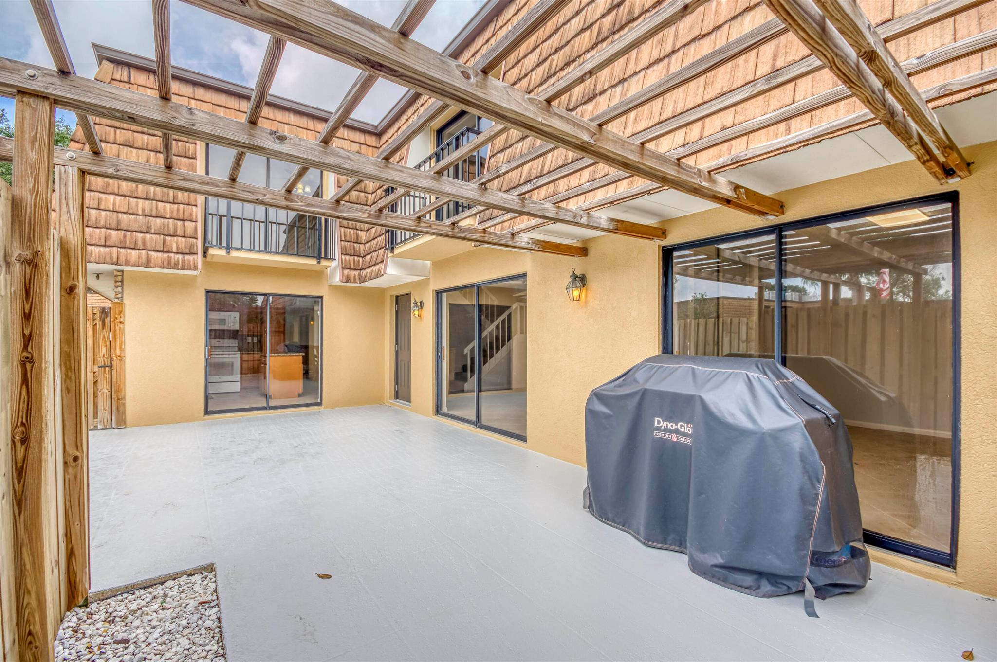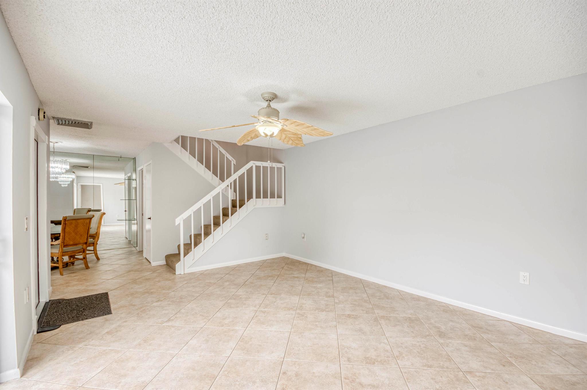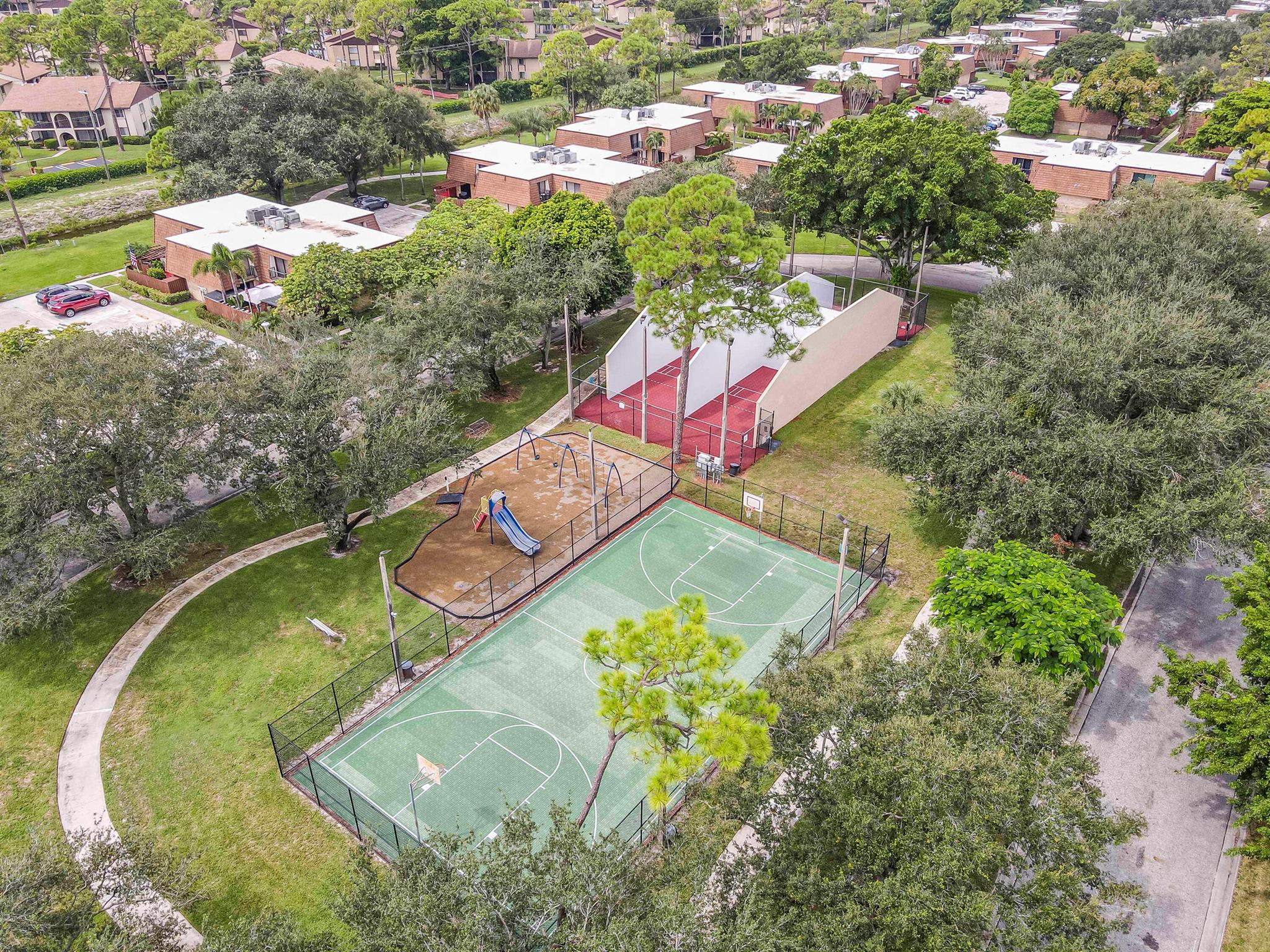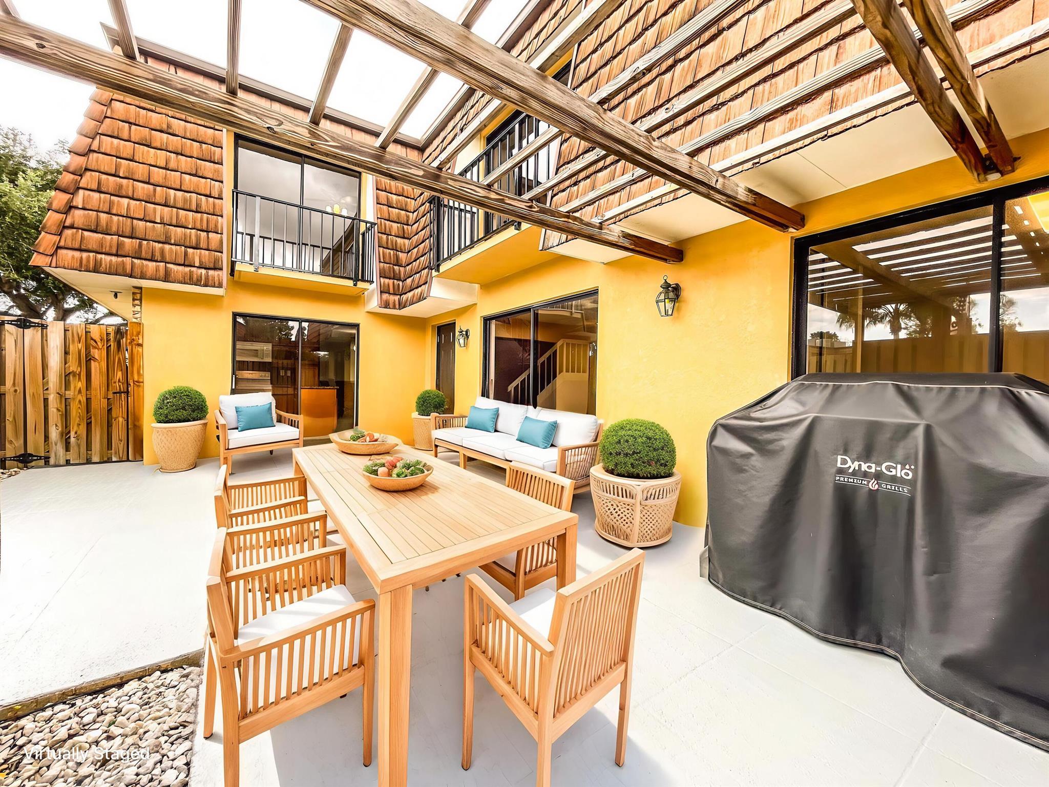 MOTIVATED SELLER! Move-in ready and designed for both comfort and outdoor living! This beautifully maintained 3 bedroom, 3 full bath quad townhouse offers a bright, open layout with tile flooring throughout, fresh interior paint, and a newly painted private fenced patio, perfect for outdoor dining and relaxing in your own private oasis. The spacious floor plan includes a versatile first-floor bedroom and full bath, ideal for guests, a home office, or a private retreat. Upstairs, the primary suite features his-and-her closets, including a large walk-in, while the convenience of an upstairs laundry makes everyday living effortless. Set within a lushly landscaped community filled with mature trees and greenery, residents enjoy amenities such as a renovated Olympic-size pool,