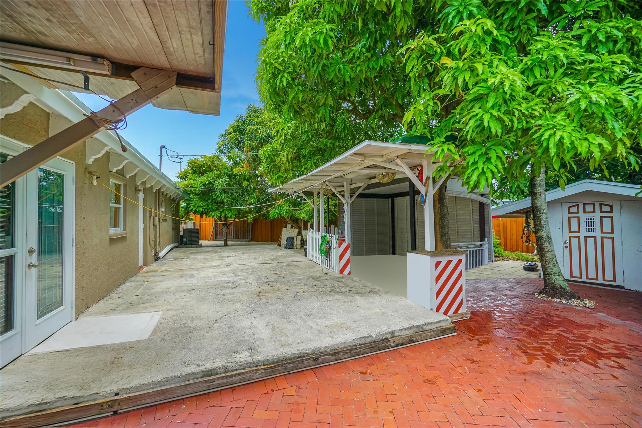 Charming 3-bedroom, 2-bath single-family home (easily convertible back into 4 bedrooms) situated on an expansive lot with stunning landscaping, including palm & mango trees. Offering no HOA, this property provides freedom & flexibility perfect for investors. Recent upgrades include NEW ROOF(2021), a 3-year-old A/C, plantation shutters, & a renovated kitchen. Enjoy the outdoors with a covered patio complete with BBQ & sink area, extra storage sheds, & ample parking plus a covered carport. The home features partial impact windows with shutters for the rest, giving you peace of mind. Centrally located near the Turnpike, major roads, & less than 20 minutes to the beach, this home offers the perfect balance of comfort, convenience, & Florida lifestyle living
