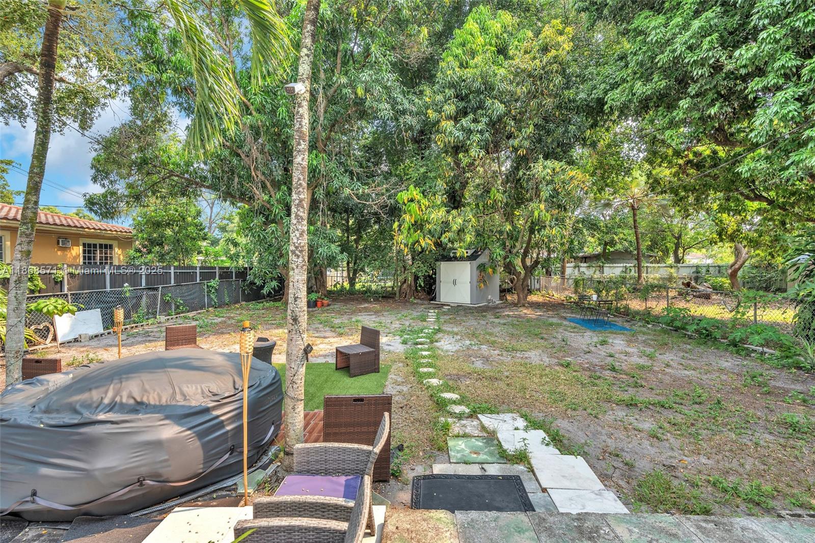 Charming and updated 2 bedroom, 1 bath single family home in North Miami. This cozy 750 sq. ft. residence features a remodeled interior, spacious fenced backyard, Jacuzzi, storage shed, and outdoor laundry room. Enjoy plenty of parking and fruit trees, including mango and avocado. Conveniently located just minutes from I-95, Barry University, top schools, shopping, dining, and more. Ready to move in with furniture for quick rental as an incredible investment opportunity to rent right away or make it your own.