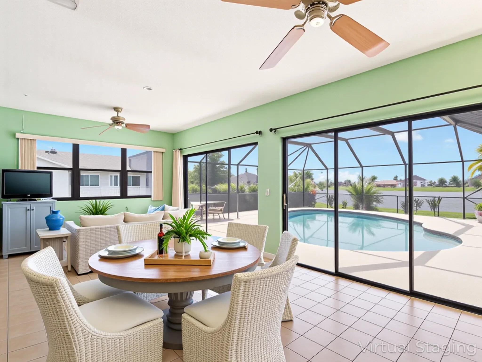 Discover this beautiful single-family pool home perfectly situated on a tranquil lake in the highly sought-after Woodland Creek community. Offering 3 bedrooms, 2 bathrooms, a private office, and a 2-car garage, this spacious residence features an open split-bedroom floor plan with vaulted ceilings, a formal living and dining area, and a comfortable family room designed for both everyday living and entertaining. The kitchen overlooks the main living space and opens to a fully enclosed lanai, where you can relax and enjoy peaceful lake views year-round. Woodland Creek is admired for its A-rated schools, low HOA fees, and wonderful amenities including tennis, pickleball, a lakeside pavilion, and a play area. Ideally located near shopping, dining, nature preserves, and the National Polo