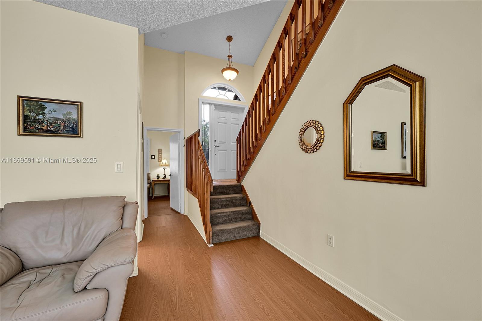 Beautiful two-story home in the highly sought-after Emerald Pointe community! This 3-bed, 3-bath residence is perfectly situated, just steps from the community pool, gym, and playground. The home features several valuable upgrades, impact windows, a hurricane-proof garage door, a 2021 A/C unit, and a six-year-old roof. The first floor includes a spacious living room, one bedroom with a full bathroom, and a kitchen that connects to a screened porch and private patio. Upstairs, the master bedroom has an upgraded en-suite bathroom, and the third bedroom also has a full bathroom next door. Don't miss the opportunity to make it yours! This home is move-in ready. Don't miss your chance to make it yours!
