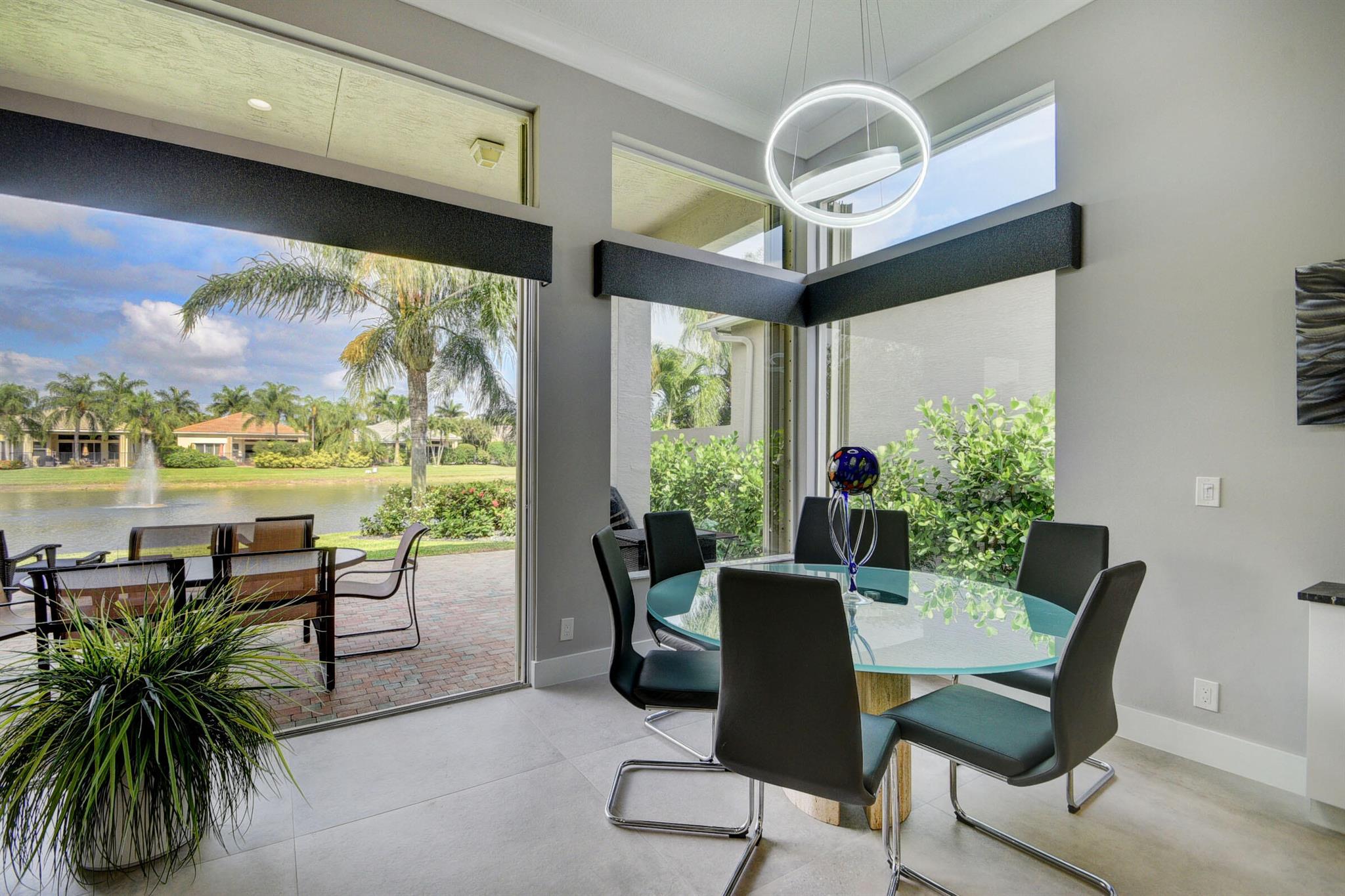 Renovated with every detail in mind, this 4-bedroom, 4-bathroom waterfront home offers a contemporary yet warm design. Oversized 3.25' x 3.25' tile floors, new baseboards, crown moldings, door frames and moldings. Open kitchen, 42-inch cabinetry, quartz countertops, tiled backsplash, raised oven, wine cooler, large island with bar seating Soft-close cabinets and drawers throughout. Flexible floor plan with unique converted DR to office and a media-style living room. The primary suite showcases a custom wood accent wall with fountain & lake views. The bath boasts dual oversized vanities with heated mirrors and an expanded glass-enclosed rain shower with wall and ceiling fixtures. Each guest room has its own updated en-suite bath with raised cabinetry and frameless glass doors.