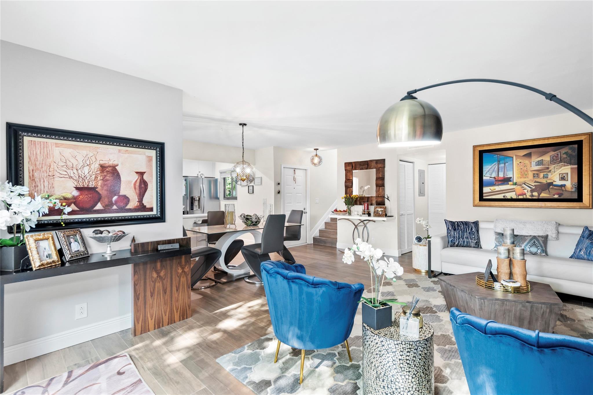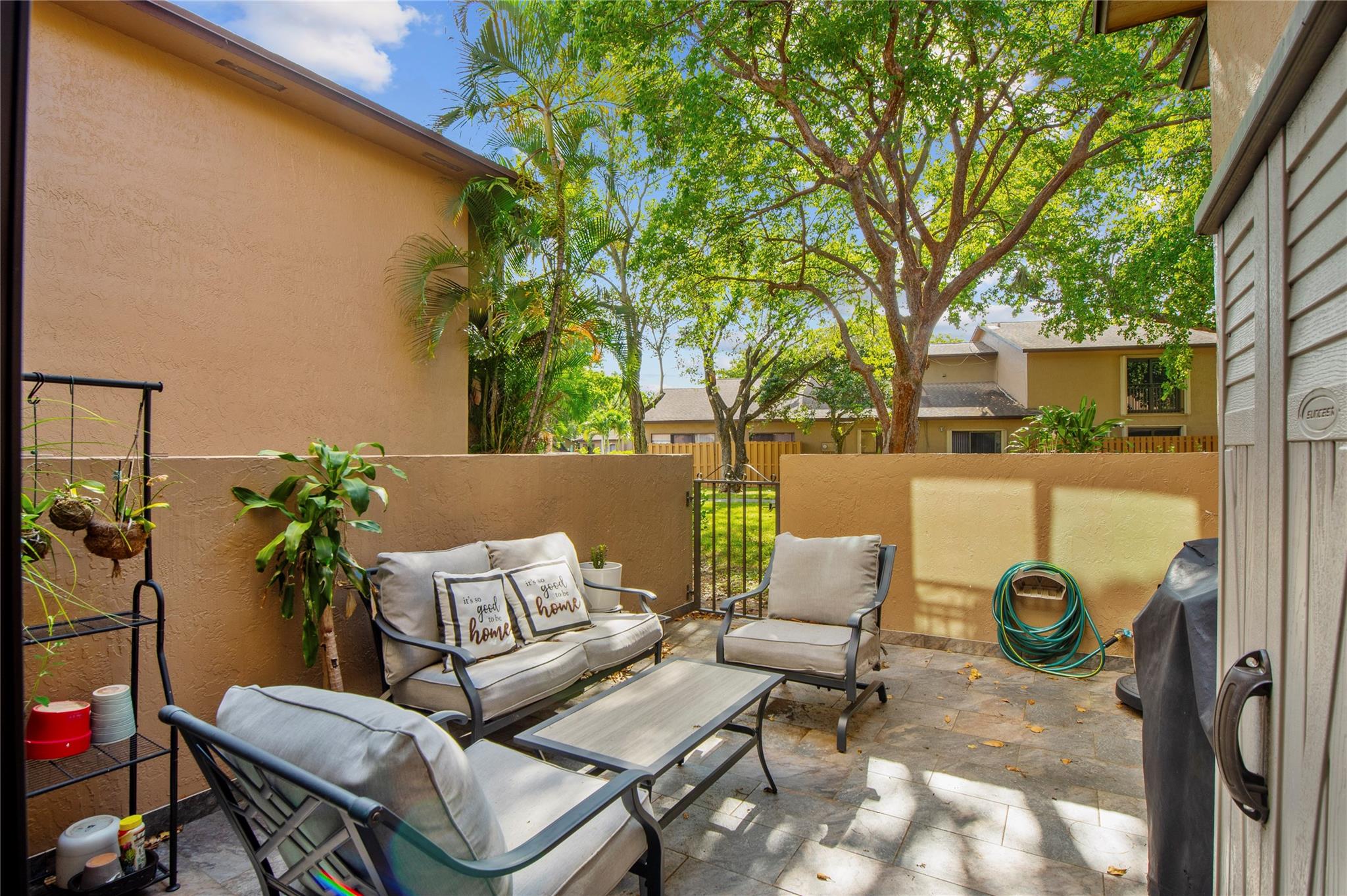 Move-in ready and fully remodeled, this spectacular 2 bed, 2.5 bath townhome features hurricane impact windows and doors for peace of mind. Enter through a gated front patio, perfect for relaxing mornings. Inside, enjoy a stunning and inviting open-concept kitchen, spacious living room, and a large private patio overlooking a serene garden. All tile floors, laundry & half bath downstairs. Upstairs offers two bedrooms, including a primary suite with walk-in closet and dual vanity bath. Resort-style amenities include 24hr guard gate, 2 pools, hot tub, gym, tennis courts & more. HOA includes cable and internet. No rental restrictions. Prime location near parks, highways, and The Promenade. Hurry before it is gone! This one won’t last!