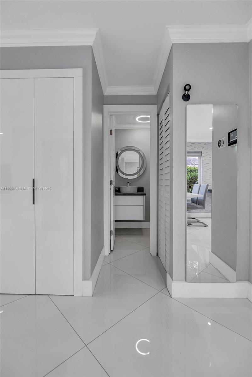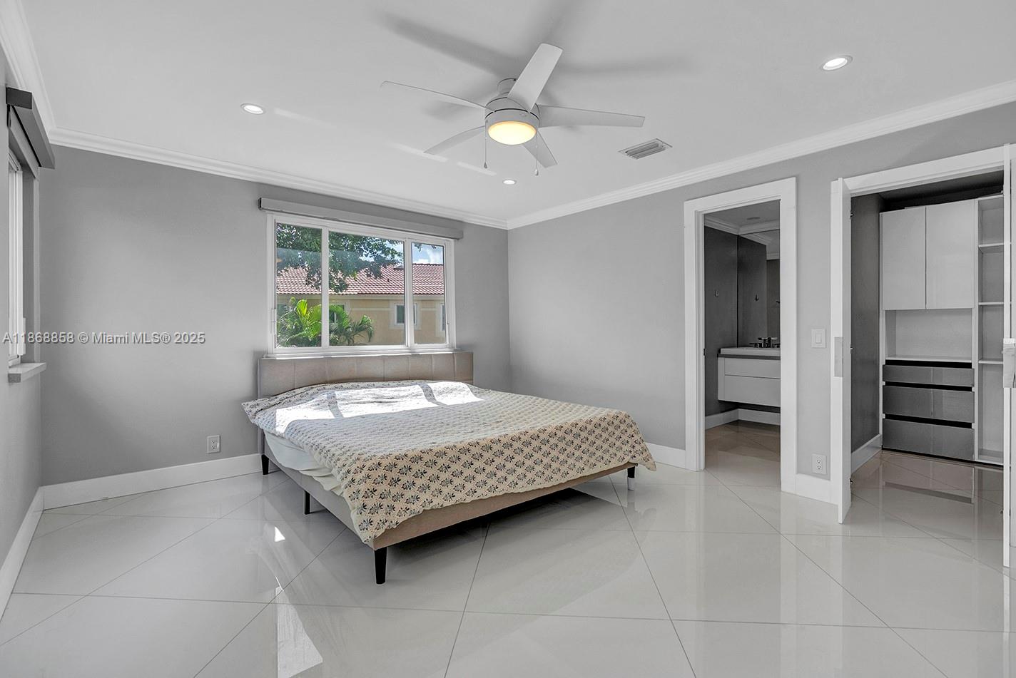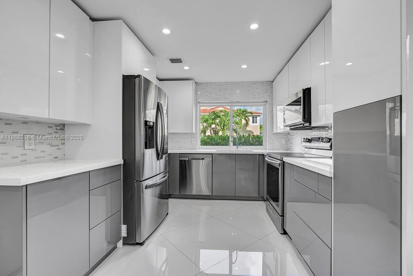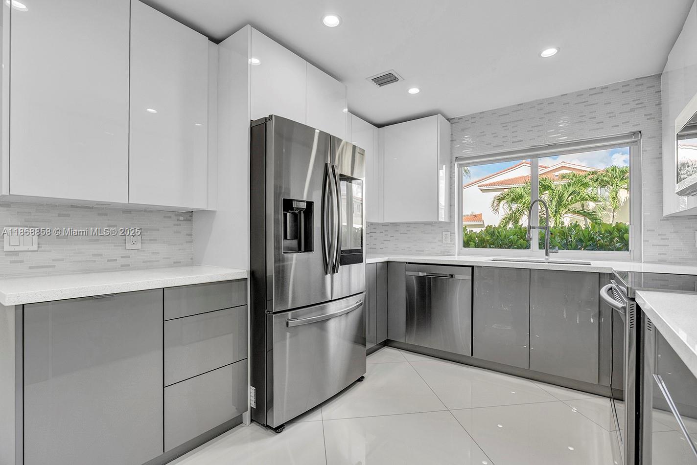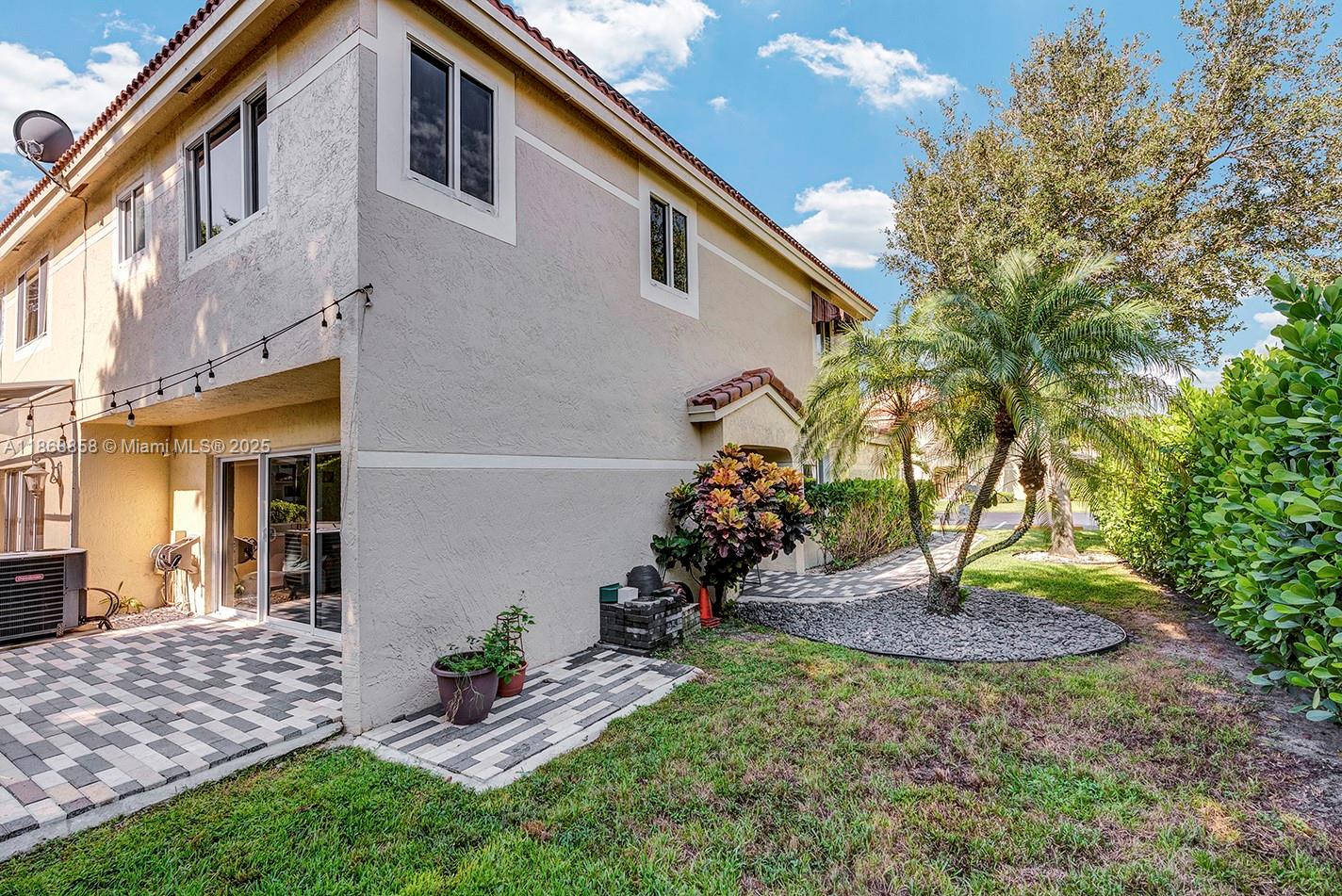 Impeccably maintained 3-bedroom, 2.5-bath home with 1-car garage, corner lot in Deer Creek. Spacious split floor plan, tile floors throughout, large master walk-in closet. Freshly painted interior. Upgrades include Smart Home system, hurricane-impact windows, crown molding, smart refrigerator, Tesla Supercharger in garage, solar panels (2021), new plumbing and pavements around the home, updated electrical, newer garage motor, A/C (2021), water heater (2020), roof (2016). Quiet corner lot, backyard with banana tree and quiet outdoor space. Pet friendly (2 pets up to 80 lbs, breed restrictions). Close to supermarkets, shops, highways, and less than 5 miles to the beach. Sold unfurnished, furnished photos for reference only. Brokers use Showing assist for showings.