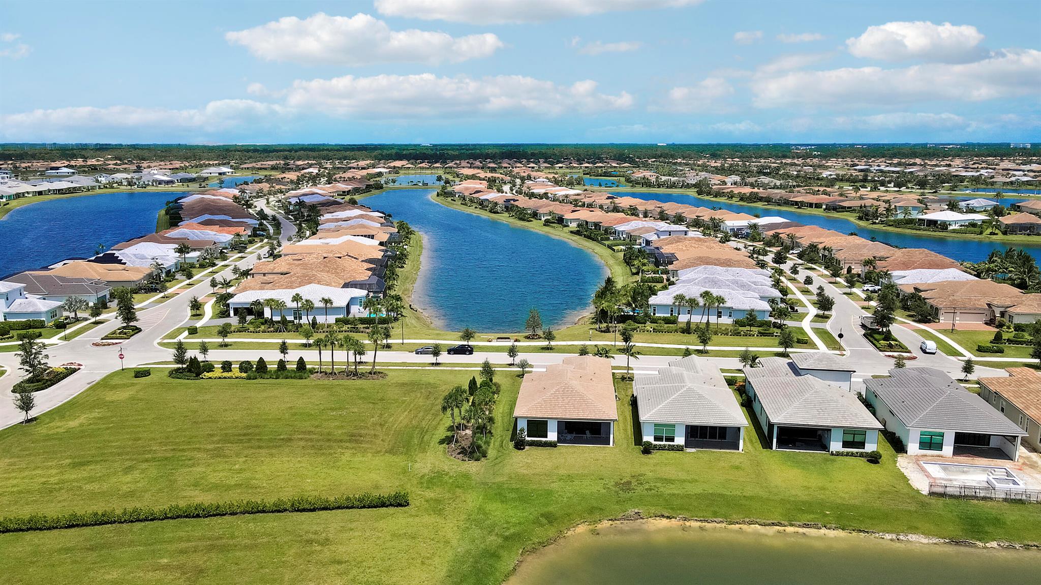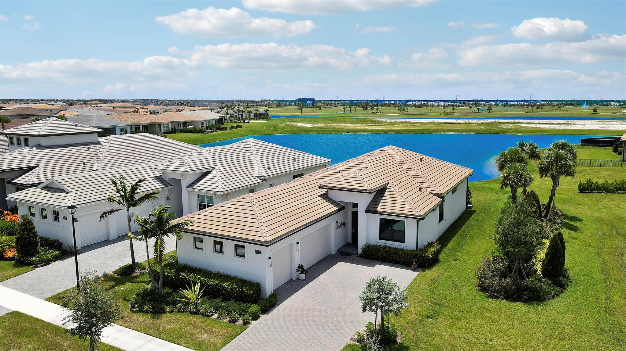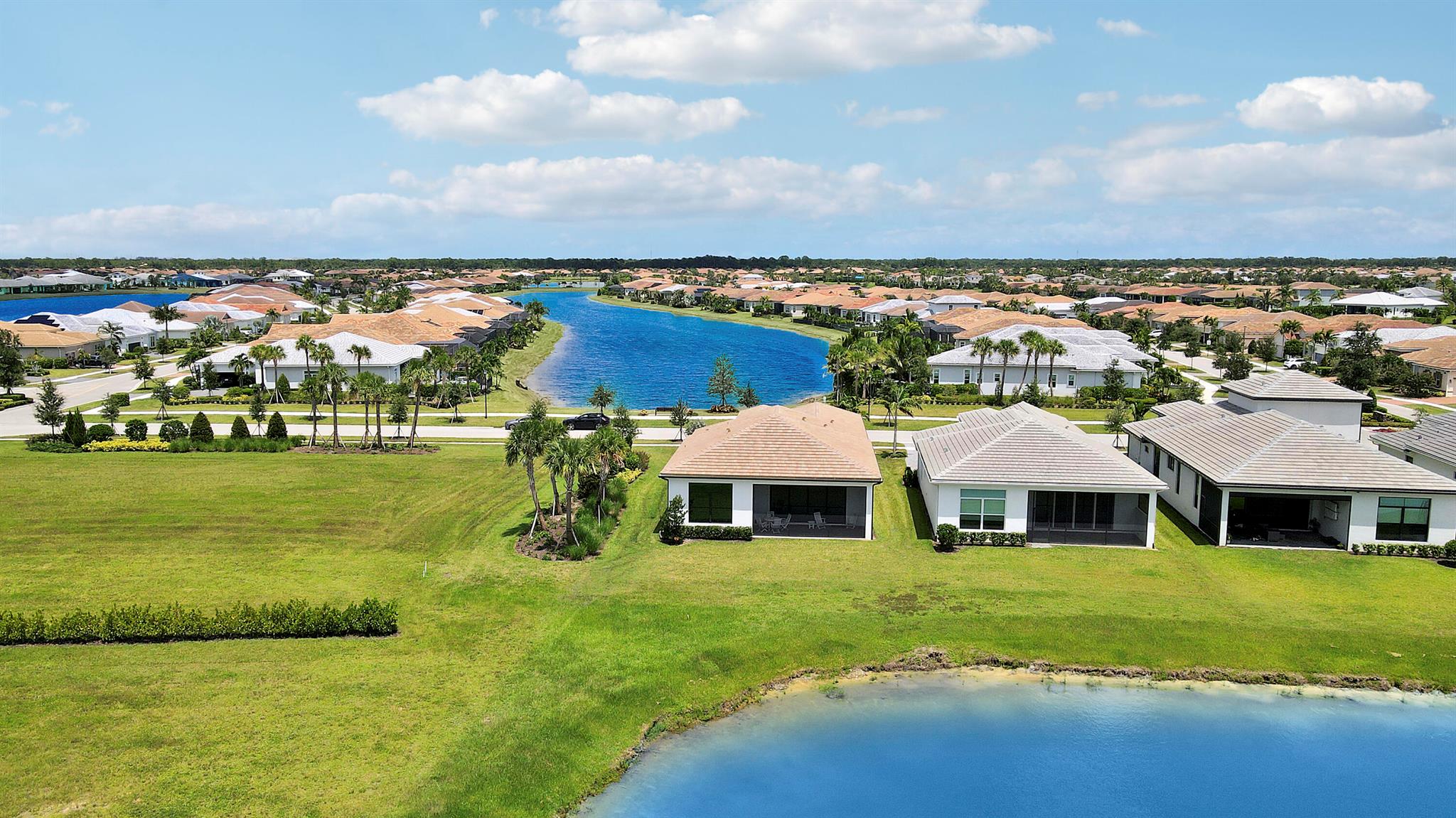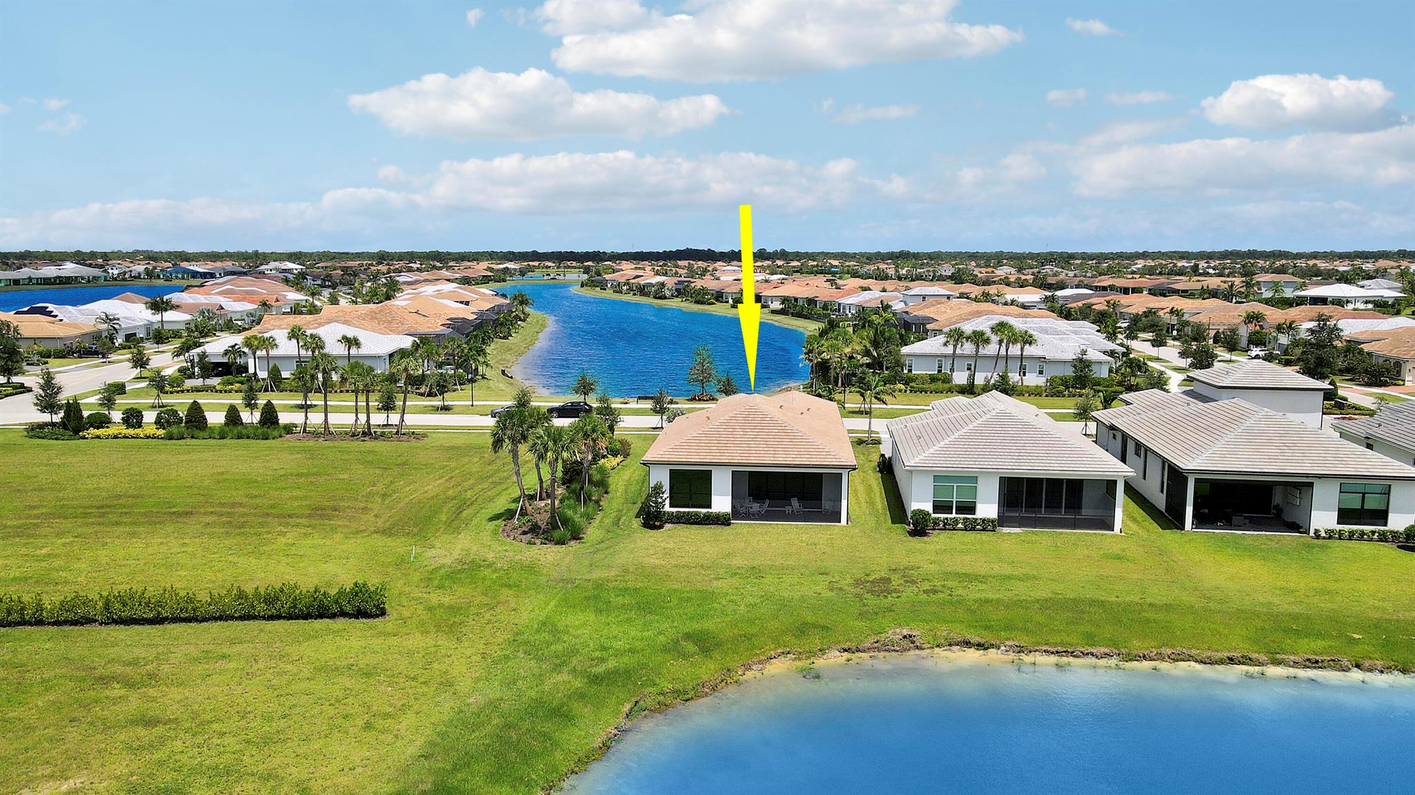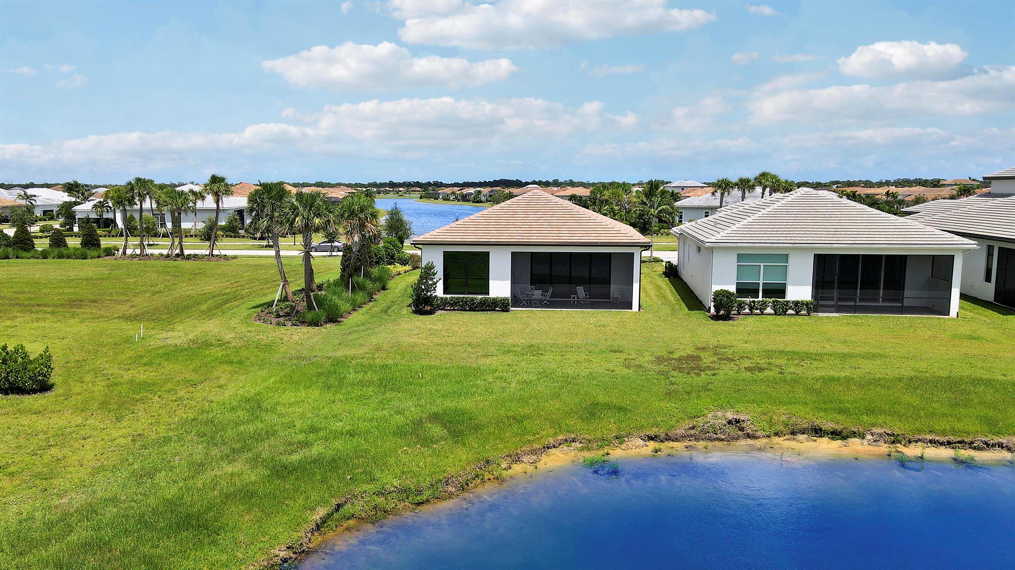 LAKESIDE BEAUTY! This 3BDRM+Den/3BA/3CG great-room style 'Lila' floor plan has so much to offer! Enjoy the soothing vibe as you enter the foyer of this lovely home w/ on trend color scheme, plenty of natural light, high ceilings, IMPACT GLASS windows & doors and tile flooring throughout main living areas! Kitchen has light gray cabinetry, granite counters, breakfast bar, SS appliances & walk-in pantry! Sliding doors open to the covered/screened patio ready to relax & enjoy your morning coffee all while taking in the serene lake views! Primary suite overlooks the lake, has beautiful ensuite w/ dual sinks, spacious tiled shower w/ glass door & huge walk-in closet! Two more bedrooms, one with private ensuite and the other with easy access to the guest bath! Den/flex space is off the hall!