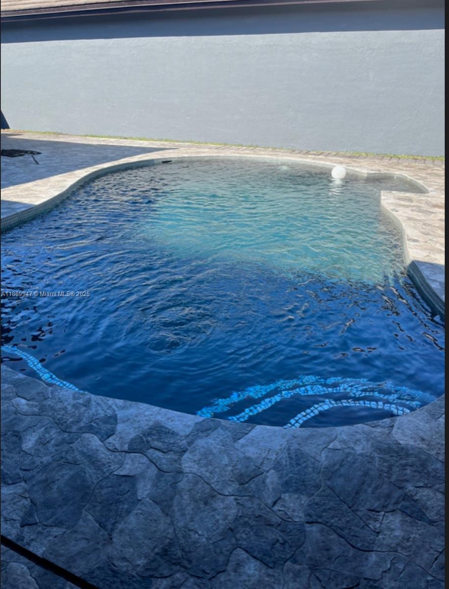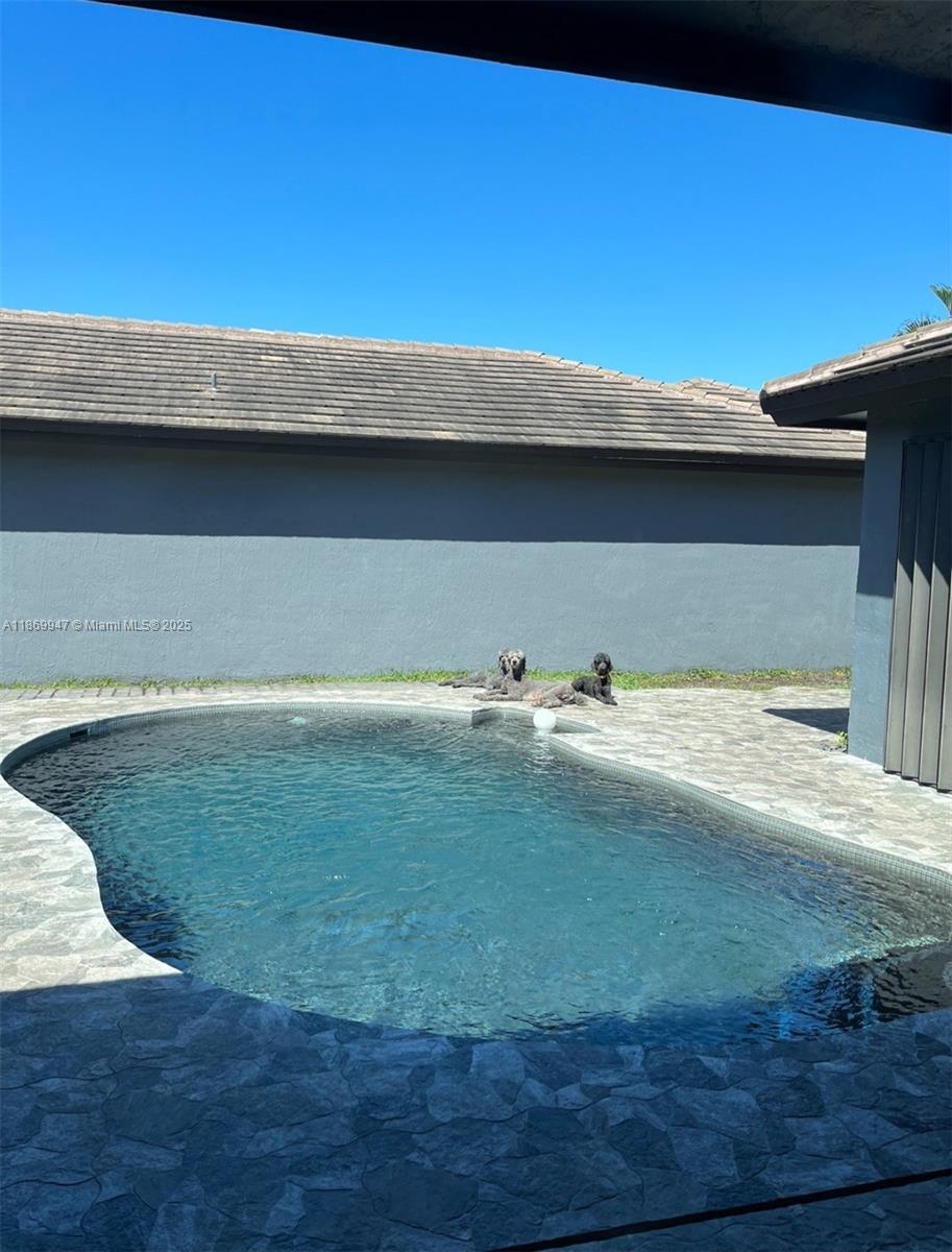 Beautiful one-story home with 3 spacious bedrooms and 3 full bathrooms. Features a 2020 roof and no HOA! Enjoy a free-form pool and fully paved backyard, perfect for entertaining. Filled with natural light through abundant windows. Includes a 2-car garage, new washer/dryer, and a stunning 2021 remodeled kitchen with large peninsula and stainless steel appliances. Tankless water heater, accordion shutters for hurricane protection, and multiple living areas—foyer, family, dining, and living rooms. Master bathroom offers an oversized shower for ultimate comfort. Move-in ready! Great location close to good schools ,shopping, banks and much more ! No flood zone