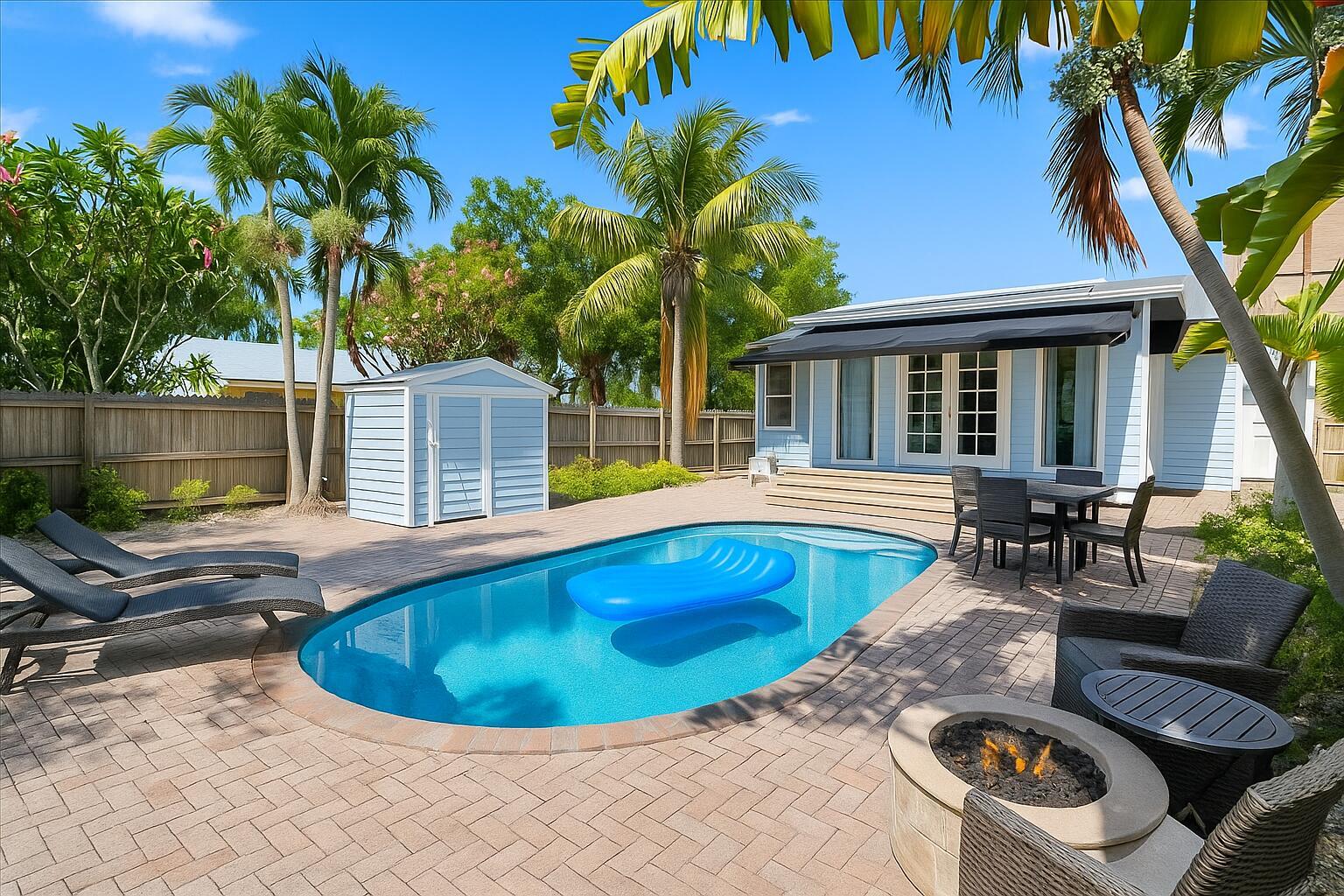 LOCATION, LOCATION, LOCATION! Welcome to 119 S Ocean Breeze, a spectacular Key West-style home in the heart of Lake Worth Beach--just 3 blocks from the Intracoastal and about a mile to the sandy shores of the Atlantic! This charming 2-bedroom, 1-bath, private pool home offers the perfect blend of coastal charm and modern upgrades. Step inside to find a completely remodeled interior, including a brand-new kitchen with soft-close cabinets, stainless steel appliances, and updated bath. The home boasts new impact windows (2025), New exterior french doors, metal roof, updated electrical panel, fresh paint inside and out, and new vinyl flooring throughout. Relax in your private extra large fenced yard oasis featuring lush tropical landscaping, oversized shed, paver patio, and your very own