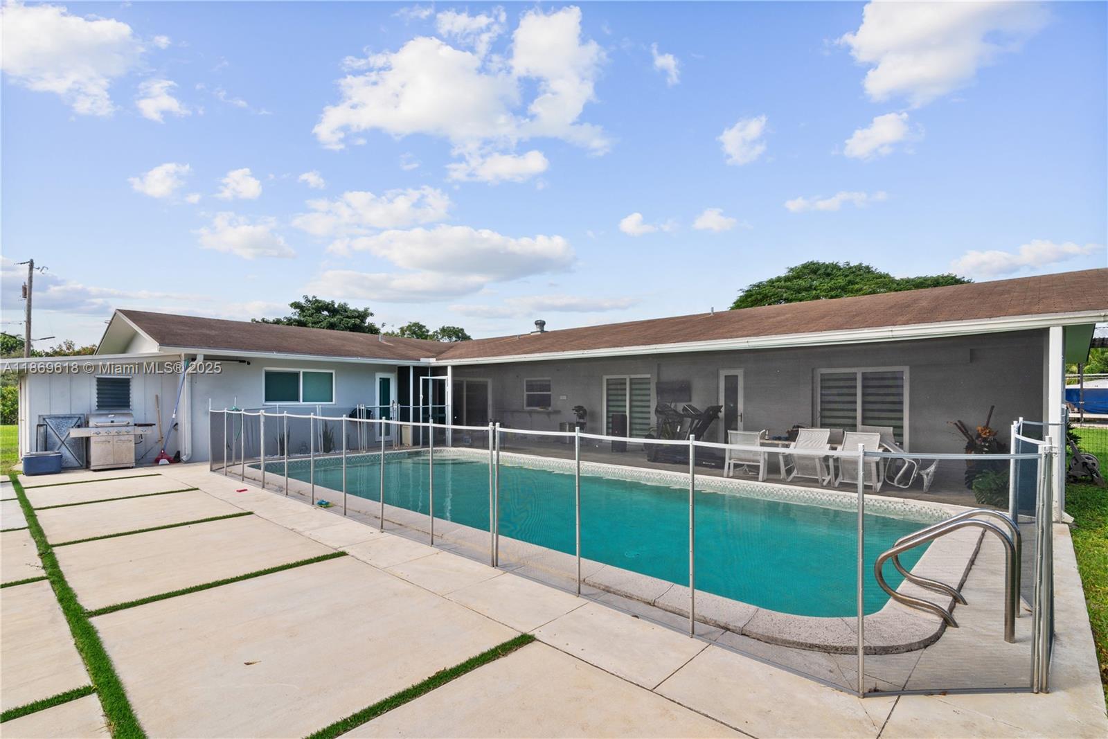 Beautiful property on a quiet dead-end street, on a ~2.4-acre lot with a pool. Hurricane-impact windows and doors, 2 kitchens, laundry room, and a screened porch with a baby fence around the pool. Propane whole-house generator with an approximate 21-day runtime. Renovated bathrooms, floors, LED lighting, and main line. Also includes a surrounding area with a corner for fruit trees and animals: fruit trees (mango, avocado, 70 lychee trees, peach, starfruit, mulberry, níspero, banana) and a chicken coop. space to park a boat and 2 agricultural sheds. Everything you need for family living.
