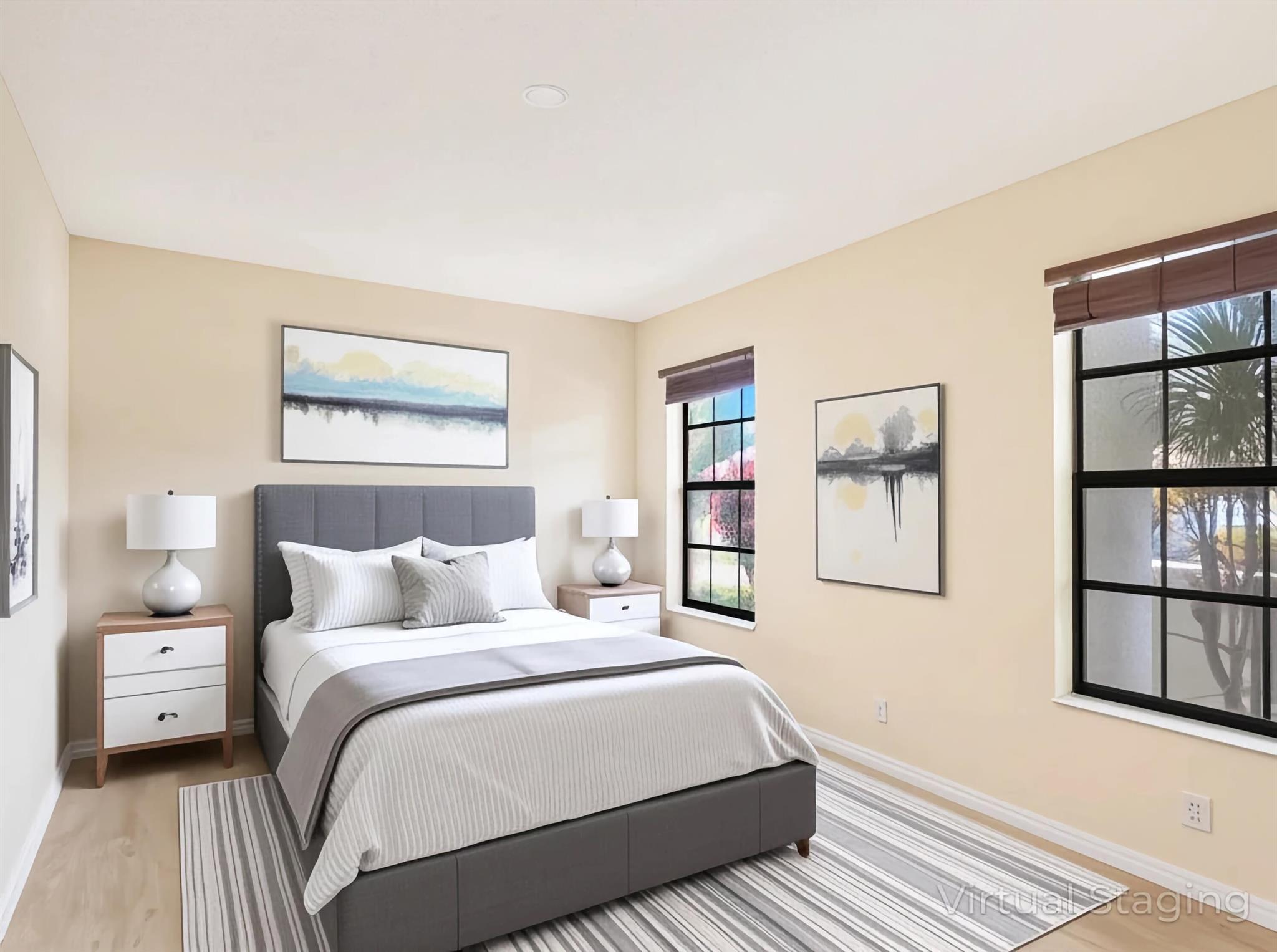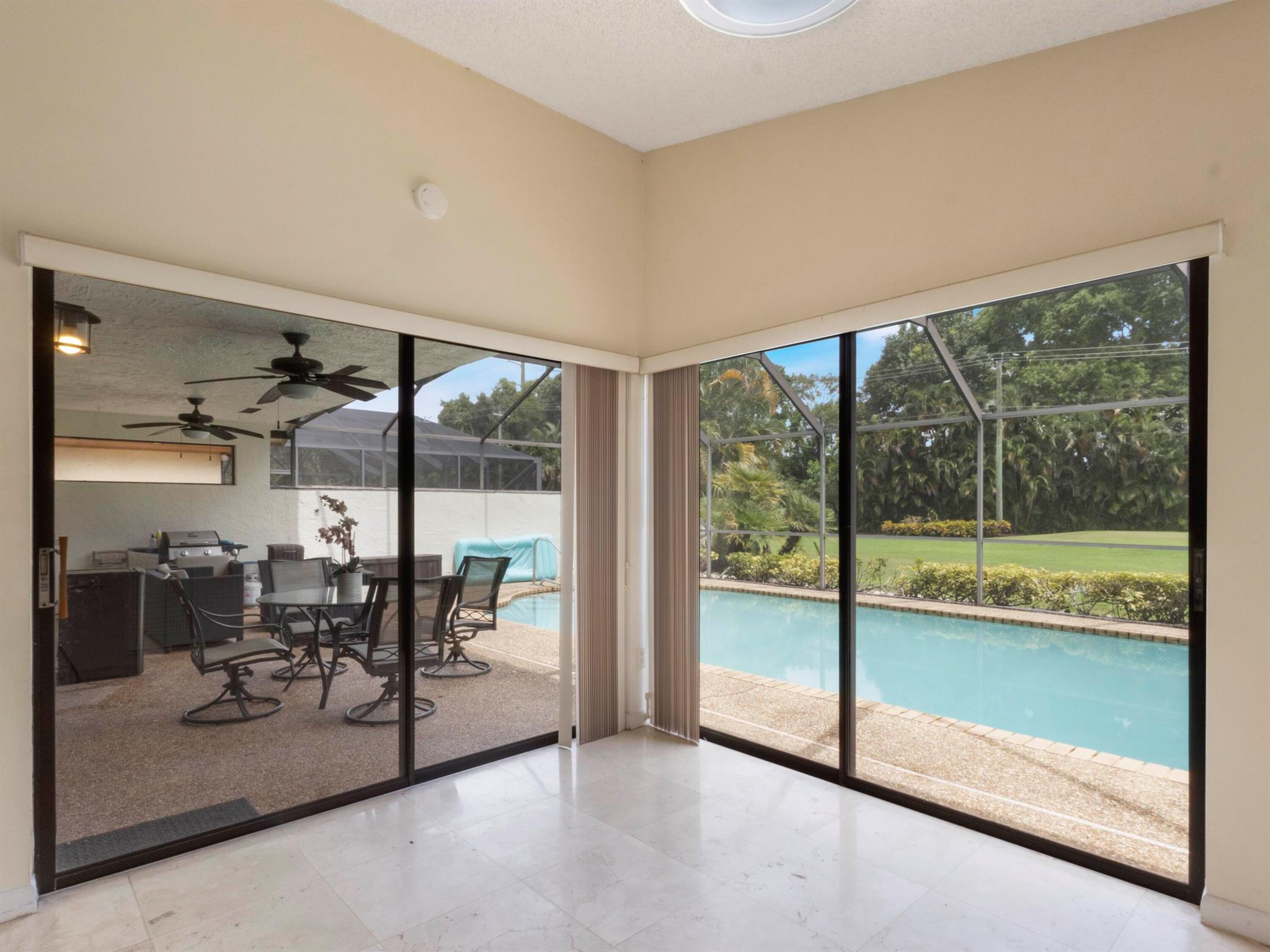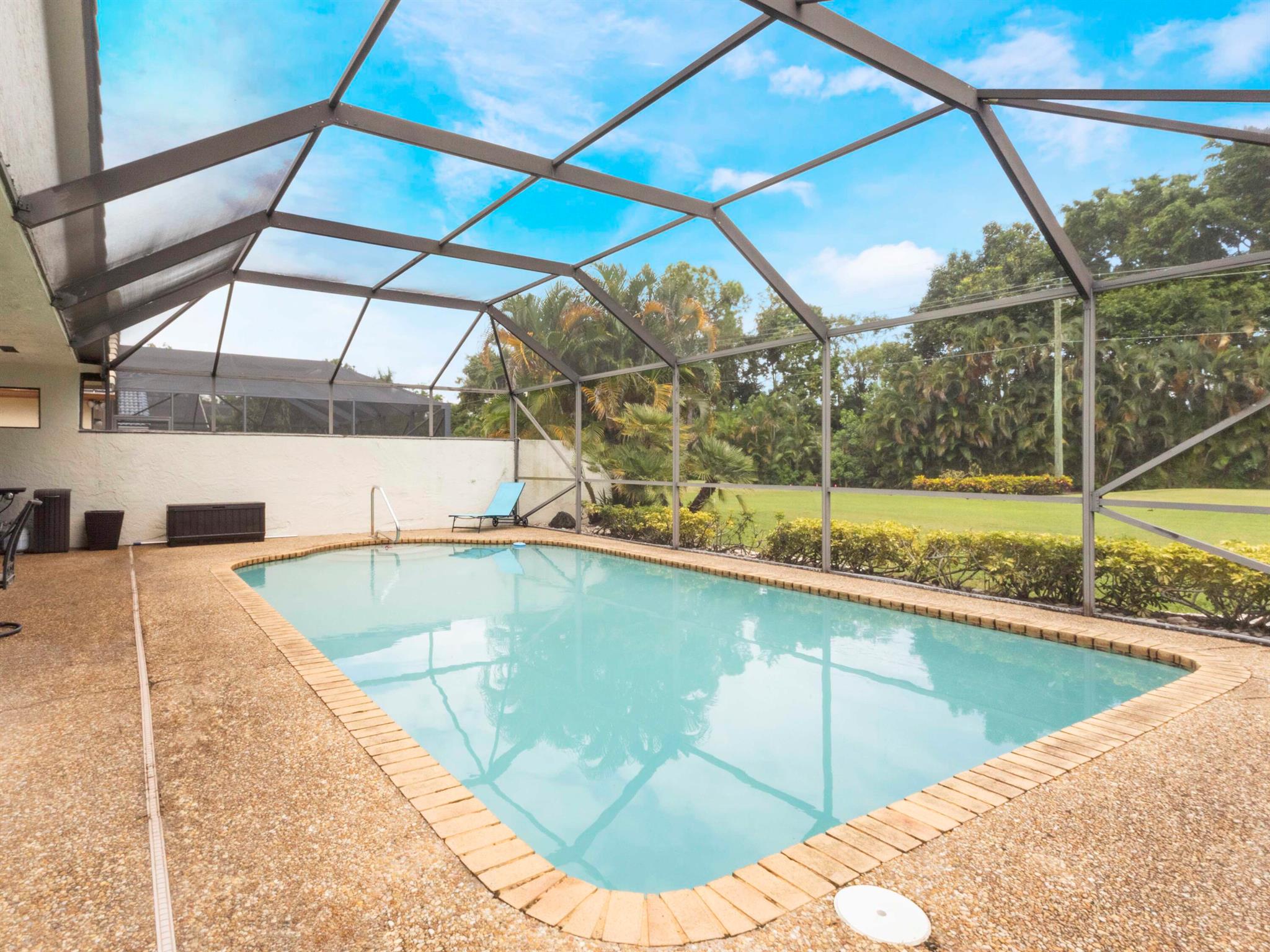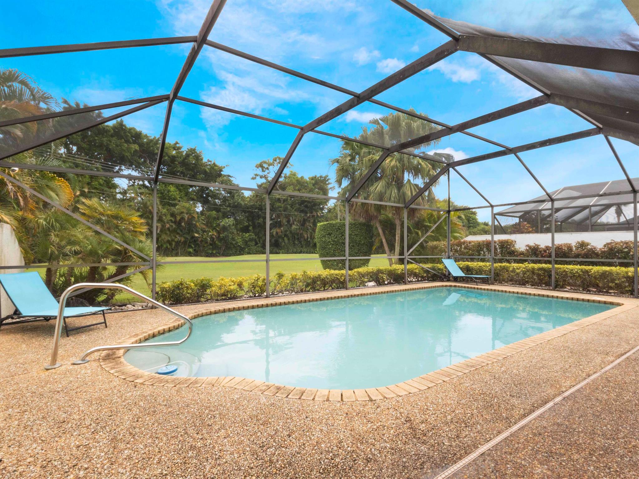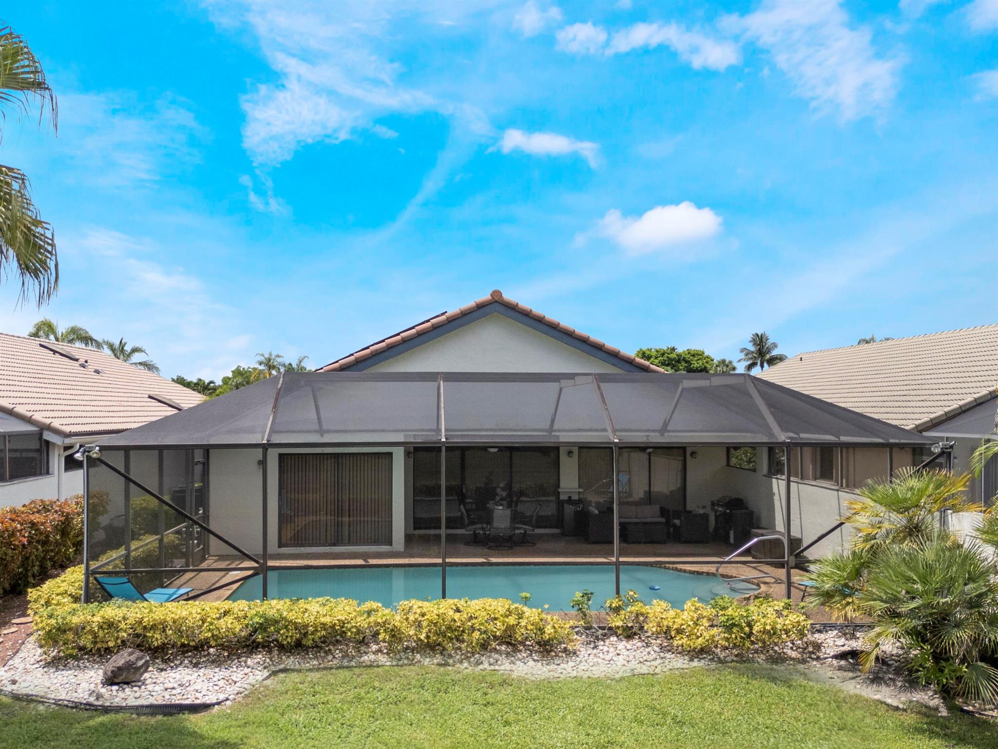Enjoy the Boca Woods lifestyle in this beautiful Pinewood model, perfectly situated on a private cul-de-sac. This spacious single level home features 3 bedrooms, 2 full baths, a screened patio, pool, and a 2-car garage. The open floor plan offers plenty of room to entertain, while the primary suite includes a walk-in closet, large bath, and serene pool and golf course views. It has solar panels for added efficiency and AC has recently been replaced. Mandatory Golf Membership must be purchased 10 days prior to closing ($120,000). 2 championship 18 hole golf courses, Tennis Courts, Pool, Pickle ball, Gym and Spa plus valet parking along with fine dining and more.LOWEST-PRICED POOL HOME AVAILABLE IN BOCA WOODS! DON'T MISS THIS OPPORTUNITY!