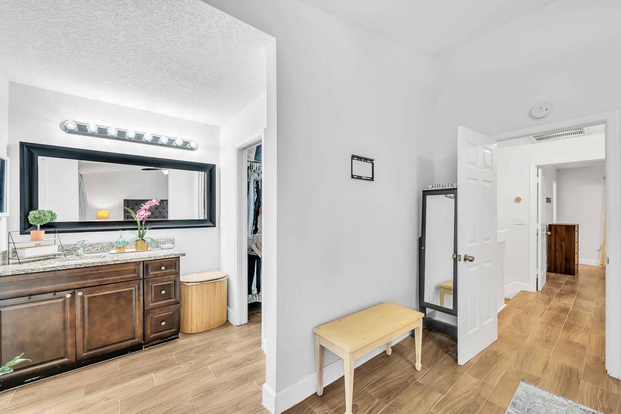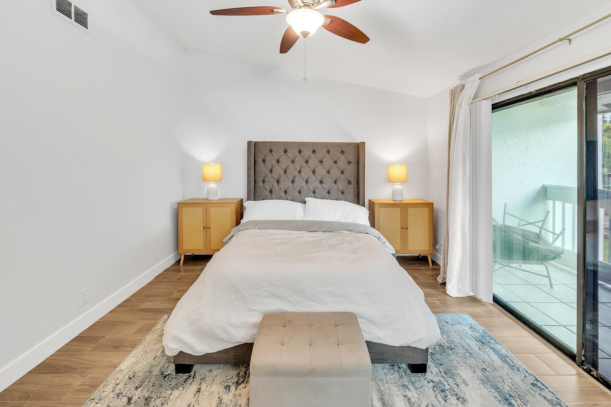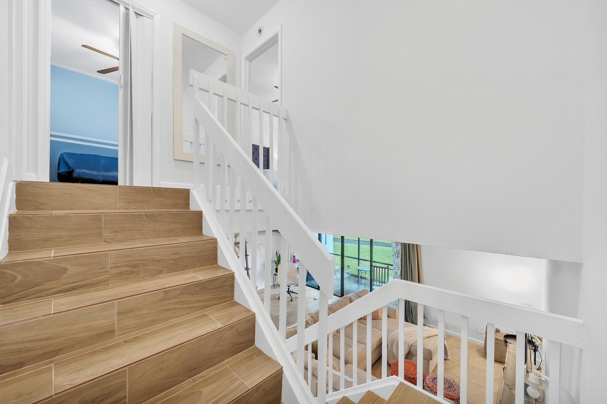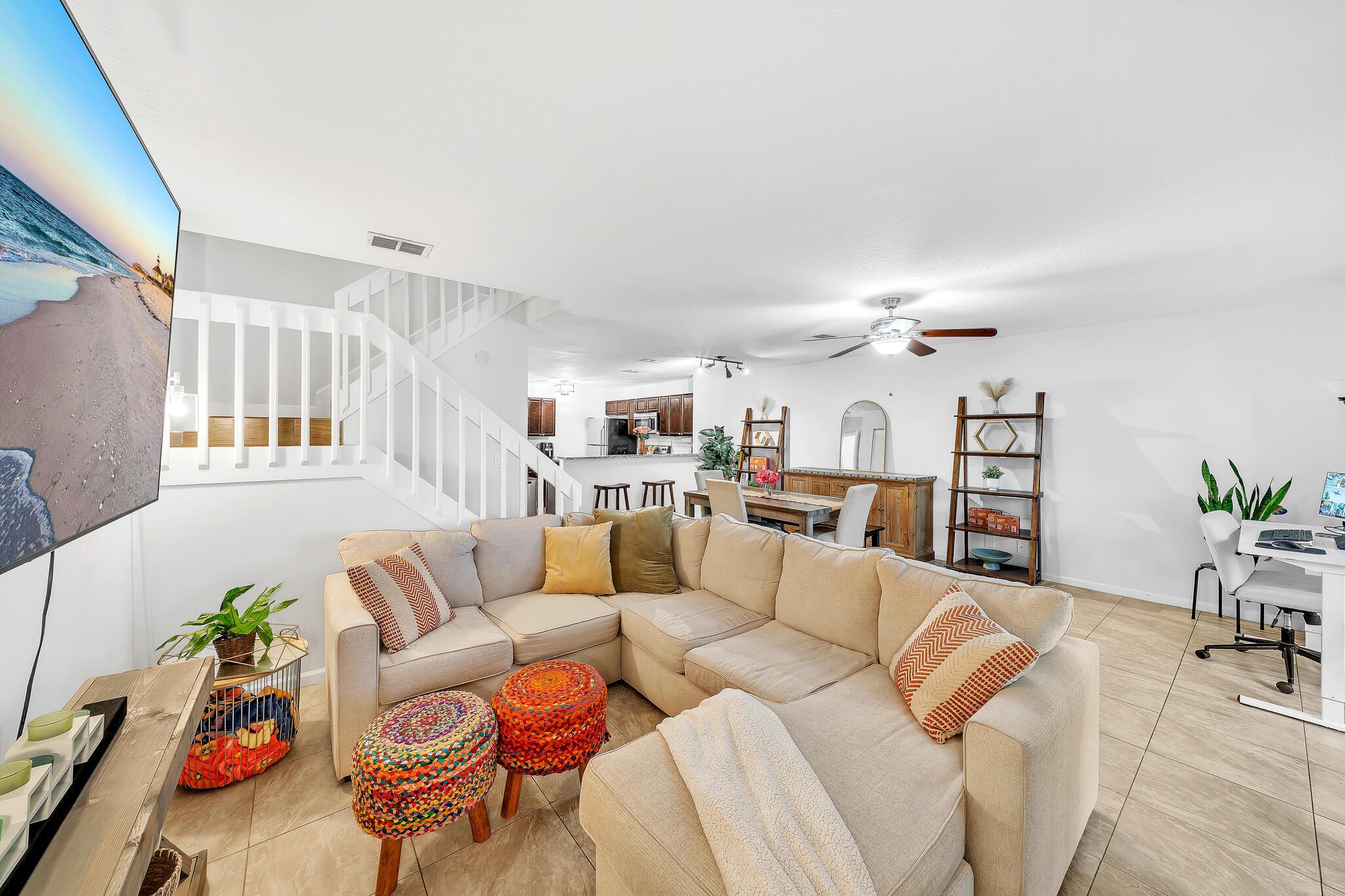 Welcome to this spacious 3-bedroom, 2.5-bathroom townhouse with 3rd room used as a den/office, perfectly situated in the desirable Woodbridge Lakes community of West Palm Beach. This well-designed home features an inviting open floor plan with abundant natural light, a den that can serve as an office or guest space, and a serene lakefront view that provides a tranquil backdrop for everyday living. Tile floors were installed throughout 2022. The primary suite offers generous closet space and an en-suite bathroom for added privacy, while the second bedroom is well-sized for family, guests, or flex space. The screened-in patio overlooking the lake is ideal for relaxing, entertaining, or simply enjoying the peaceful Florida lifestyle. Woodbridge Lakes is a pet-friendly community featuring