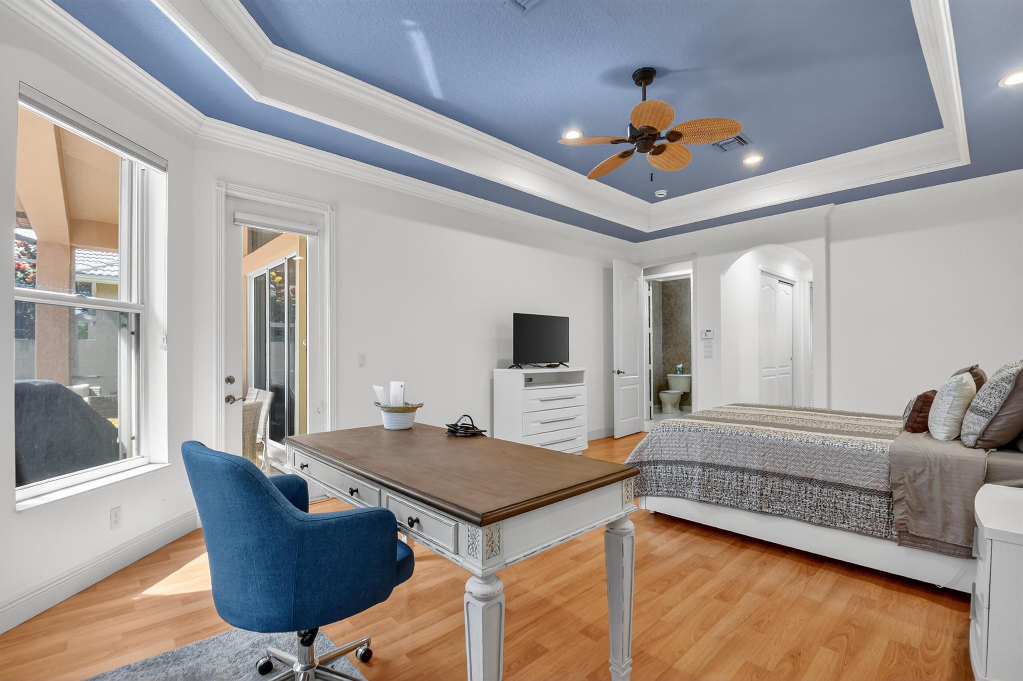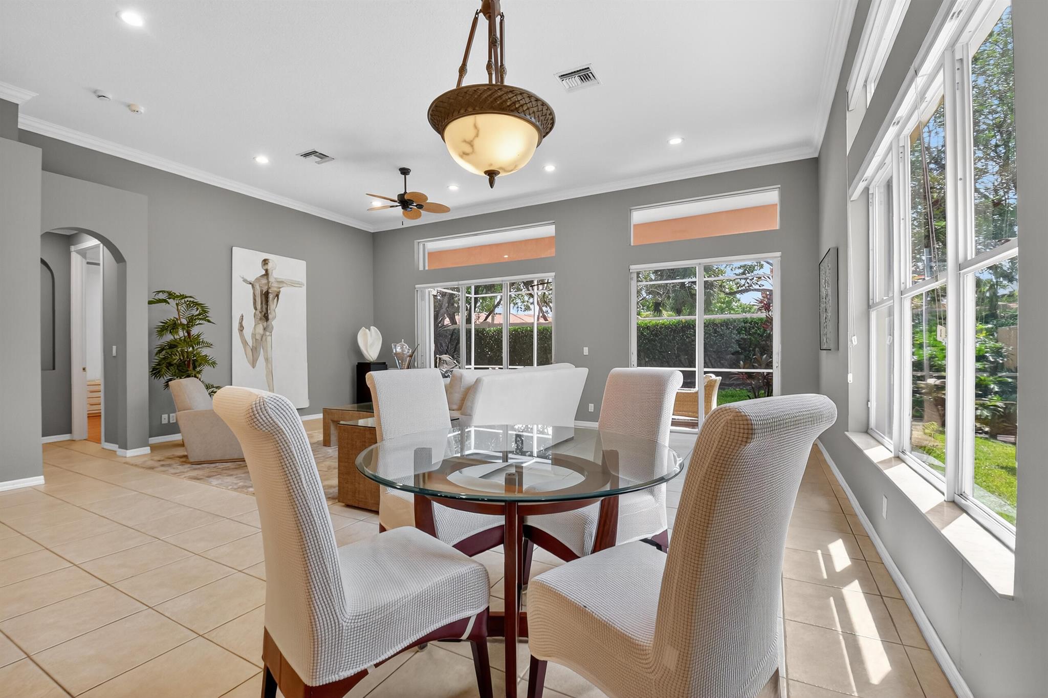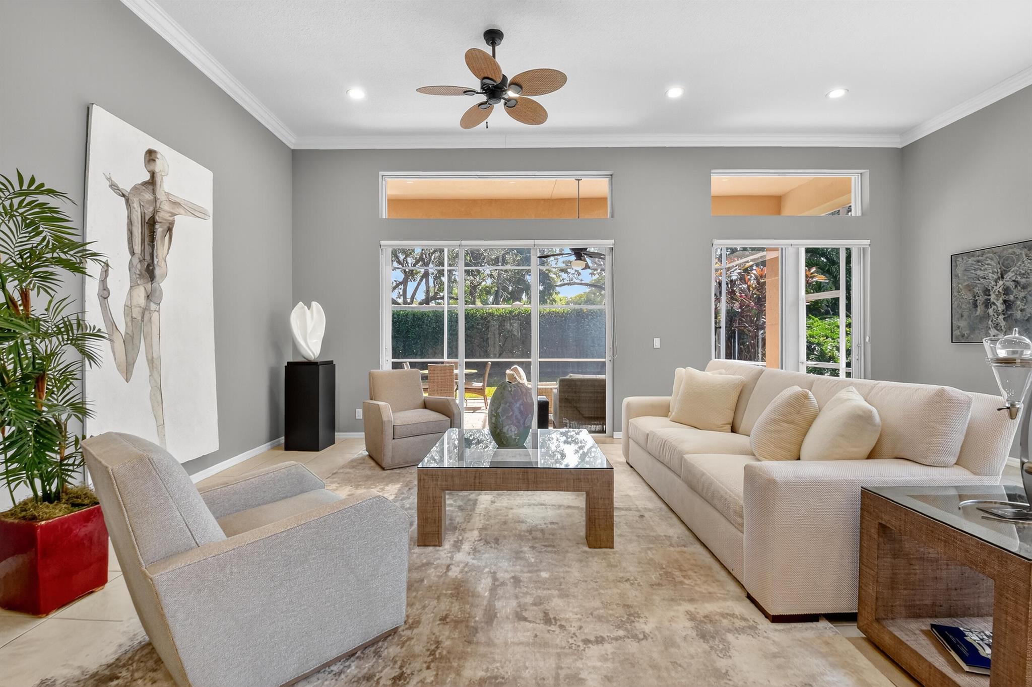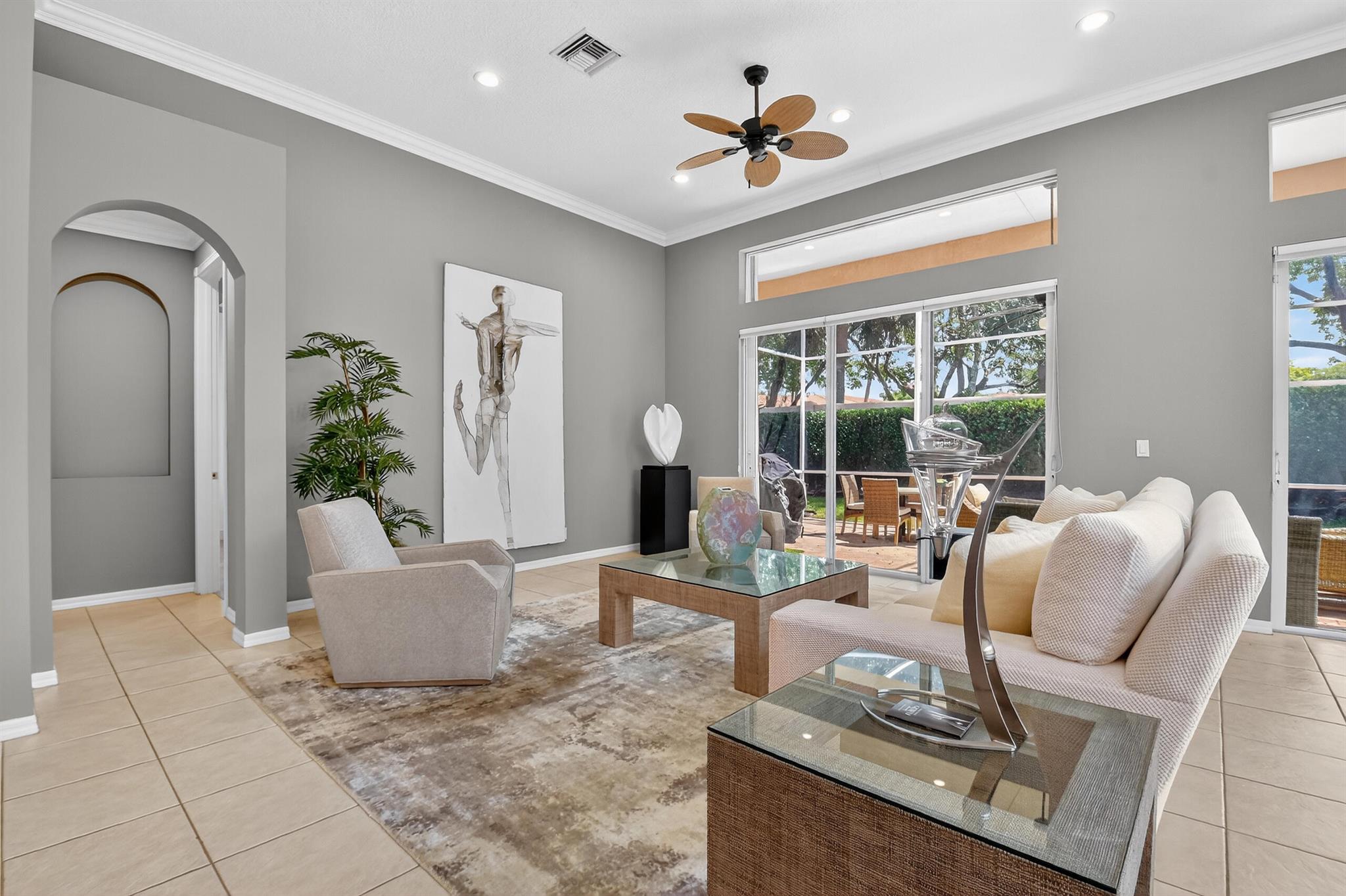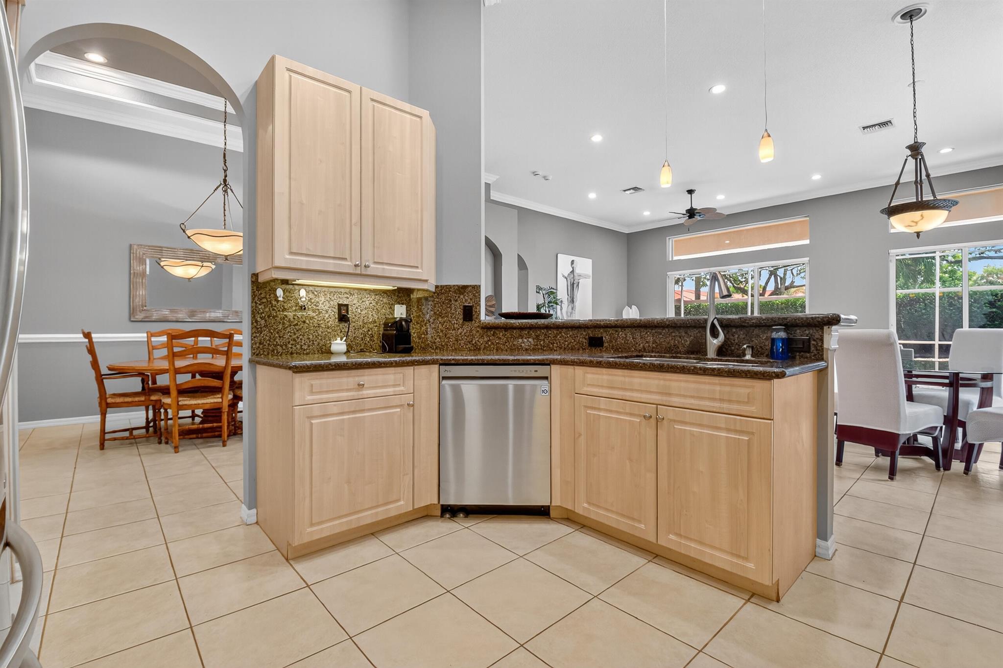 Welcome to one of the most beautiful and best-valued homes in the desirable 55+ gated community of Mizner Falls. This elegantly maintained 3-bedroom, 2.5-bath single-story residence invites you through grand double glass doors into a bright, open-concept layout featuring soaring ceilings, crown molding, and timeless neutral finishes. The kitchen shines with granite countertops, a stylish backsplash, and stainless steel appliances--perfect for both everyday living and effortless entertaining.