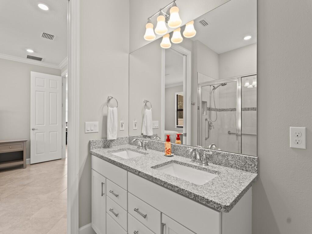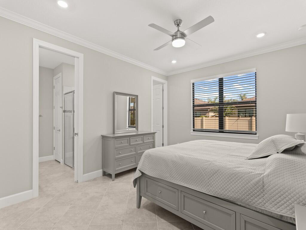 Vacation everyday as you enter this active community just a 10 min drive to the beach! Embrace the ease of new construction upon approaching this 2022 built CBS modern home on a corner lot, designed with comfort and functionality in mind. Delight your eyes as you step into the foyer to an inviting open concept feat 4Bds, 3 Full baths and a huge covered/screened extended Lanai. With a private en-suite for guest this charming home offers Impact windows, 8ft doors, Quartz countertops, kitchen Island, Diagonal Tile, microwave drawer, range hood, crown molding, 42 inch cabinets, epoxy garage plus more. Miles of New roads and sidewalks just outside the community to enjoy long walks, biking, jogging and more. Less than 5 mis to Publix plaza and restaurants. Immaculate condition Move-In ready!
