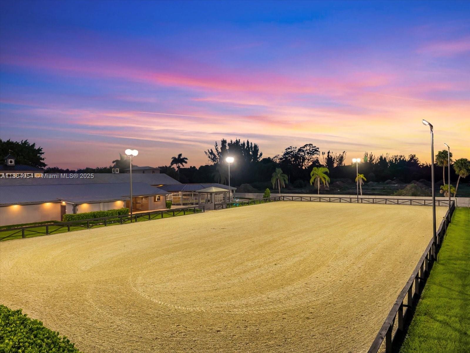 A world-class equestrian estate in Davie combining modern elegance with state-of-the-art facilities. The main residence offers 2 bedrooms, 2 baths, and a private clubhouse with bar. Inspired by European design, the property features Broward’s largest covered arena with isolation system, 5-star rated indoor and outdoor riding arenas, dressage mirrors, hot walker, treadmill, and extra-large paddocks with shaded run-ins. Forty Rower-Rube stalls connect to a full underground drainage system, ensuring no flooding. All buildings are concrete, including a luxury two-story residence and clubhouse, three-story staff housing, with direct access to Davie’s trail system and Vista View Park.