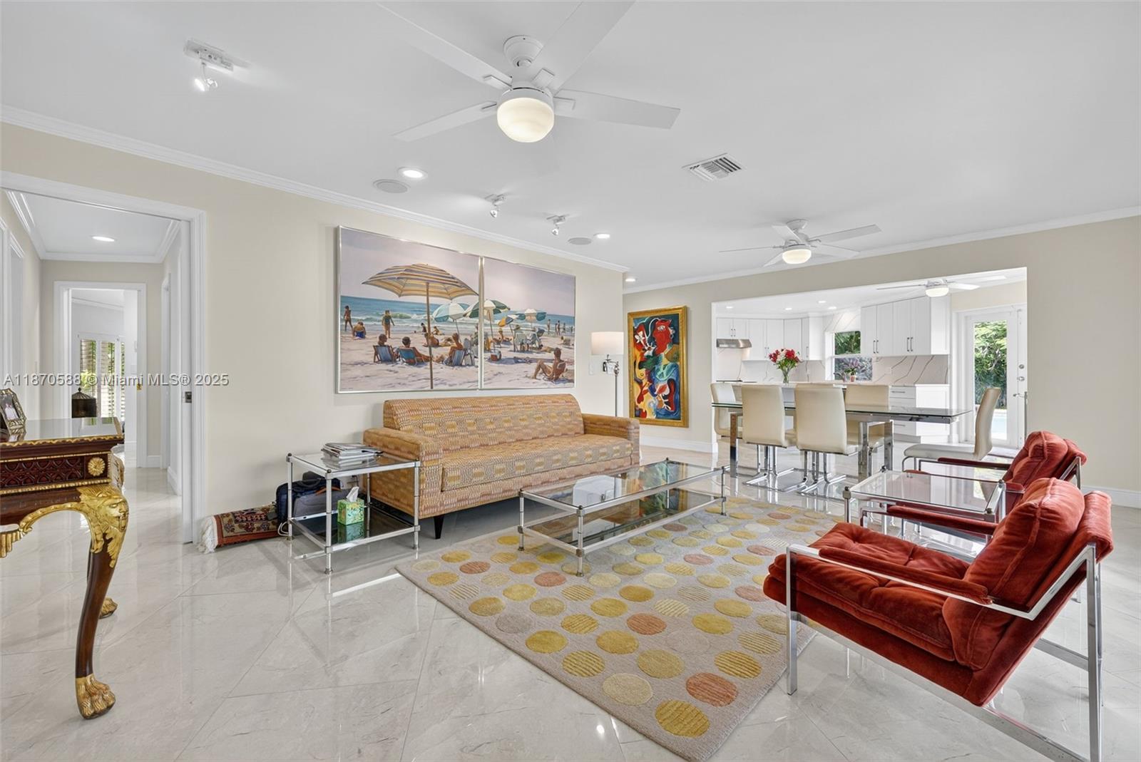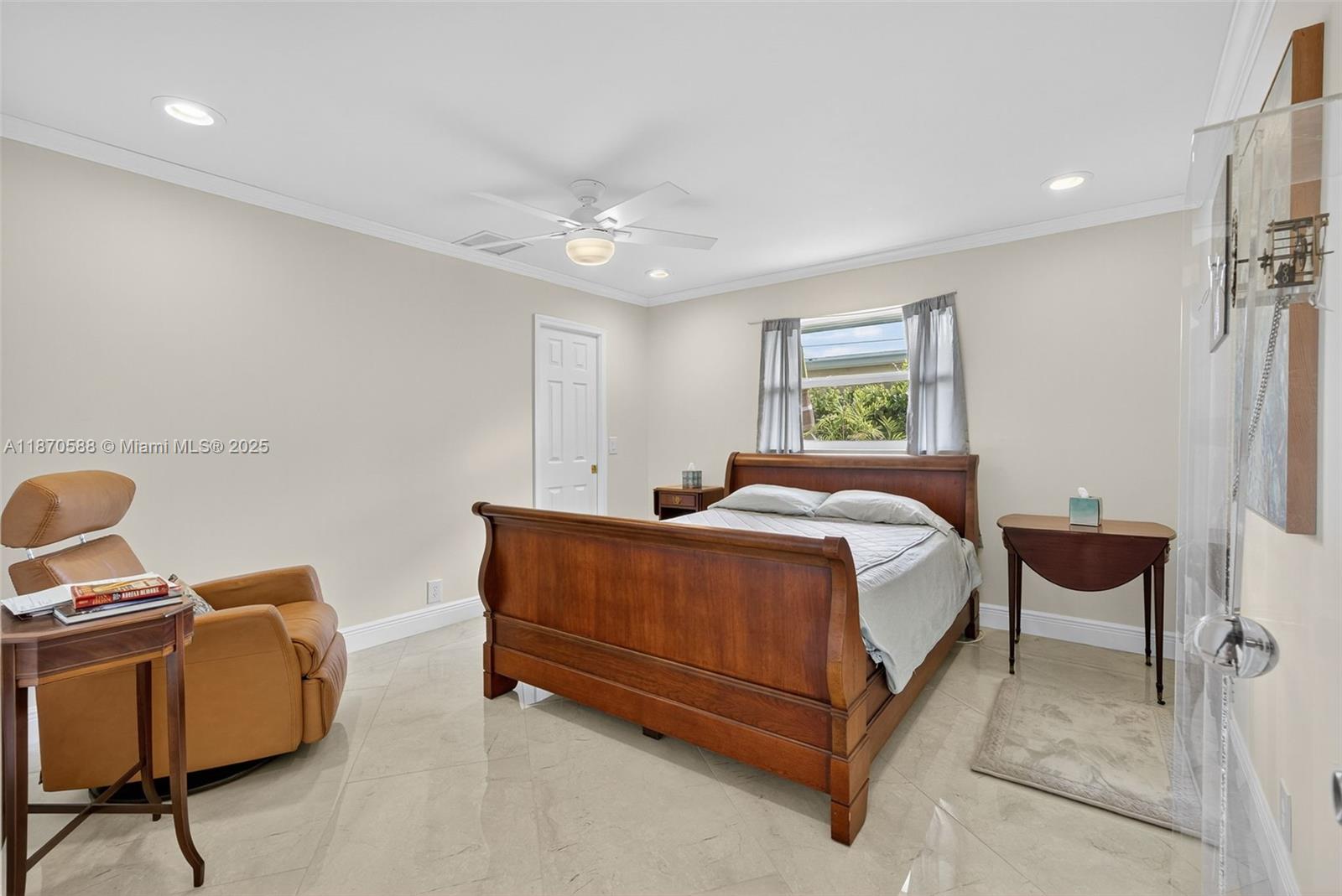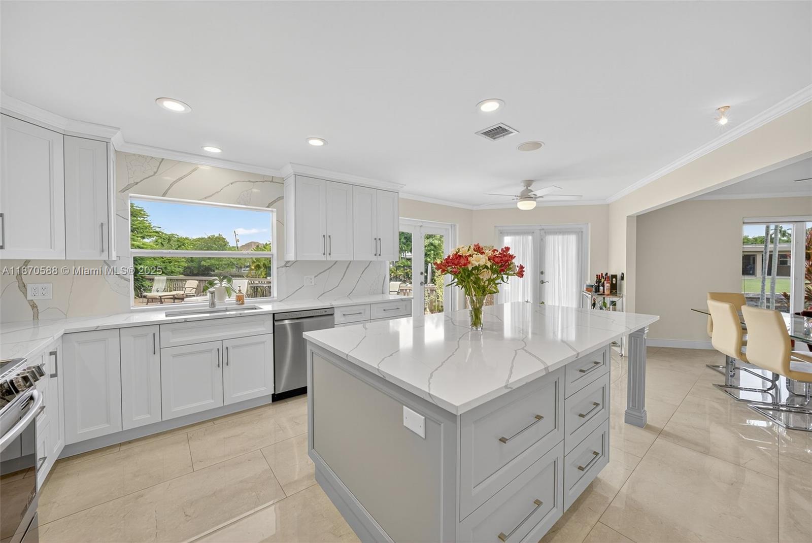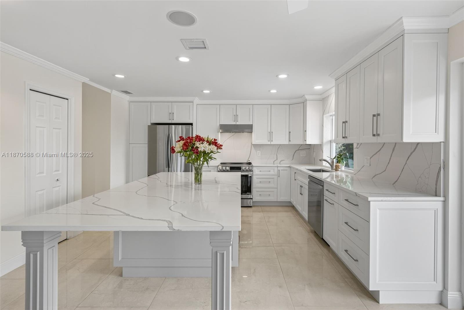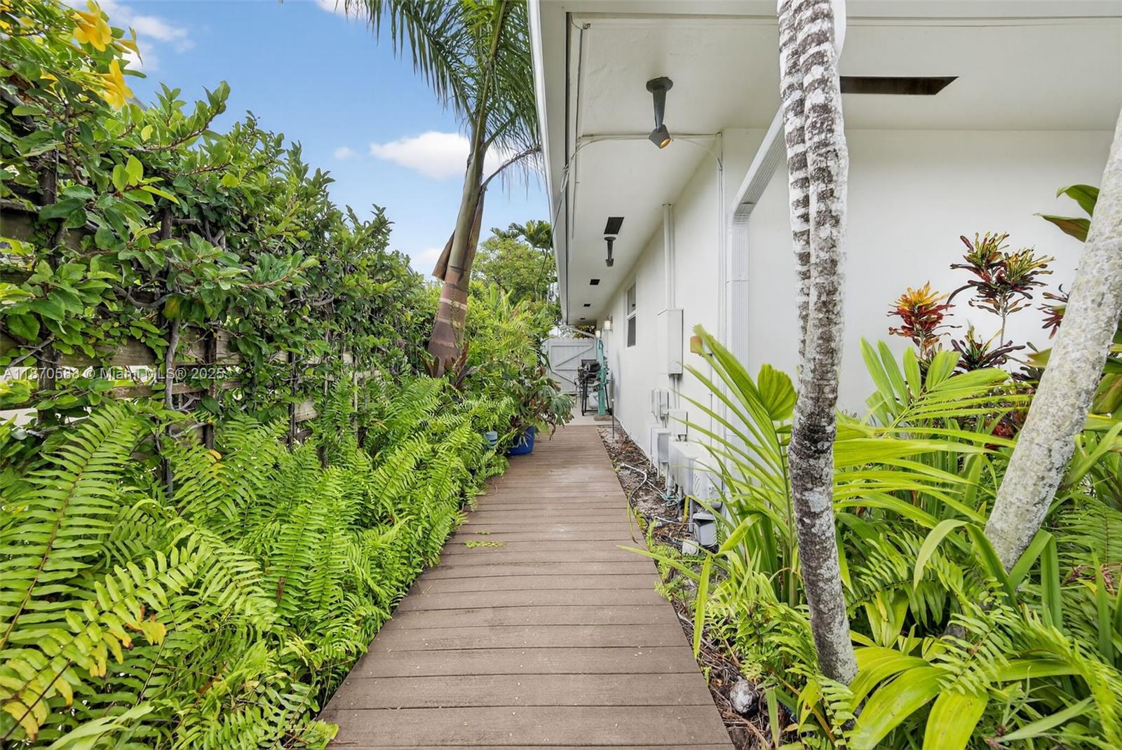Completely renovated 3-bedroom, 2-bathroom waterfront home on a quiet cul-de-sac with a spacious corner lot. Enjoy 140 feet of water frontage with a 60-foot dock—100 feet on one side and 40 feet on the other—perfect for water enthusiasts. This move-in ready home features a brand-new kitchen with modern appliances, updated bathrooms, new flooring, and a new roof. All impact windows and doors provide peace of mind. The open layout offers water views from the kitchen, family room, and primary suite. Step outside to a large yard with pool, deck, and expansive seating areas designed for entertaining or relaxing by the water. On a 10,000 Sqft lot filled with lush landscaping which completes this rare waterfront gem. Location is near Federal Highway with access to exquisite shopping and dining.