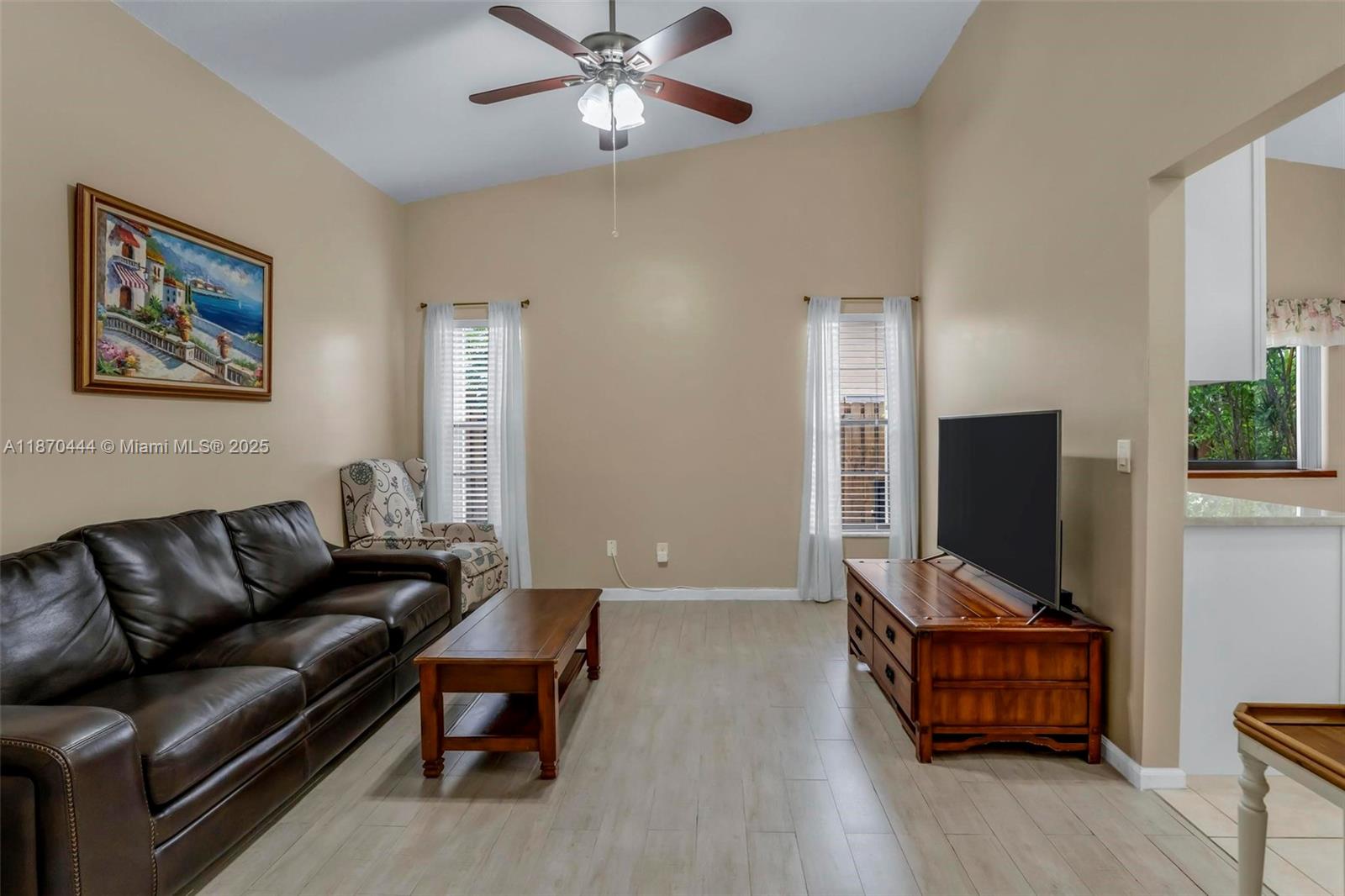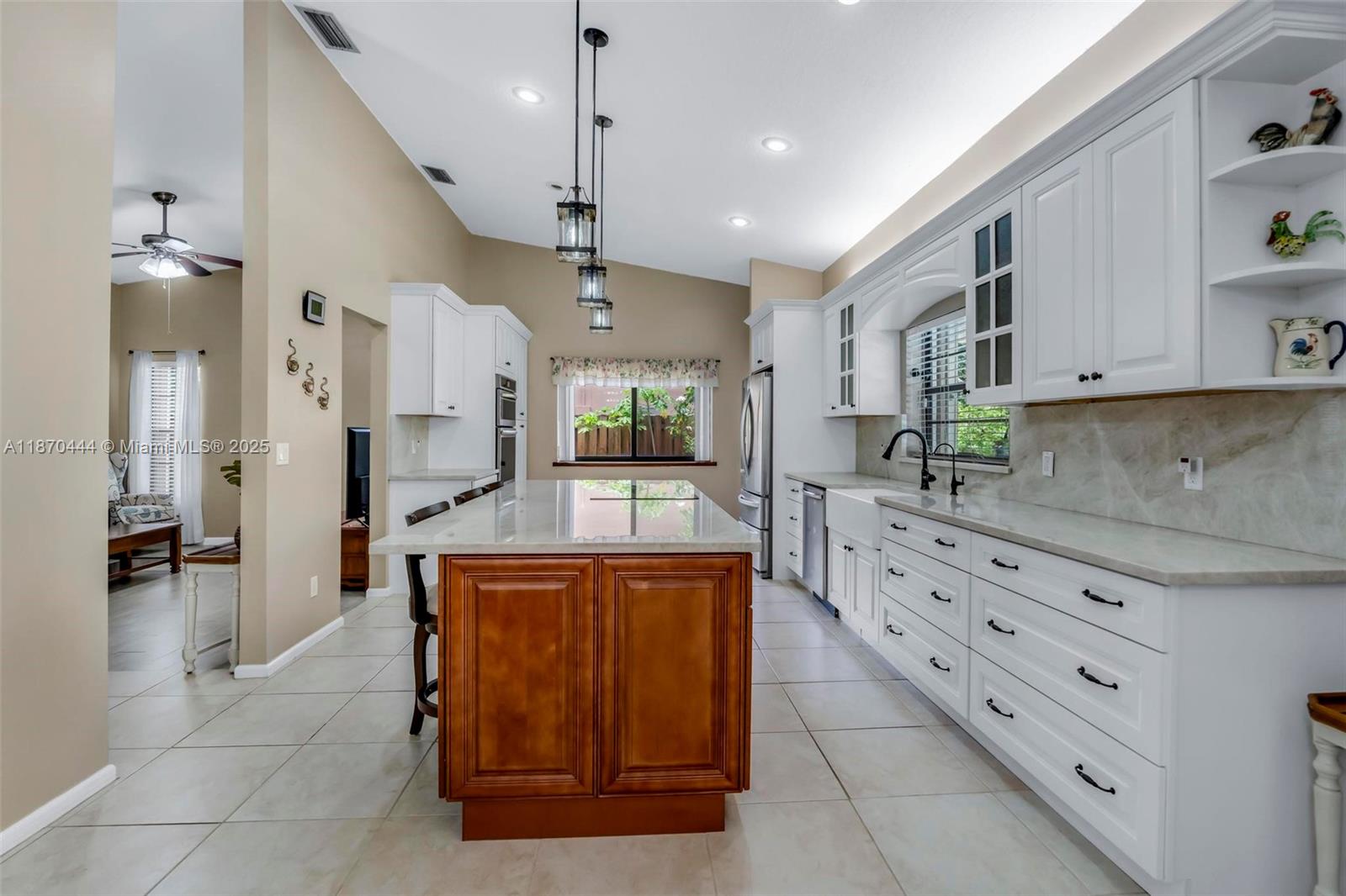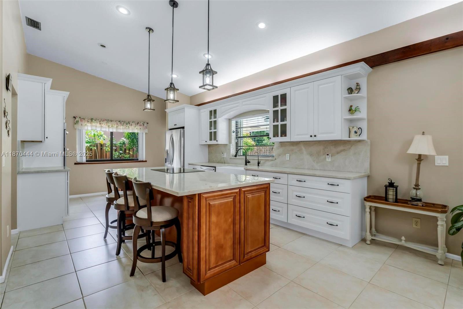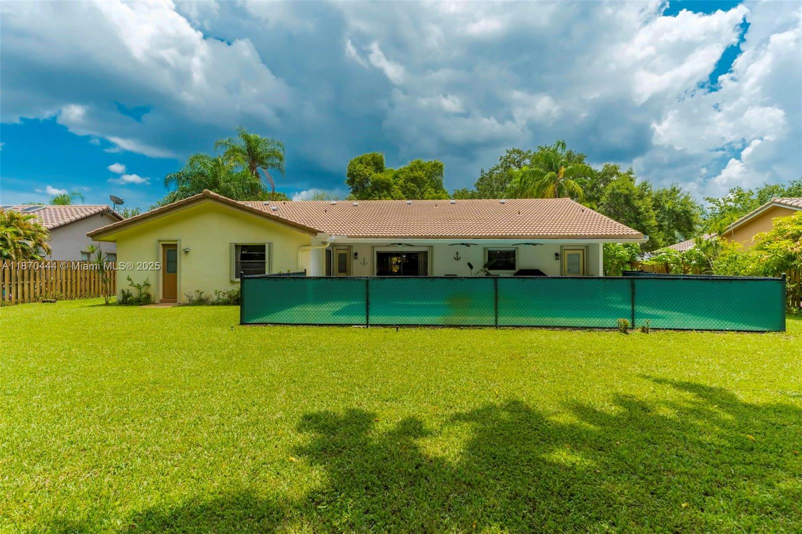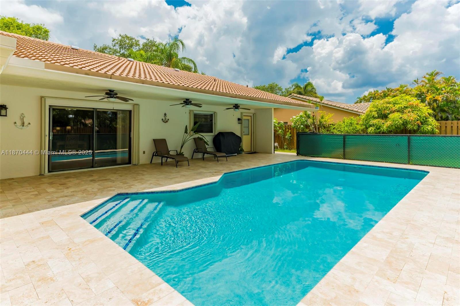 Stunning 4-Bedroom Home with Saltwater Pool – No HOA! Updated single-story 4-bed, 2.5-bath home in Coral Springs with 2,228 sq. ft. of open living space, vaulted ceilings, and tile flooring throughout. The gourmet kitchen features custom wood cabinetry, quartzite counters and backsplash, stainless appliances, and a 9-ft island with induction cooktop. Impact windows, accordion shutters, and a whole-house surge protector offer security and efficiency. Window blinds throughout for added privacy. Enjoy a fenced yard with fruit trees, travertine patio, and a resurfaced 15x30 saltwater pool with new pump and LED lights, perfect for entertaining. Walk to a top-rated elementary school. No HOA, enjoy the freedom! Schedule your showing today!