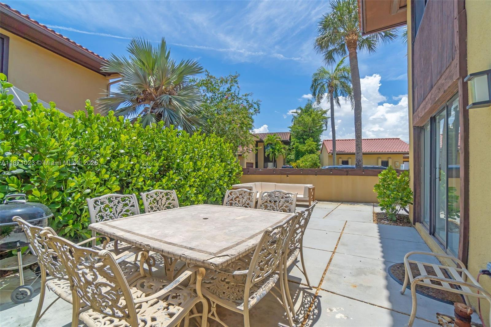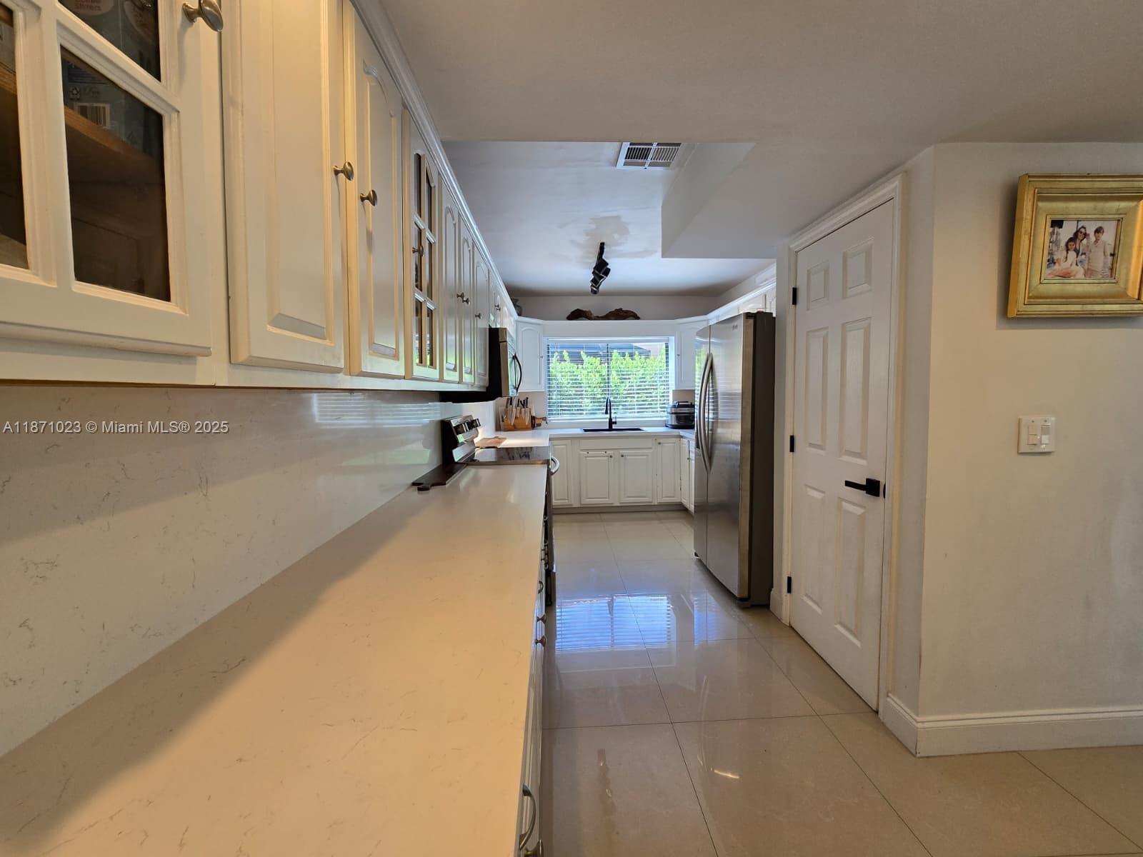 Spacious 2,600 sq ft home in a quiet gated community near Aventura Mall and I-95. Garage converted to living space with French doors to pool area. Bright 2-story layout with large sliding glass doors on both sides. Big kitchen with extensive countertops and storage. Upstairs: 3 bright bedrooms, 4 walk-in closets, extra storage, and large laundry room. Two yard areas: front yard with private pool, back yard with 2 grills. Walking distance to grocery, bank, and plaza. Bus stops just outside the gate. Furniture available or can be removed. High-speed internet and cable TV included.