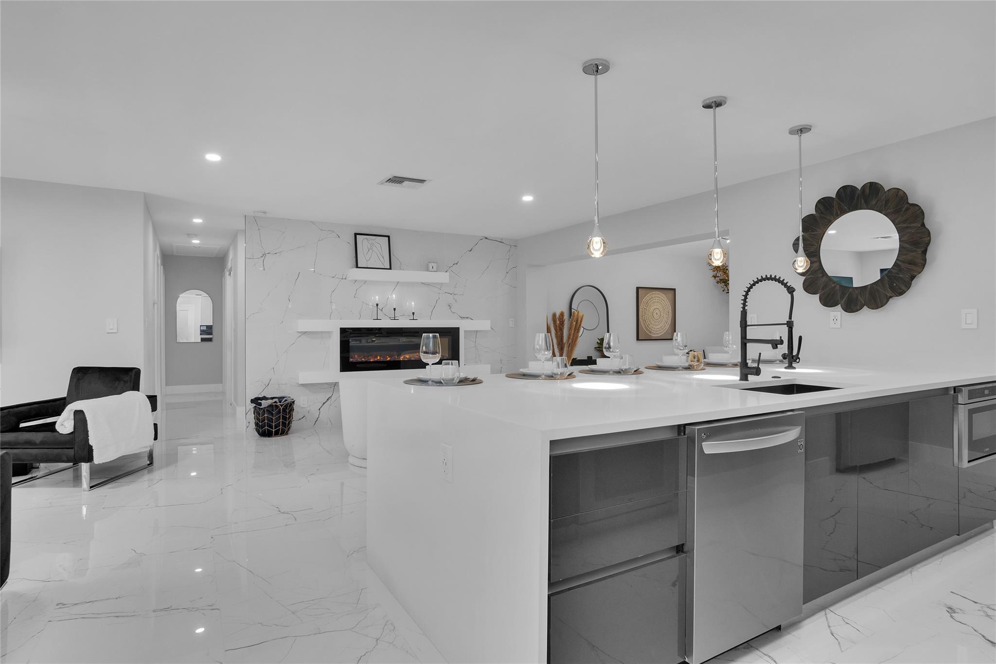 Prime Investment Opportunity or Perfect Family Home! Discover this beautifully remodeled 4-bed, 3.5-bath home in the desirable Jenada Villas of Wilton Manors. It features a modern kitchen with a striking waterfall island, perfect for cooking and entertaining. Elegant white porcelain tile flooring adds a luxurious touch, creating a contemporary ambiance. The open-concept layout flows seamlessly into an intimate outdoor oasis with a heated pool, ideal for relaxation and privacy. Smart, modern finishes enhance every corner, blending functionality with style. Located near top attractions, dining, and beaches, this move-in-ready home offers both luxury and convenience. Currently an Airbnb, it’s an excellent opportunity for investors or those seeking a modern home in a prime location.