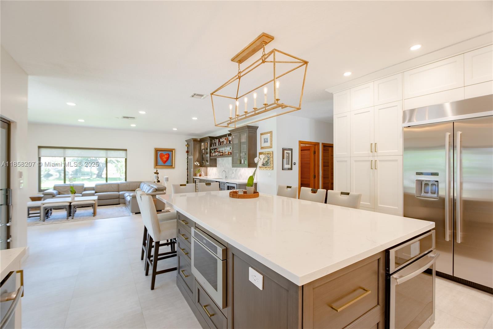 Experience refined living in this upgraded 5BR/3BA, privately situated on a 21,392 sq. ft. lakefront cul-de-sac lot, No HOA. Designed with timeless style and modern comforts, this home offers an unmatched lifestyle.The primary suite boasts tranquil views, a spa bath with dual rainfall showers, an automated TOTO toilet. The chef’s kitchen features custom cabinetry, quartzite counters, pot filler, premium appliances, and a butler’s station with wine refrigerator and beverage cooler. Impact windows, tile flooring throughout in grey/taupe, high-efficiency A/C, tankless water heater, propane tank with generator, and a climate-controlled 2-car garage. Outdoors, enjoy an oversized pool with extended awning, built-in BBQ, dock on the lake, sauna, lush landscaping with uplighting, & an RV outlet.