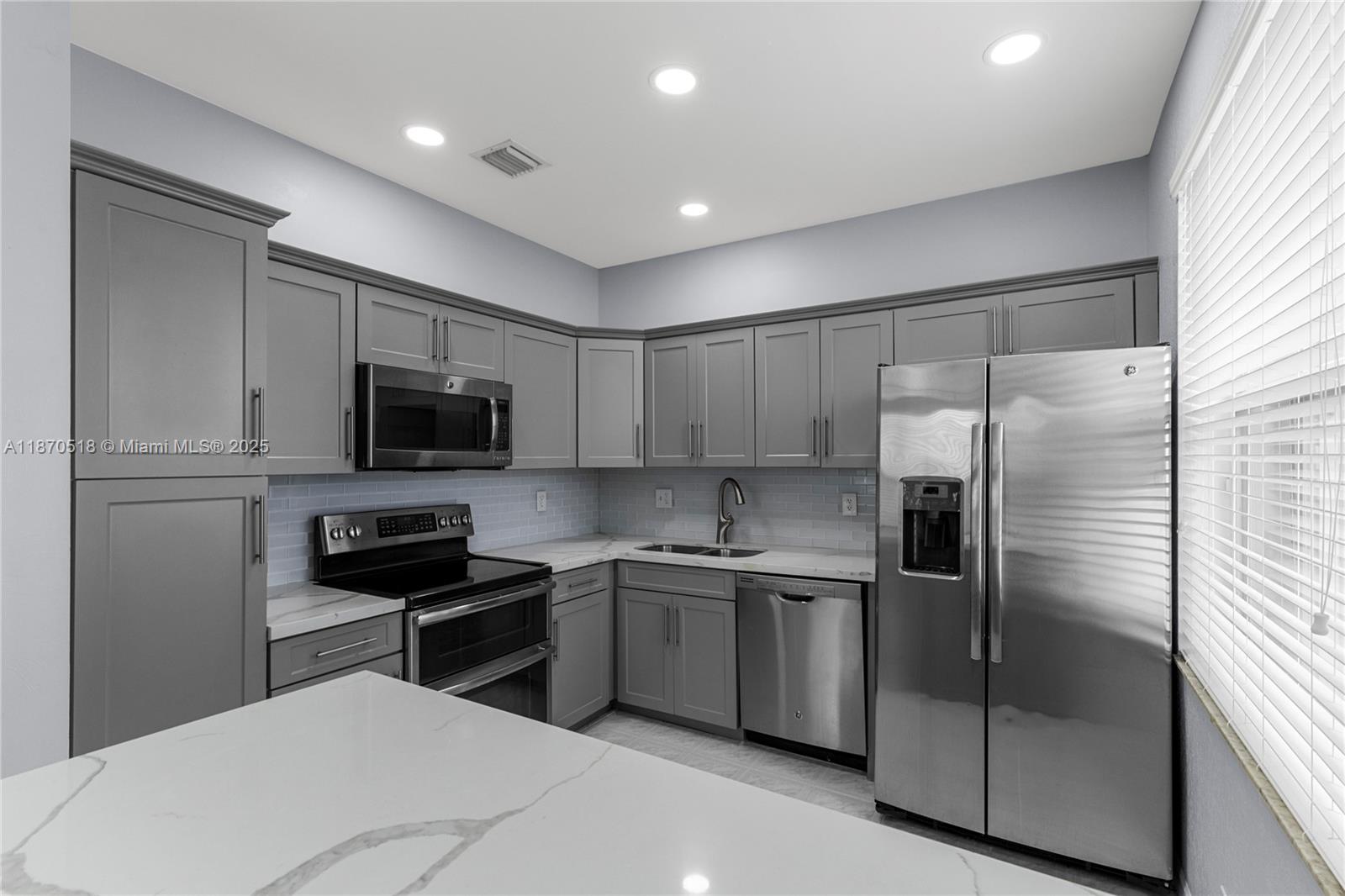 Beautifully updated 4-bedroom, 2.5-bath corner townhome in a guard-gated Pembroke Pines community. Enjoy the modern kitchen with stainless steel appliances and white granite countertops, along with updated bathrooms throughout. Upstairs features a spacious primary suite and three additional bedrooms. This light-filled corner unit offers extra privacy, a 1-car garage, accordion shutters, hurricane impact front door and a large open backyard. Just steps from I-75, shopping, and dining, this home blends comfort, security, and convenience. One of the best-located homes in the community. Don’t miss it!