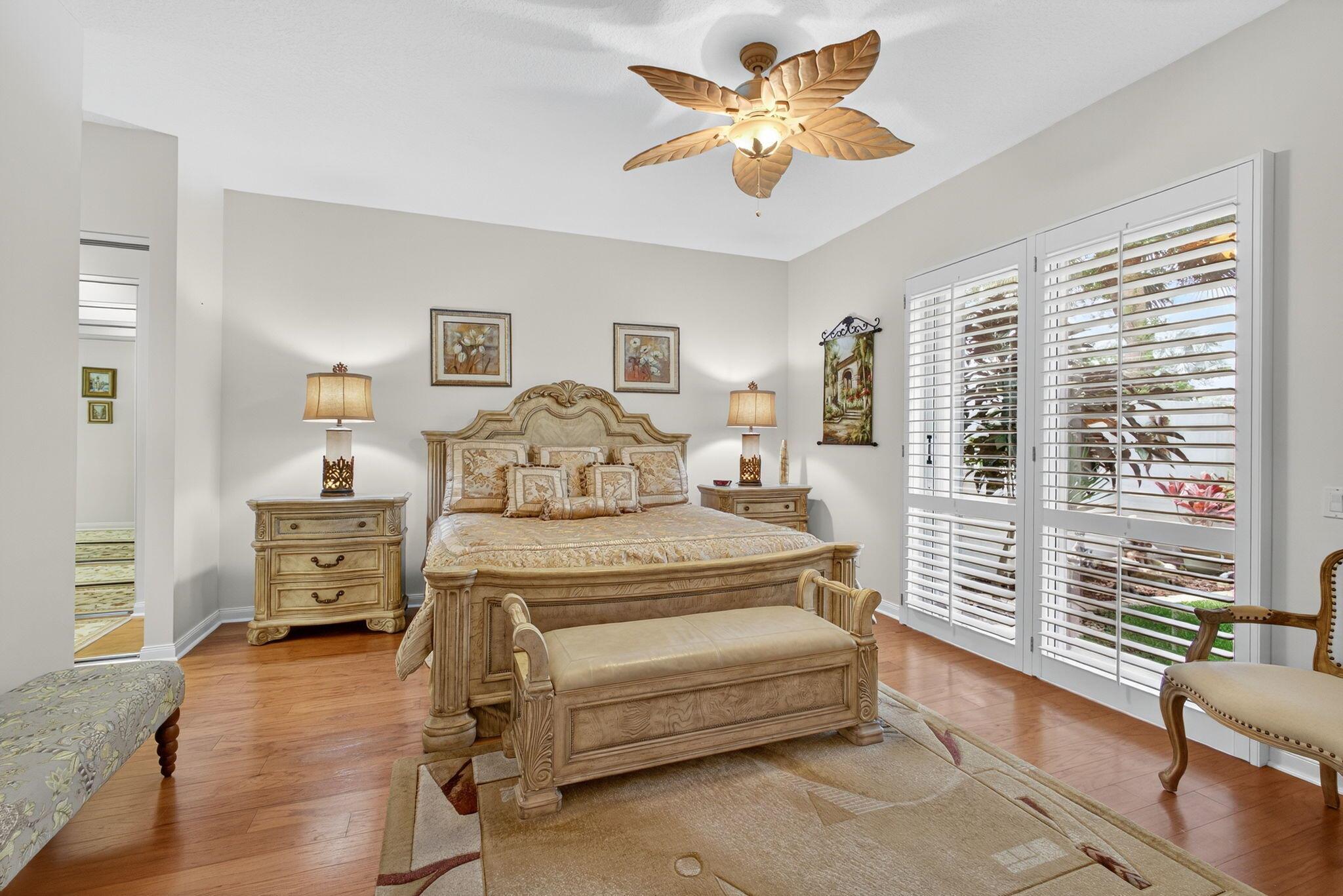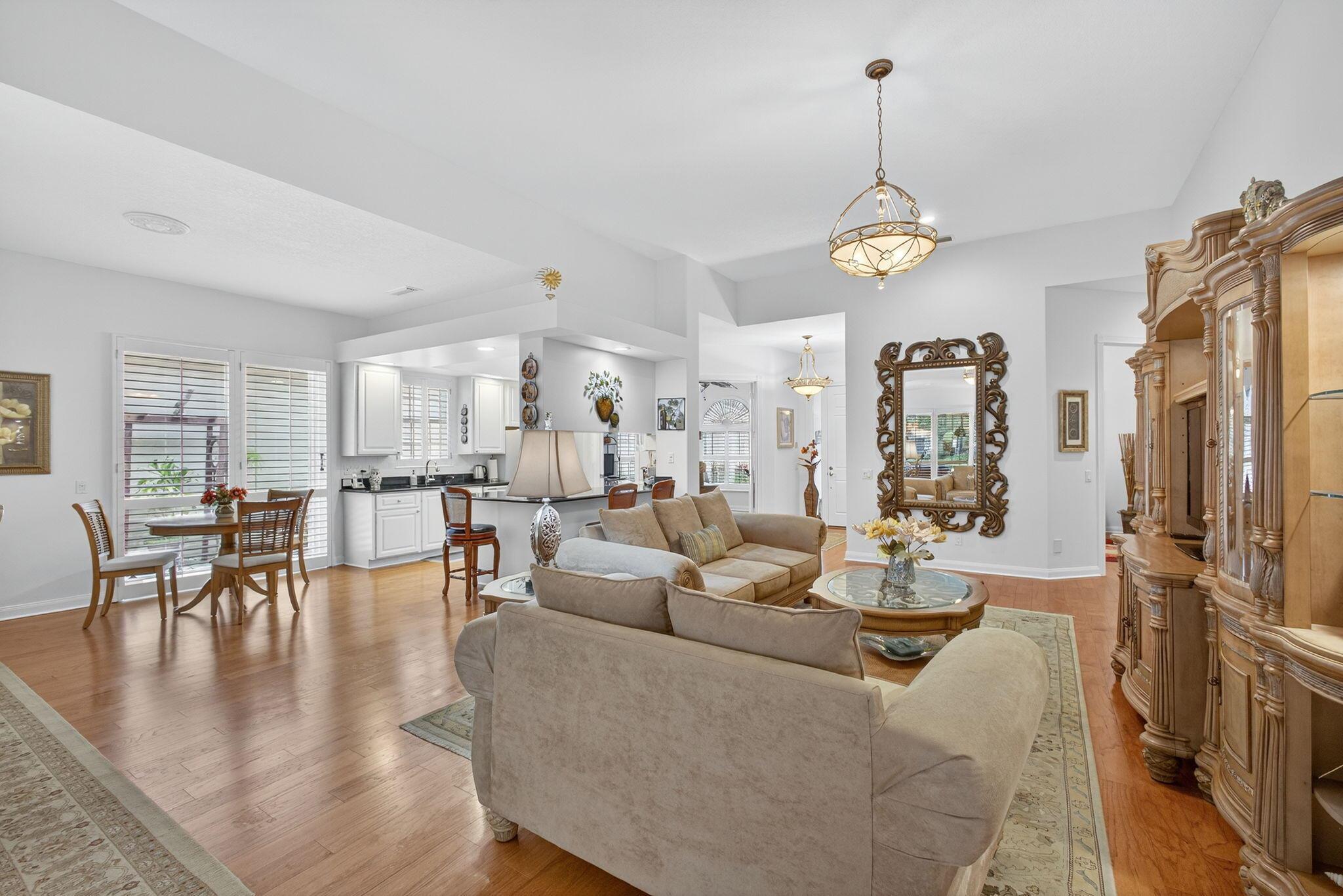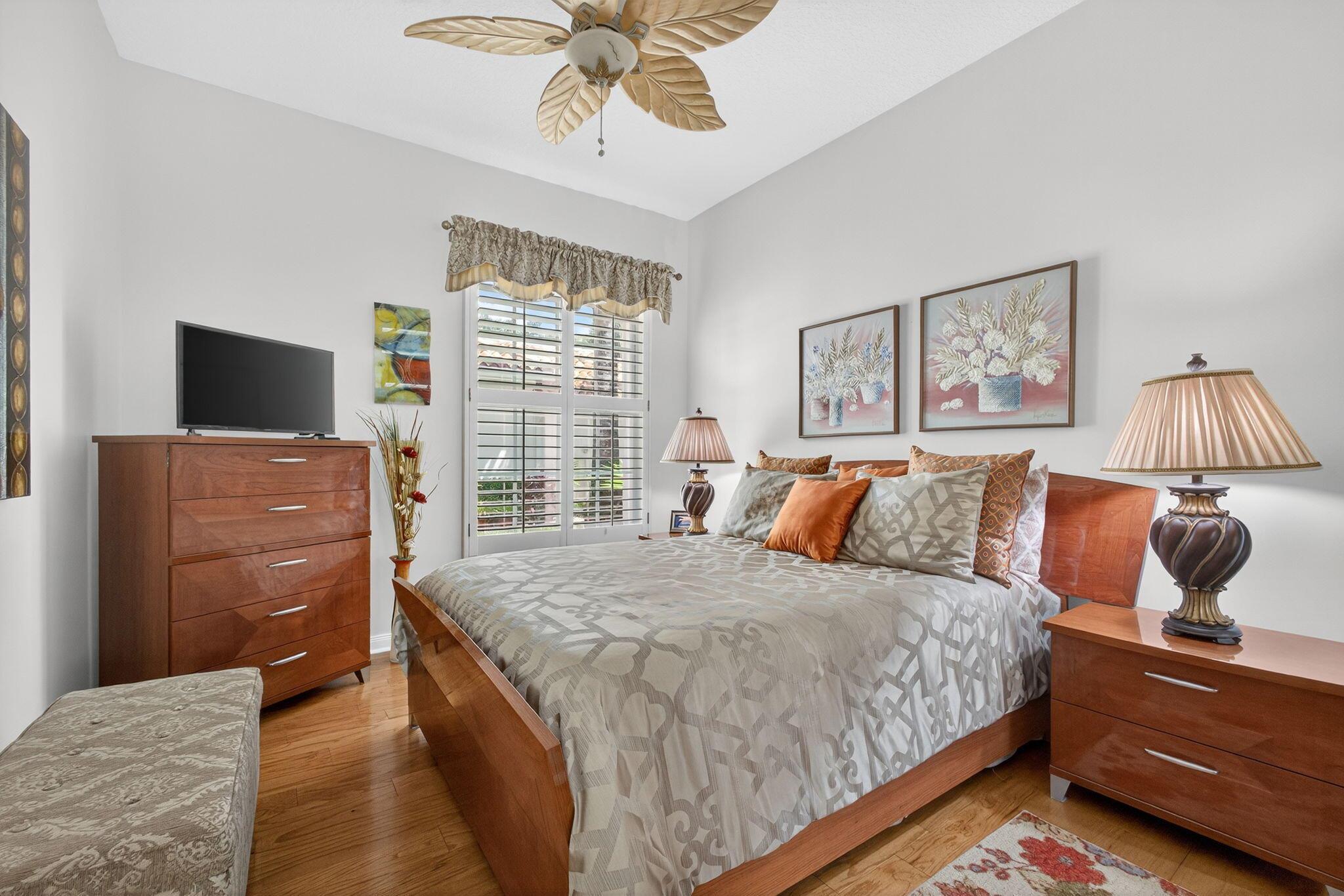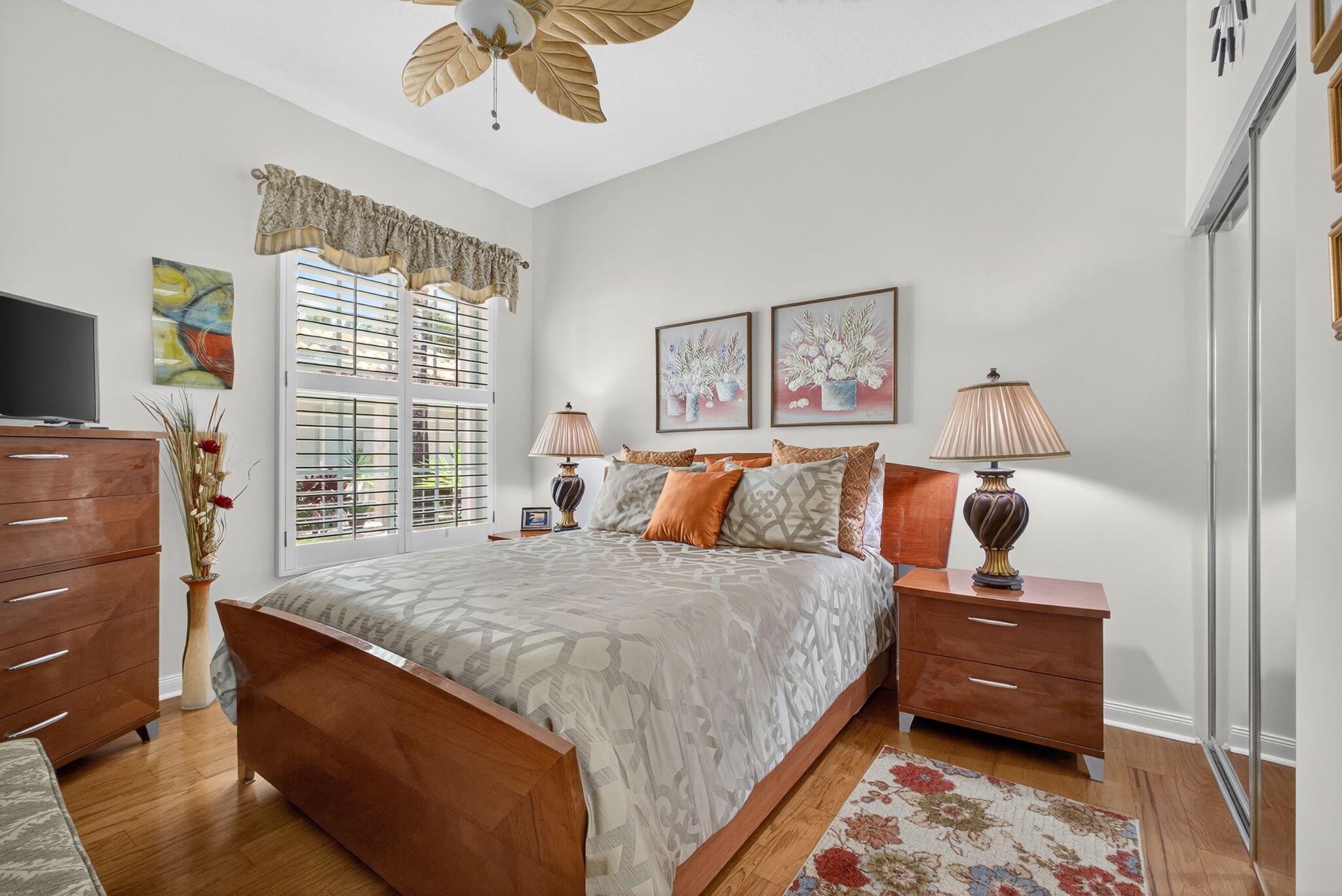 Sparkling, Spacious and Meticulously Maintained Expanded Oakmont Model in A+ Location within the RIVERWALK Community. This Home Features: Wood Floors, Granite Kitchen Counters with Counter Seating, Screened Covered Lanai, Lake View, Beautiful Plantation Shutters, Frameless Shower Door in Primary Bathroom with Two Separate Entrances, A/C 2025, Full Accordion Hurricane Shutters. Make Your Appointment Today!