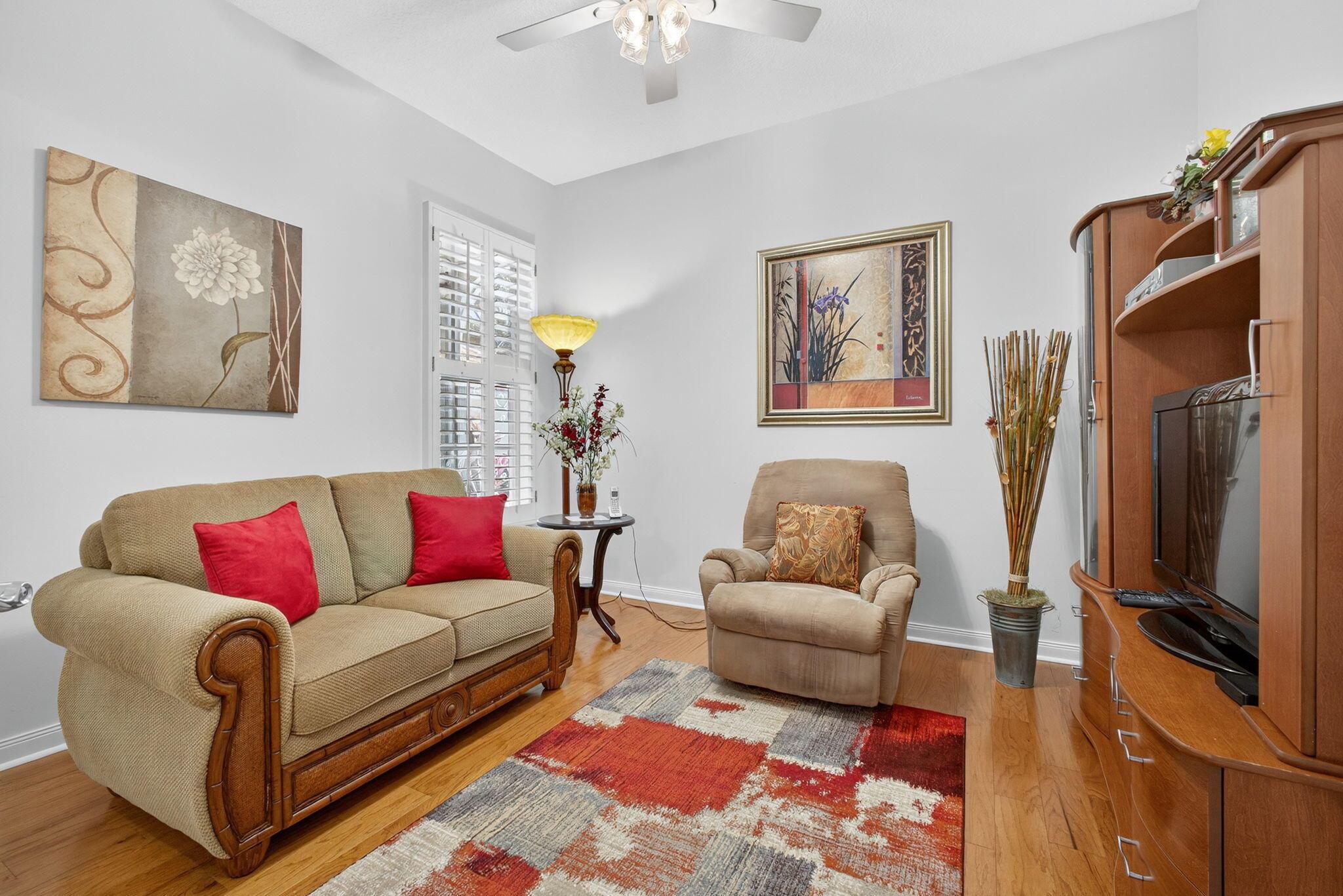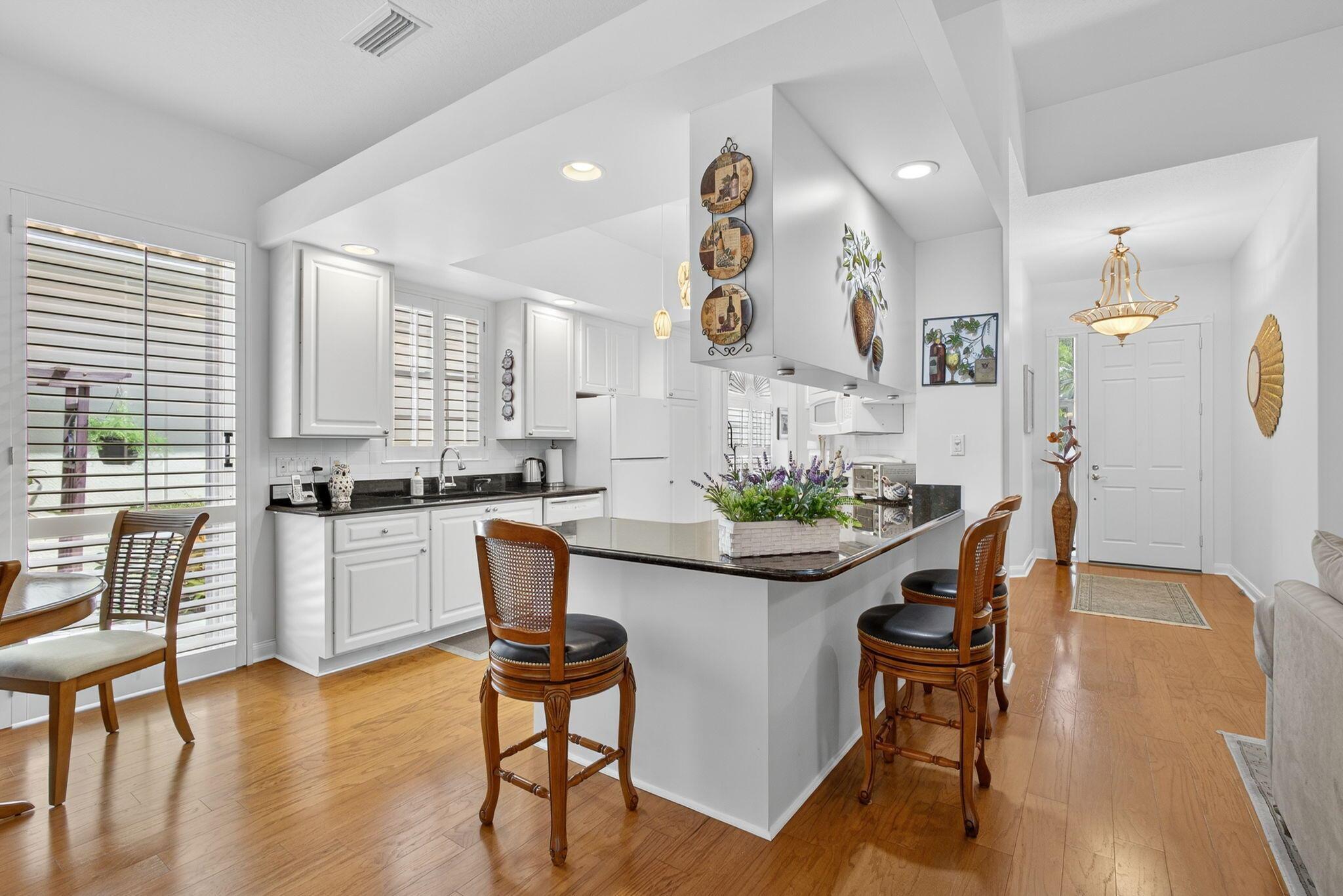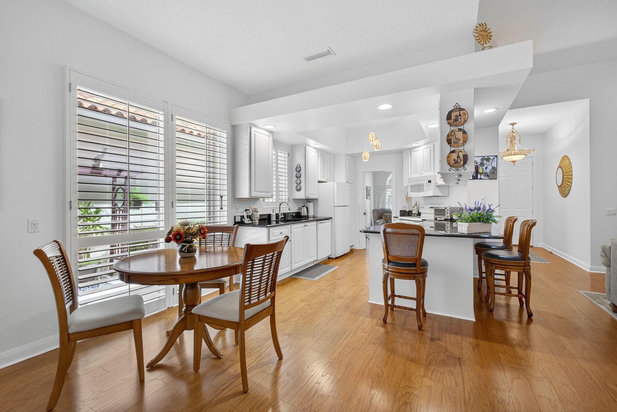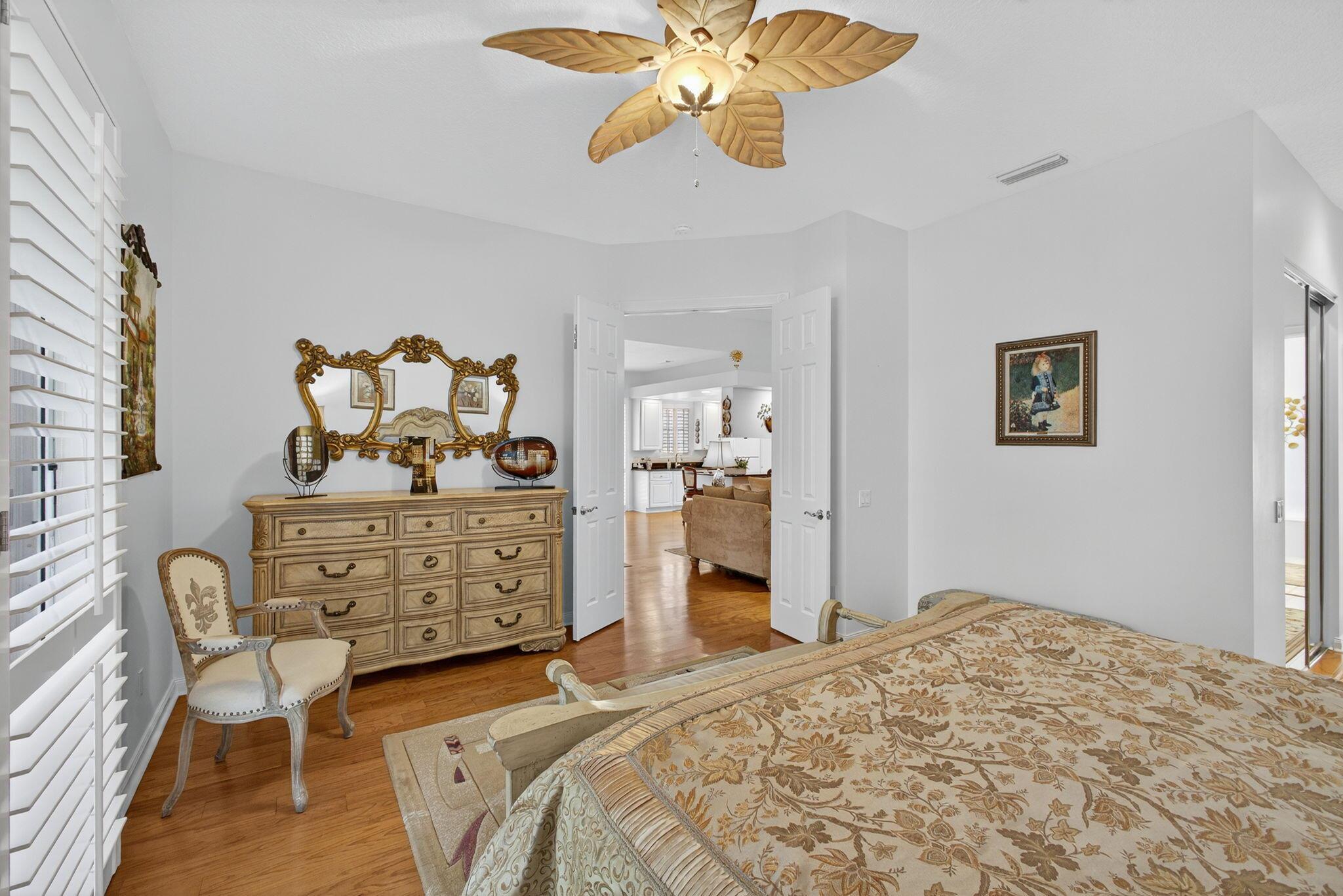Sparkling, Spacious and Meticulously Maintained Expanded Oakmont Model in A+ Location within the RIVERWALK Community. This Home Features: Wood Floors, Granite Kitchen Counters with Counter Seating, Screened Covered Lanai, Lake View, Beautiful Plantation Shutters, Frameless Shower Door in Primary Bathroom with Two Separate Entrances, A/C 2025, Full Accordion Hurricane Shutters. Make Your Appointment Today!