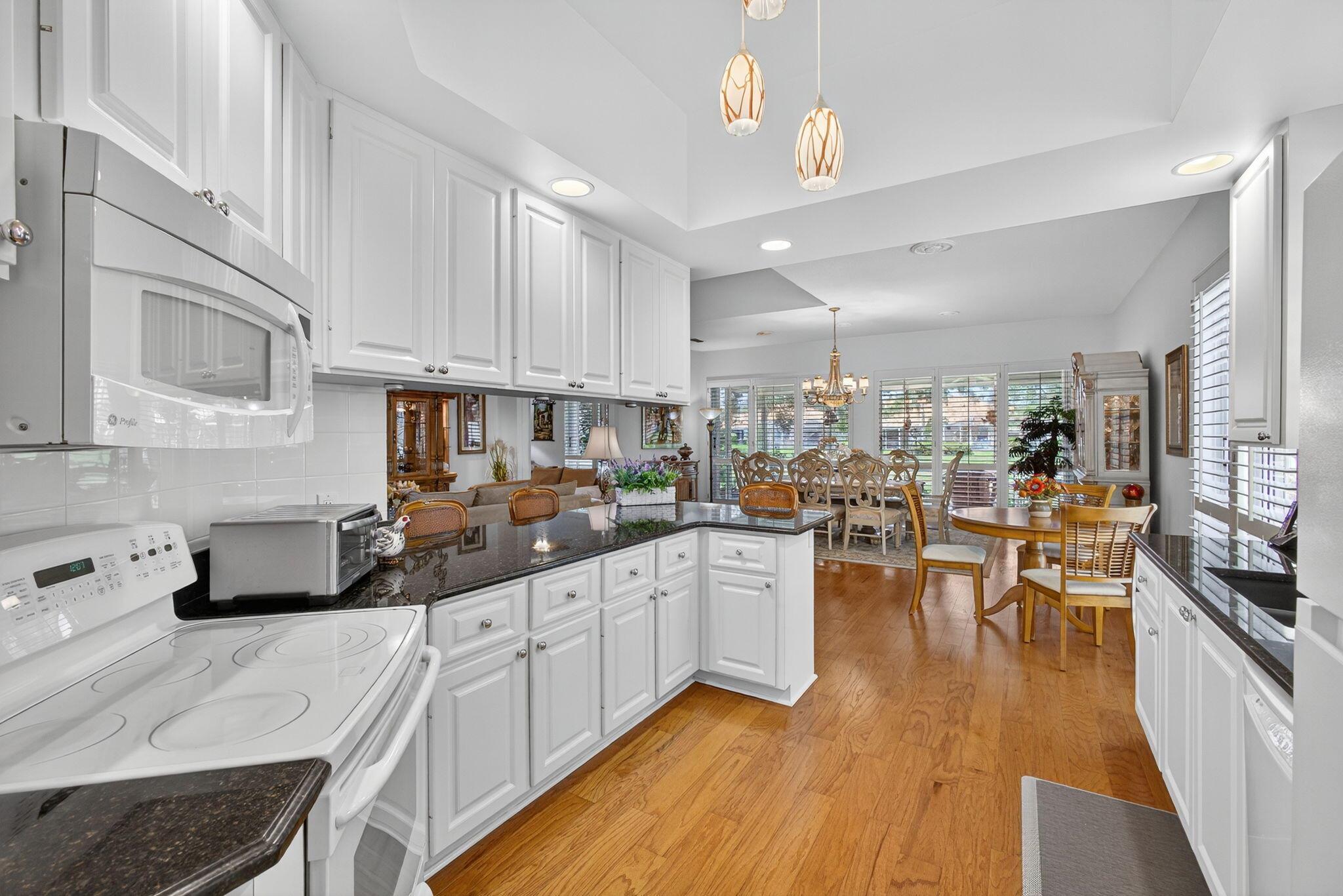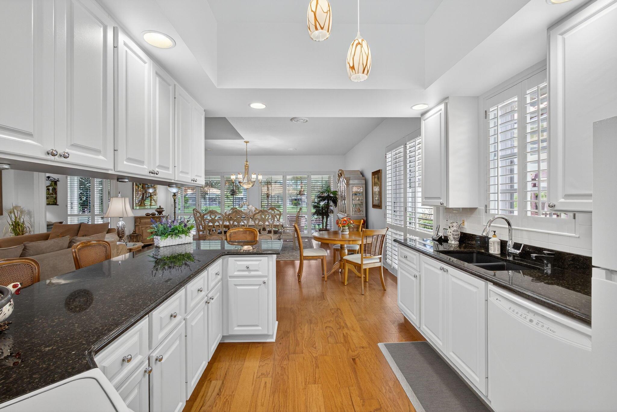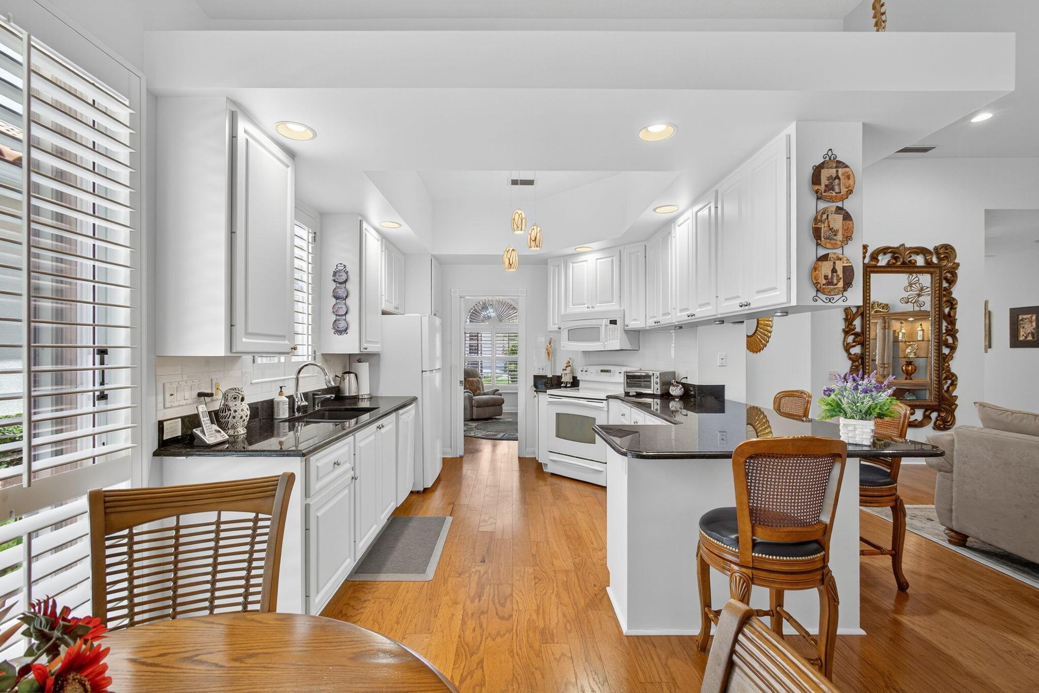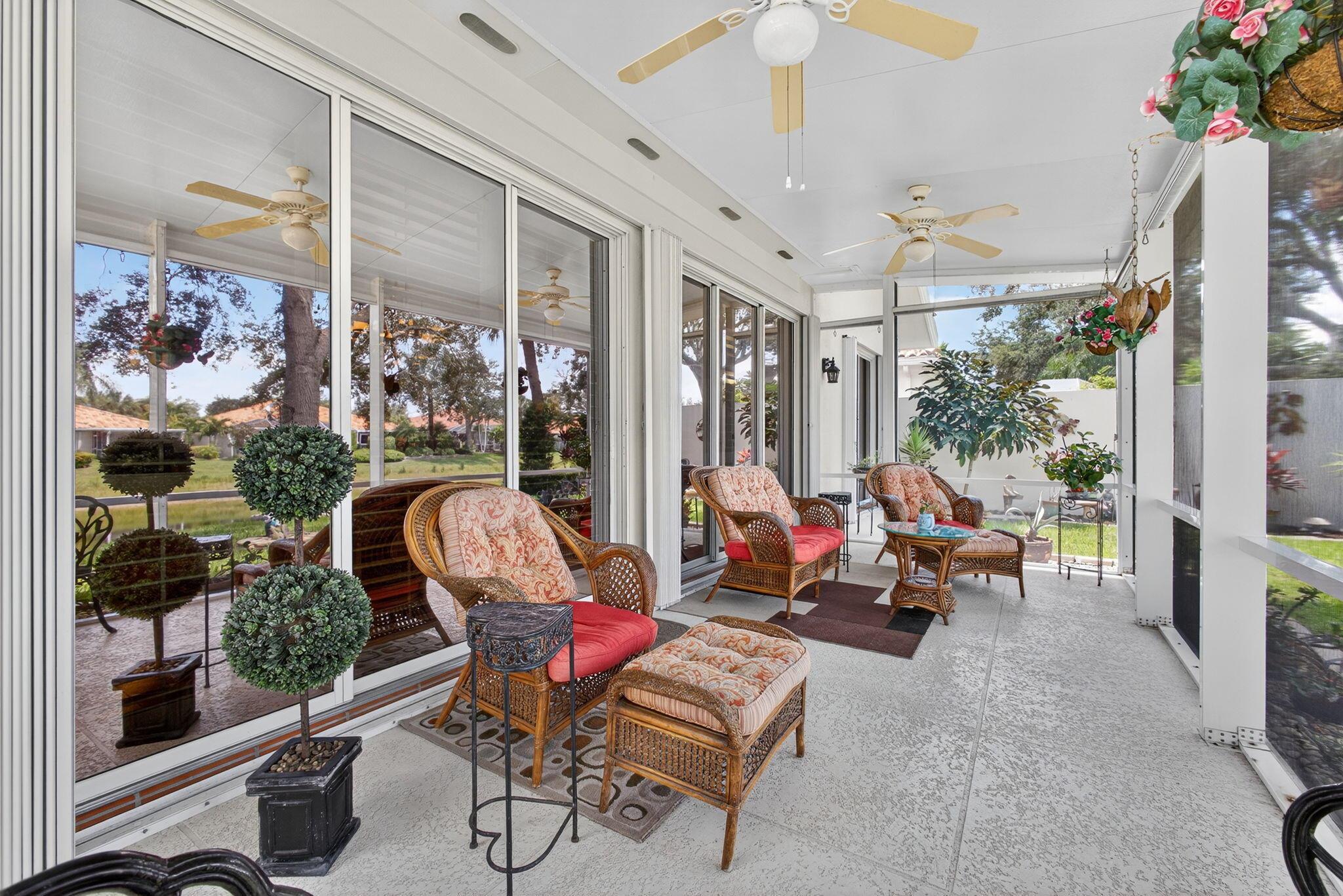 Sparkling, Spacious and Meticulously Maintained Expanded Oakmont Model in A+ Location within the RIVERWALK Community. This Home Features: Wood Floors, Granite Kitchen Counters with Counter Seating, Screened Covered Lanai, Lake View, Beautiful Plantation Shutters, Frameless Shower Door in Primary Bathroom with Two Separate Entrances, A/C 2025, Full Accordion Hurricane Shutters. Make Your Appointment Today!