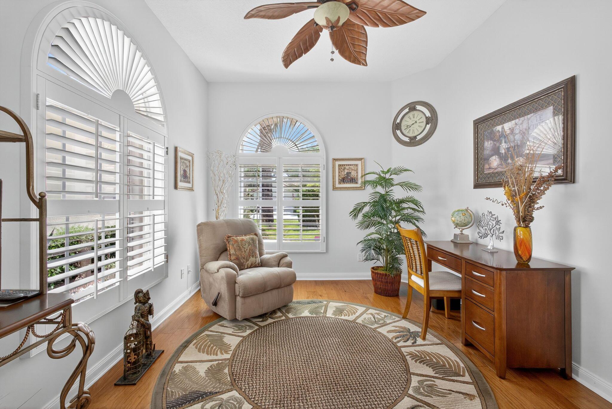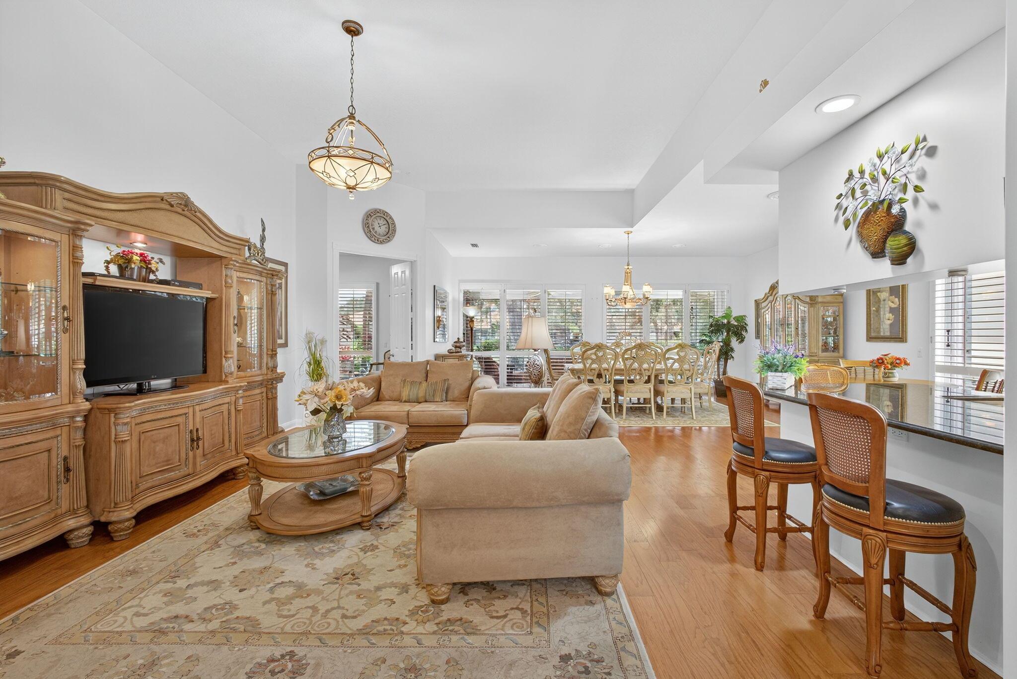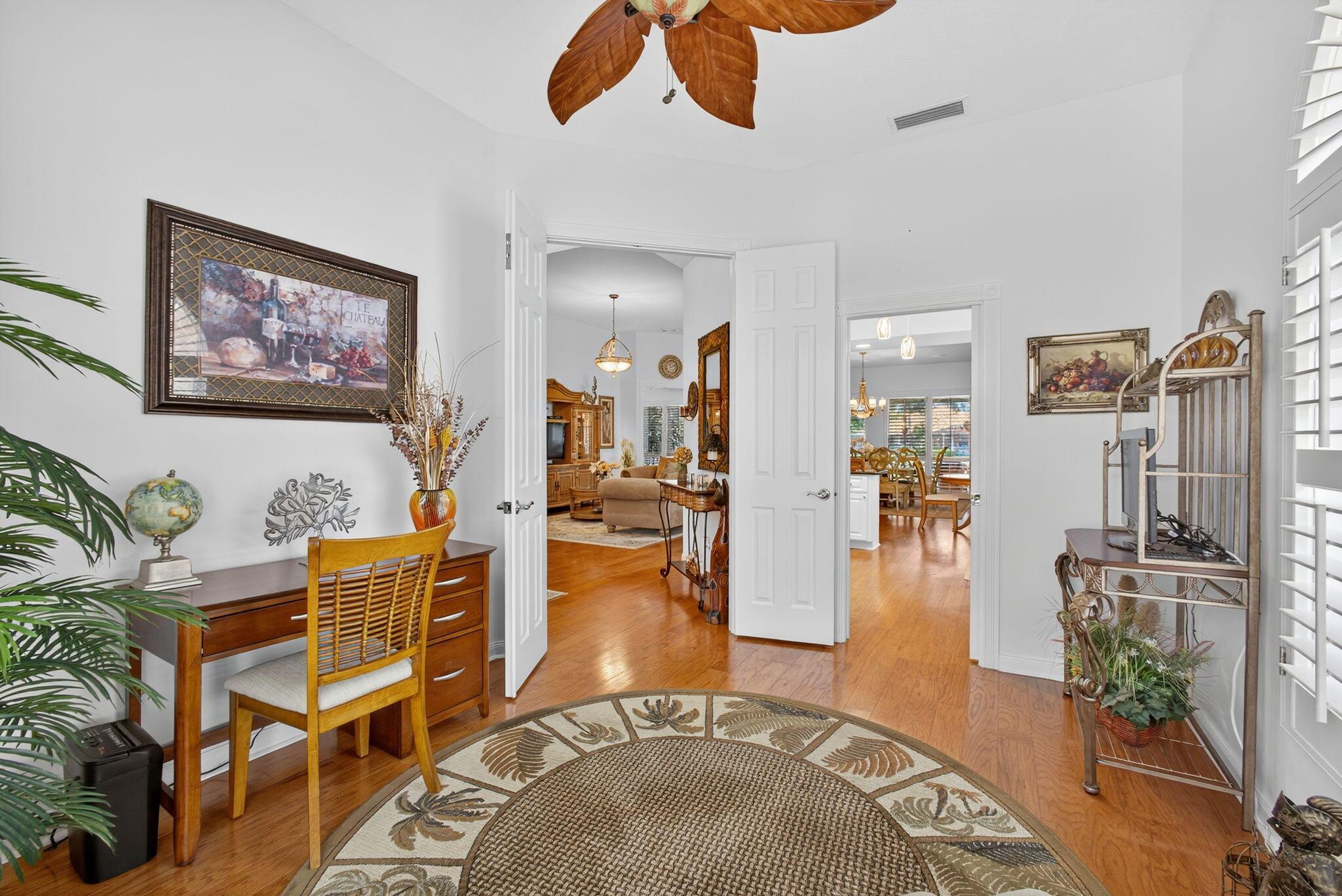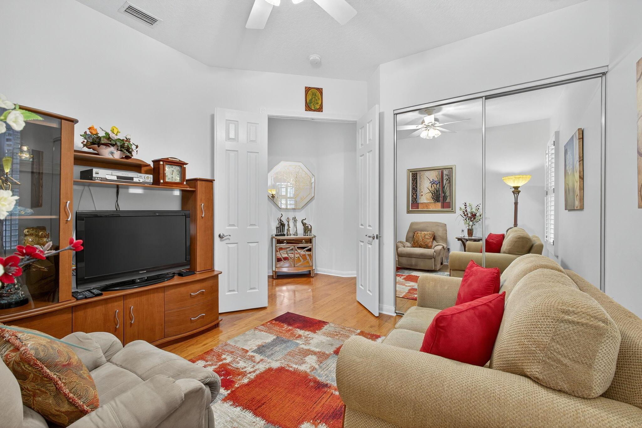 Sparkling, Spacious and Meticulously Maintained Expanded Oakmont Model in A+ Location within the RIVERWALK Community. This Home Features: Wood Floors, Granite Kitchen Counters with Counter Seating, Screened Covered Lanai, Lake View, Beautiful Plantation Shutters, Frameless Shower Door in Primary Bathroom with Two Separate Entrances, A/C 2025, Full Accordion Hurricane Shutters. Make Your Appointment Today!