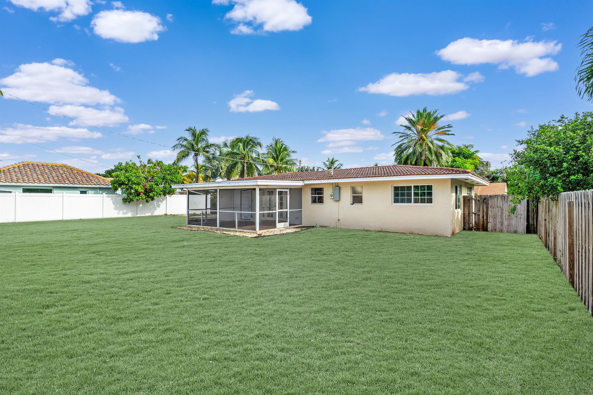Welcome to your move in ready oasis in the sought-after Tropic Palms community of East Delray Beach! This stunning single-family home offers the perfect blend of modern luxury and coastal charm, boasting brand NEW KITCHEN, CUSTOM CABINETRY, NEW QUARTZ COUNTERTOPS, and NEW APPLIANCES! FRESHLY PAINTED throughout. WHOLE HOUSE RENOVATED 2 YEARS AGO. Step inside to your open-concept layout, ideal for entertaining friends and family. The spacious living area is bathed in natural light, creating a warm and inviting ambiance. Enjoy sunny afternoons lounging on the patio or gardening in your private sanctuary. NEW SCREENED LANAI, 2 YEAR OLD ROOF ON LANAI, LAUNDRY/UTILITY ROOM, HUGE FENCED IN BACKYARD BIG ENOUGH FOR A GARDEN, POOL + RV/BOAT STORAGE-PLUS LARGE DRIVEWAY!